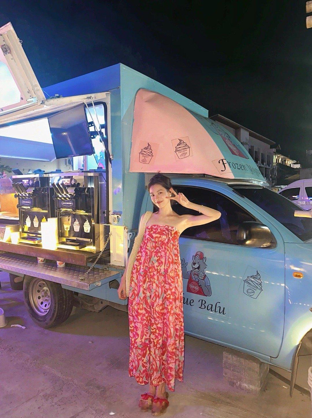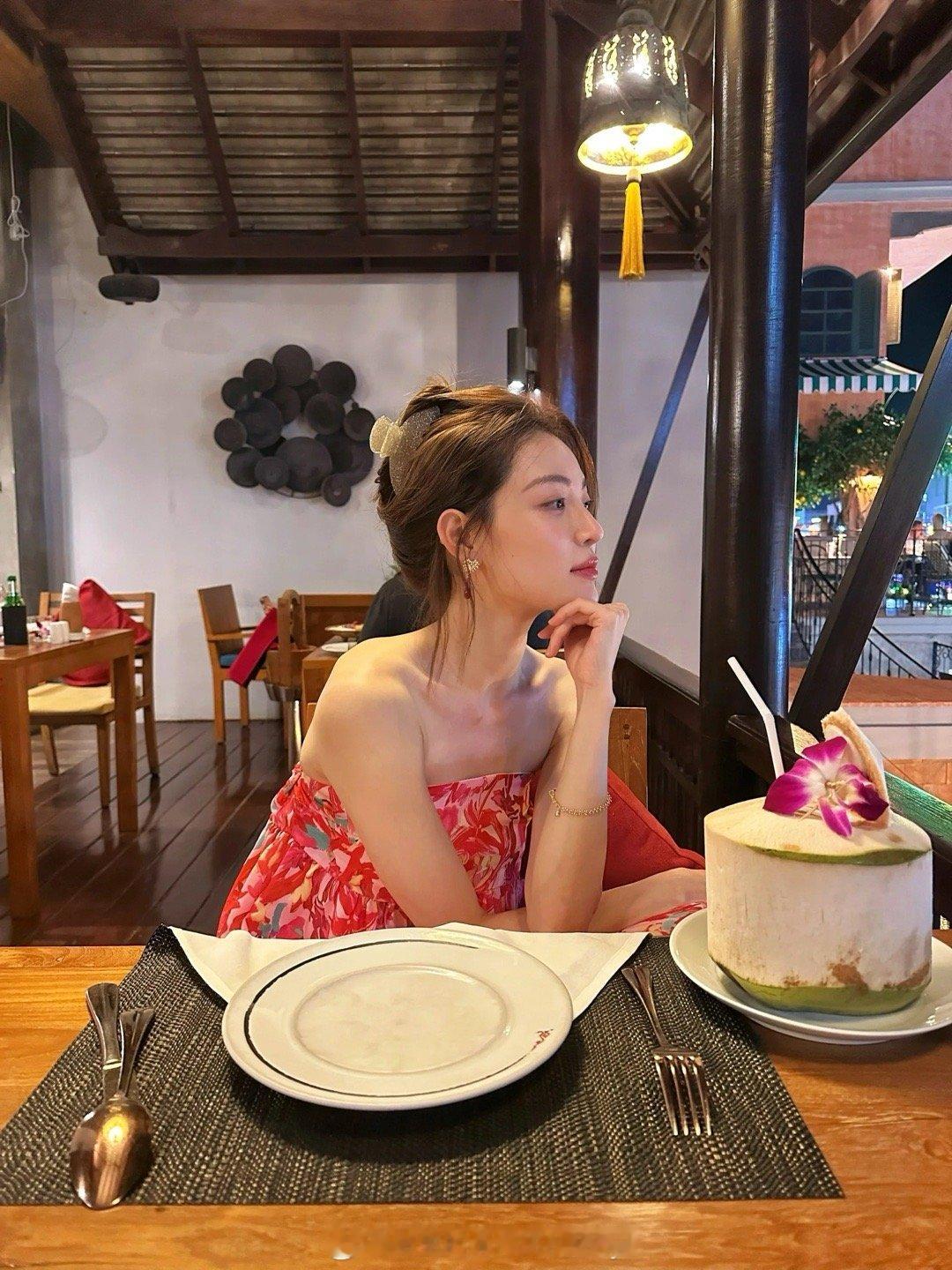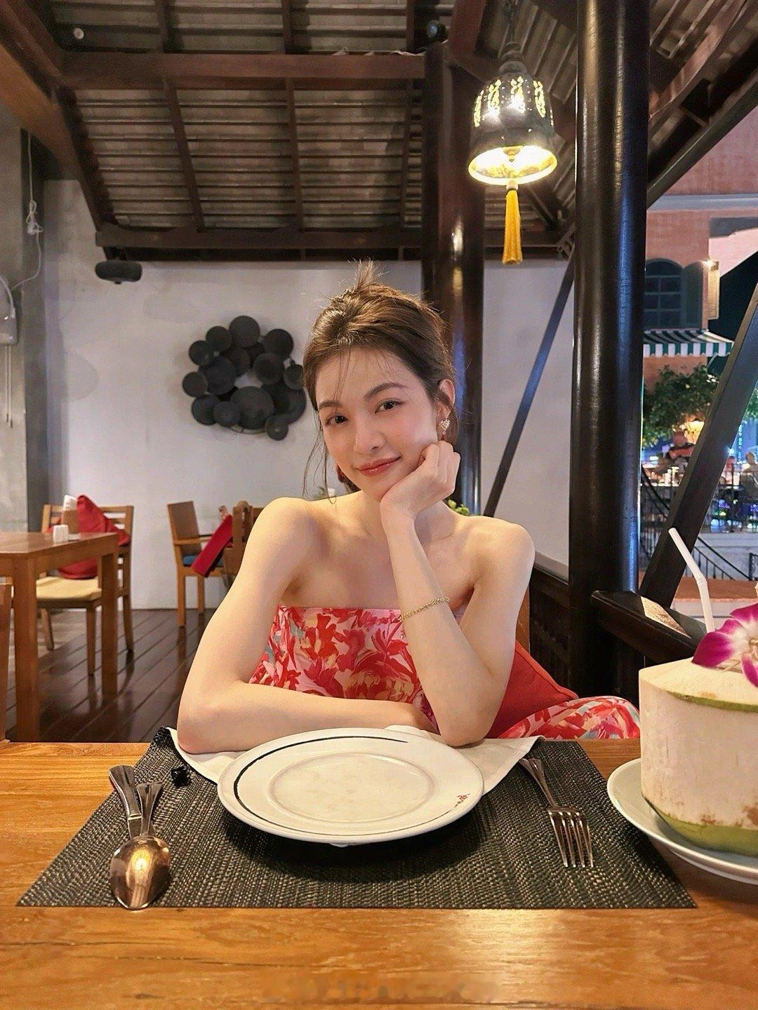 钟楚曦晒泰国度假美照,莓红色印花抹胸花苞连衣裙也穿出了风情万种!