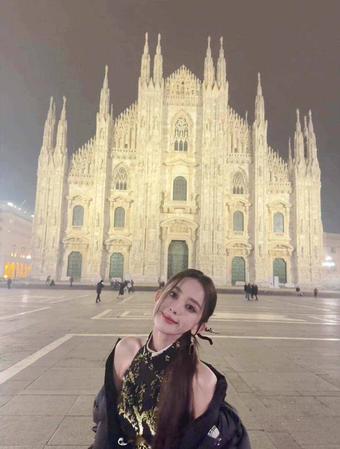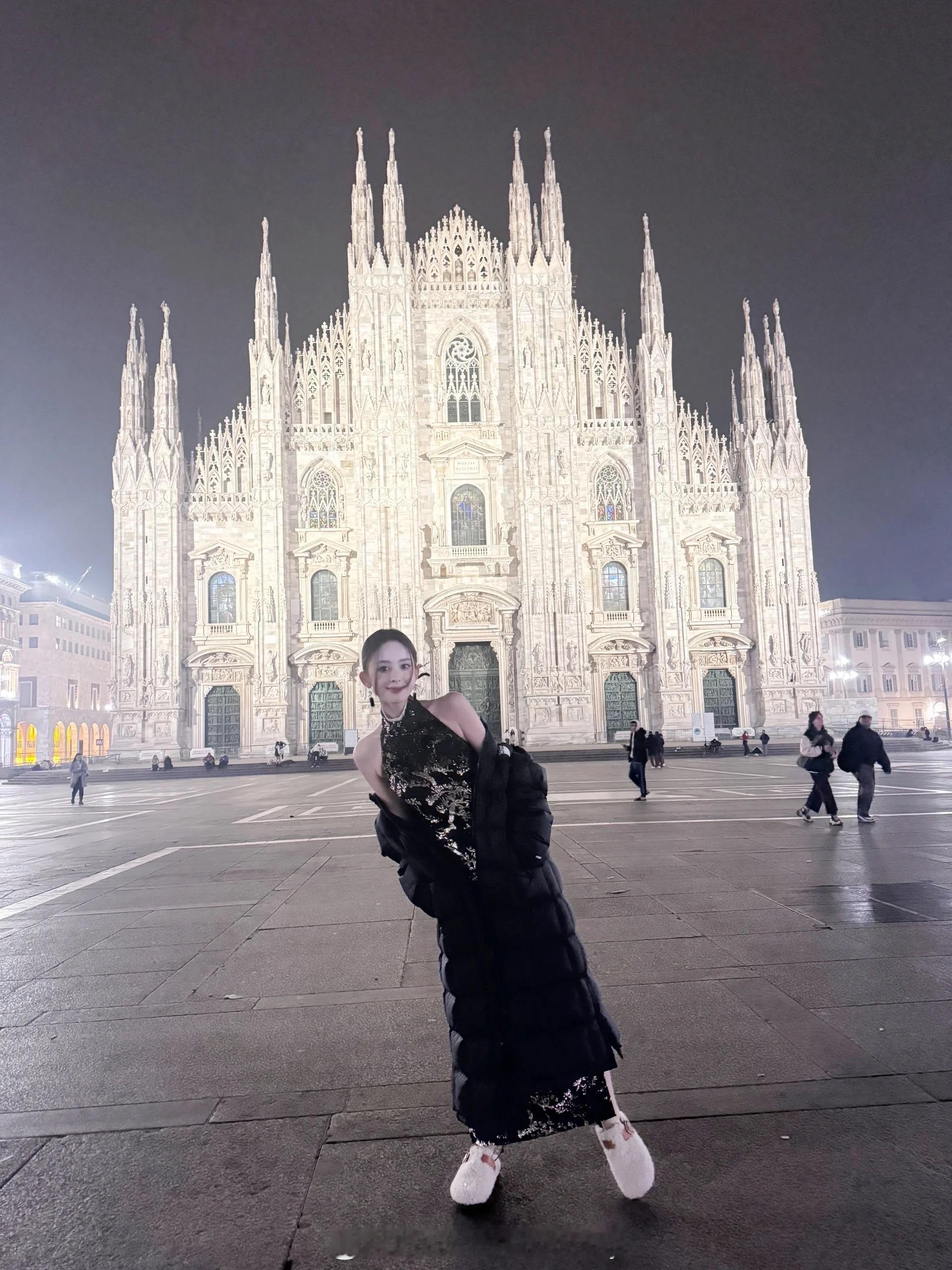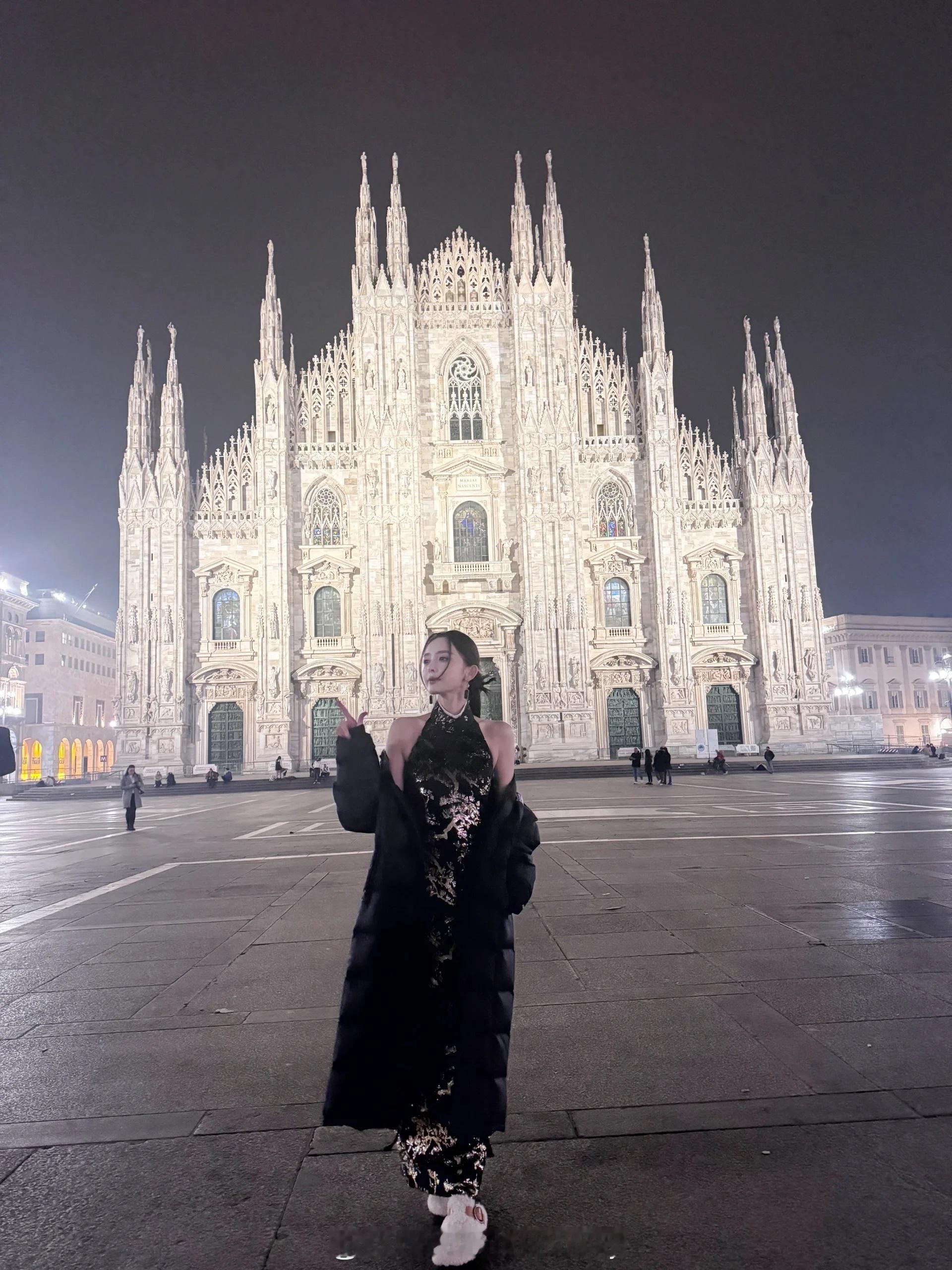 娜扎今日的美照释出,黑色古韵旗袍搭配侧马尾发簪盘发,外搭长款羽绒服,下搭平底白色