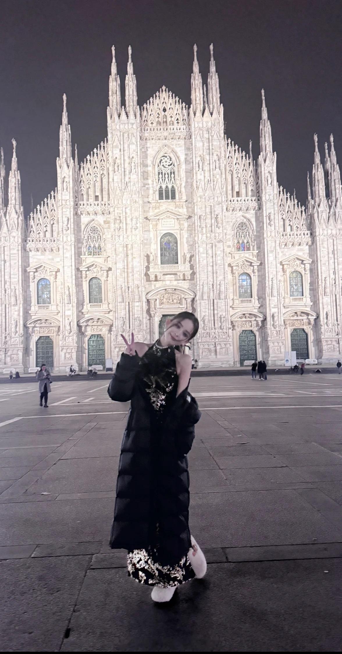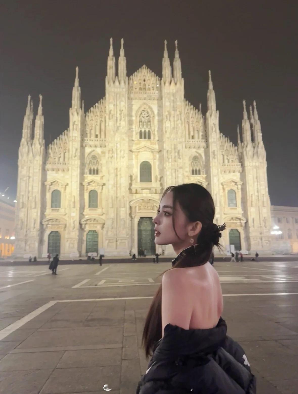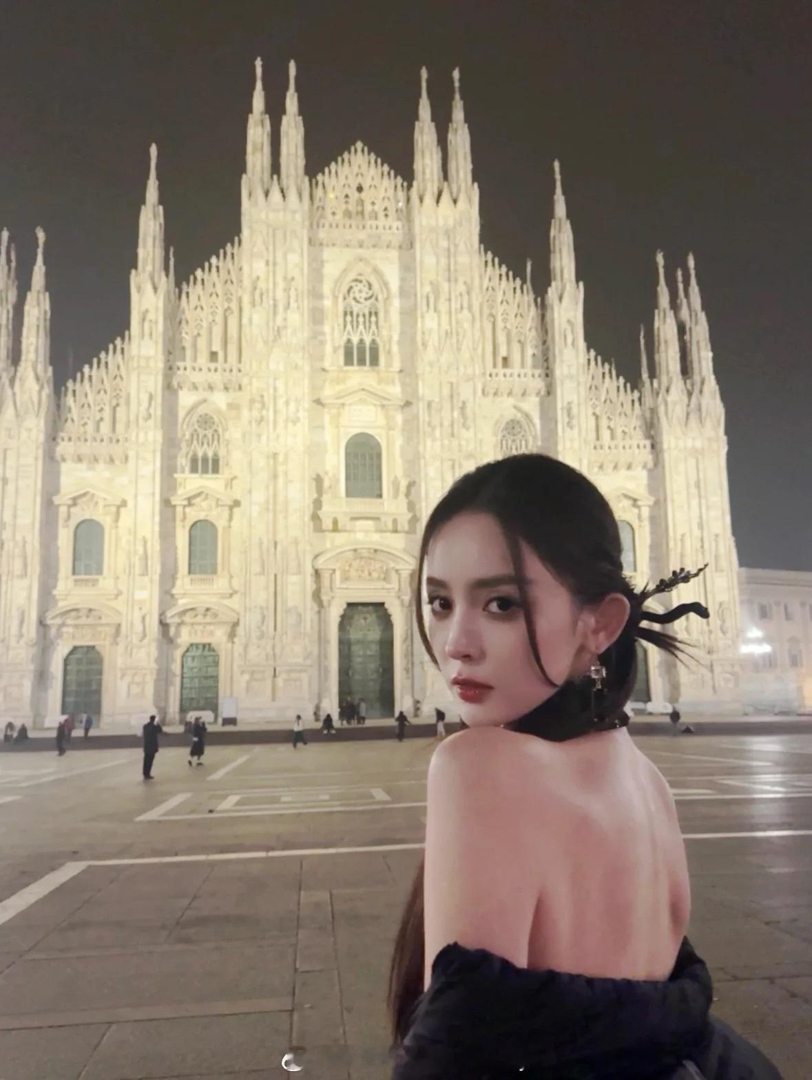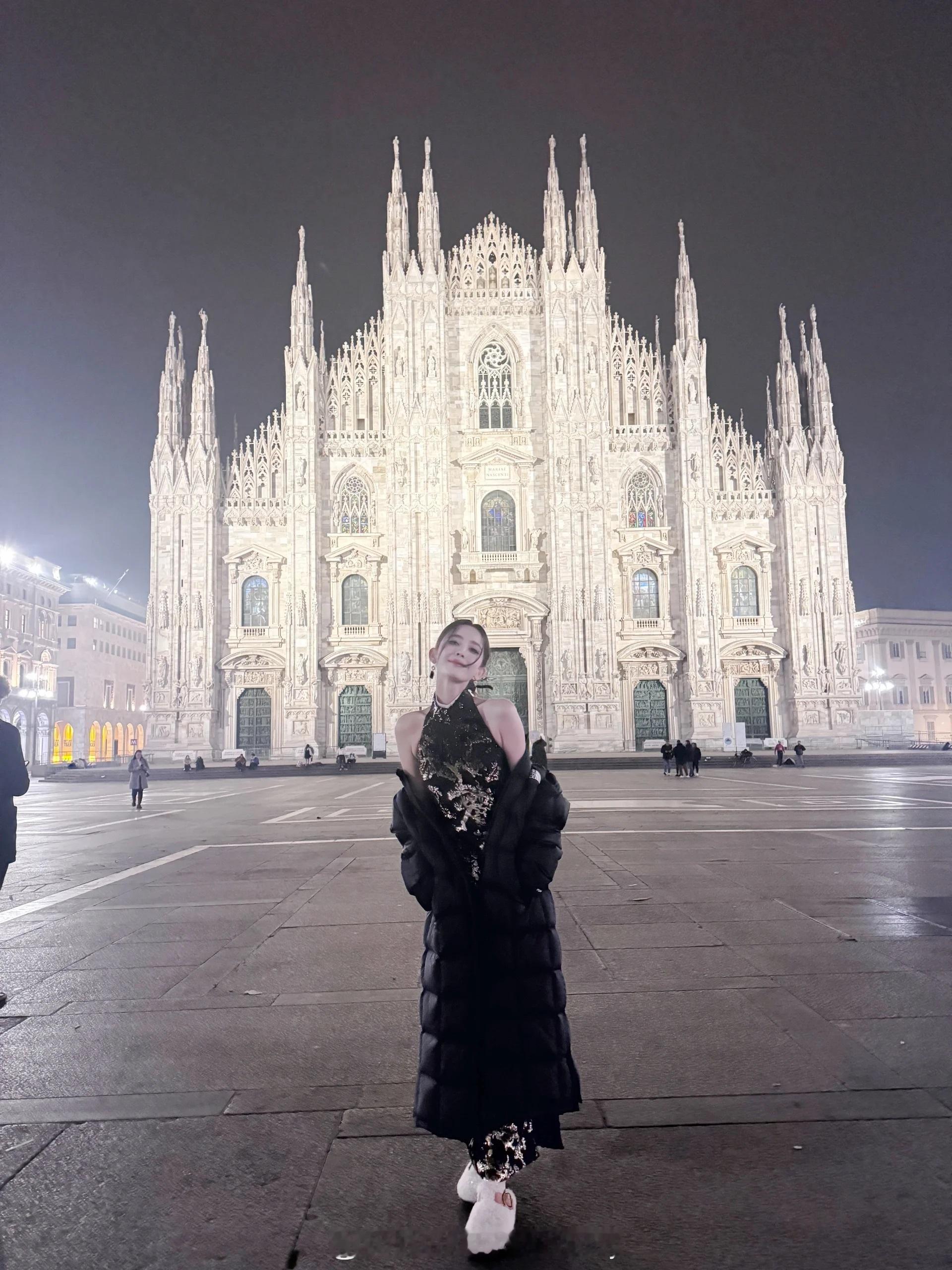 娜扎今日的美照释出,黑色古韵旗袍搭配侧马尾发簪盘发,外搭长款羽绒服,下搭平底白色