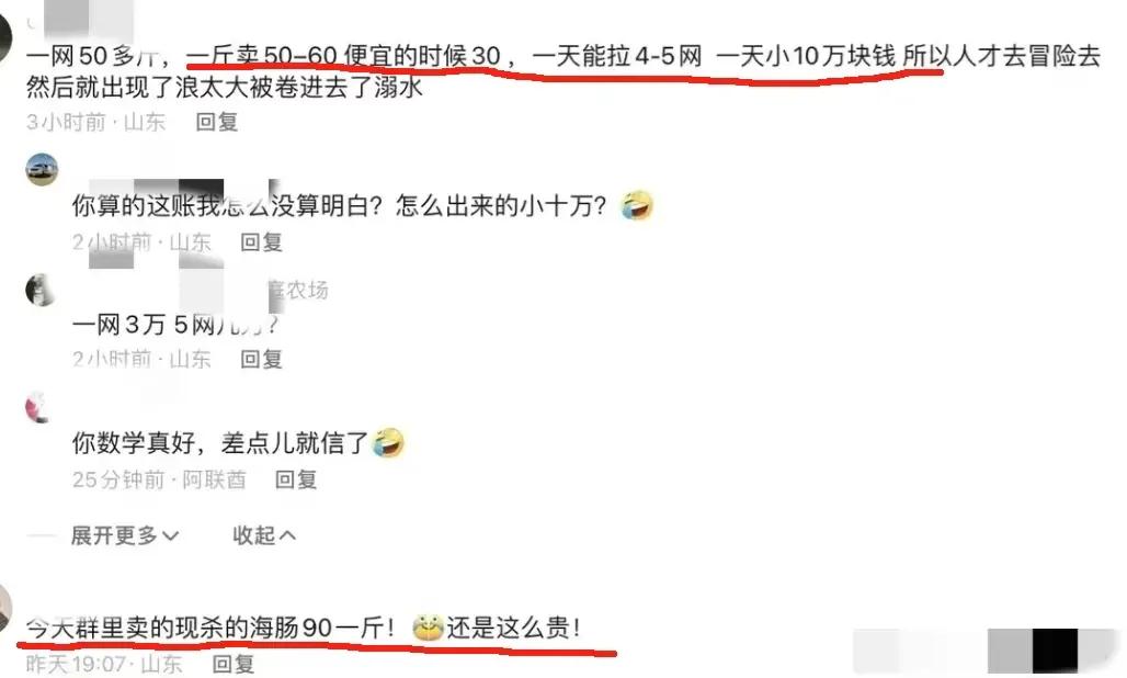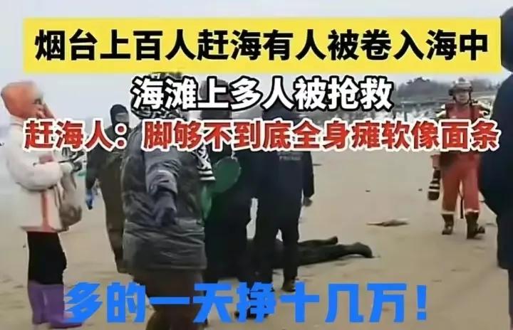 太疯狂了啊!一天溺水6任都挡不住烟台海边捞海肠 的大军,都不要命了吗?一天的功夫溺水6人,也挡不住真百人大军,都是钱闹的,网友说的,一天能赚数万元。 还有网友说:我二叔一天晚上赚了二十多万。 真假呀?但我看着他是山东人。 看看这海边的人命,用人山人海形容不为过,都是过了过来赶海捞海肠的。 海肠很贵,朋友说的,现在在群里杀鲜海肠90元一斤。 就是这高利润,让这些人,明明知道有人溺亡,但还是阻止不了这些要发财的脚步。 有人溺水了,救援队伍来了,拉走了,但大海里的人还有很多在那里继续捞海肠。 好像这个人和他们无关一样。 海上救援人员就是大海边上巡逻,撵不走赶海的人,他们只好在海边巡逻,及时发现问题,及时救人。 真的是人为财死鸟为食亡。 但生命最重要,和生命相比,这些海肠又算什么? 生命安全最重要!别把自己的生命当儿戏。
