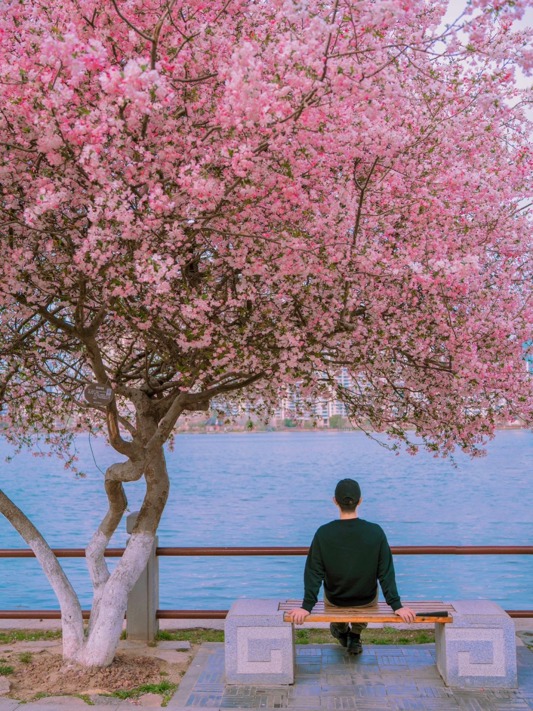 湖边一路花海,让我觉得海棠比樱花更好看~