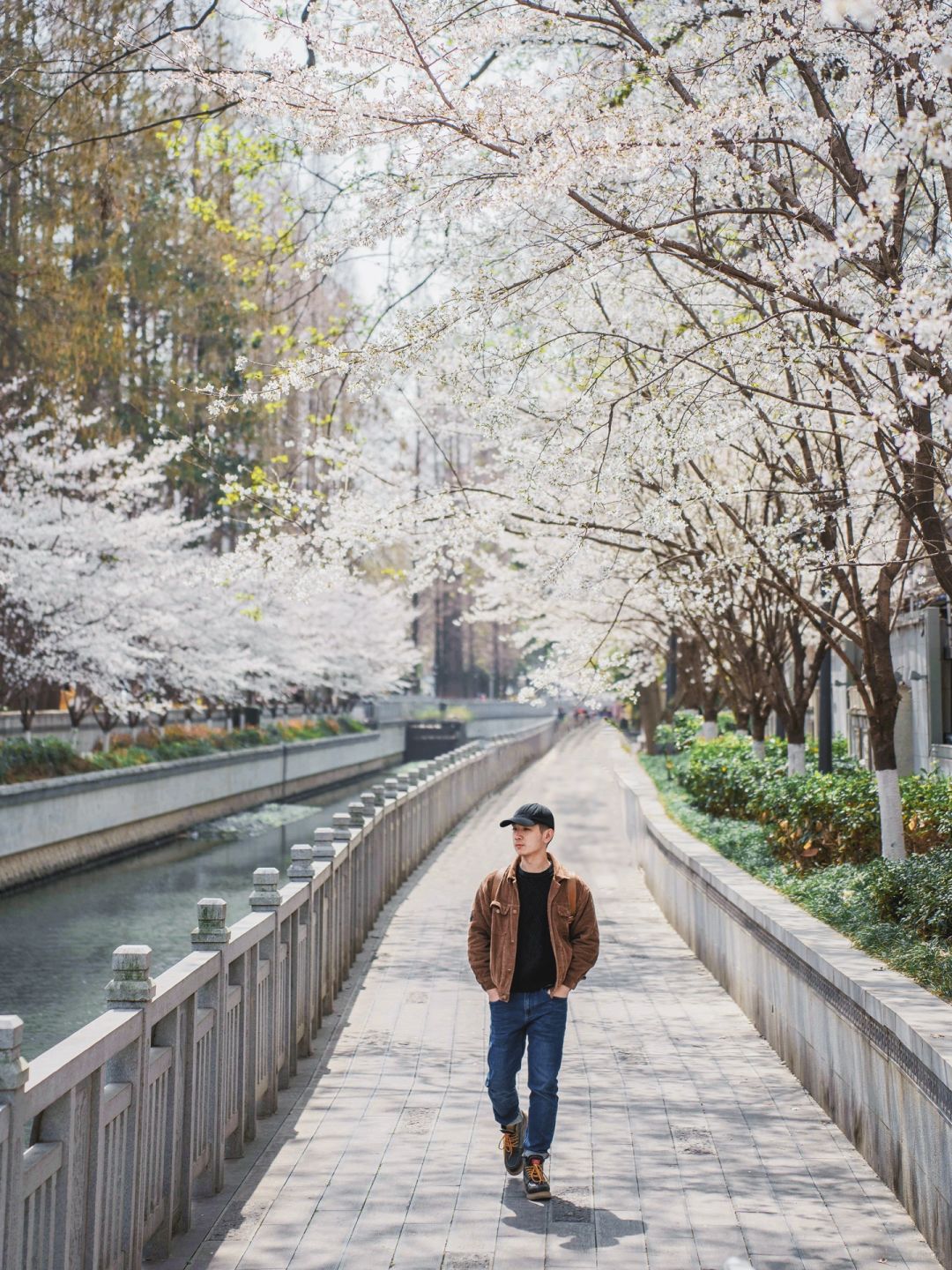 樱花树都开在河的两岸,对我来说这条河景色比鸡鸣寺更美~
