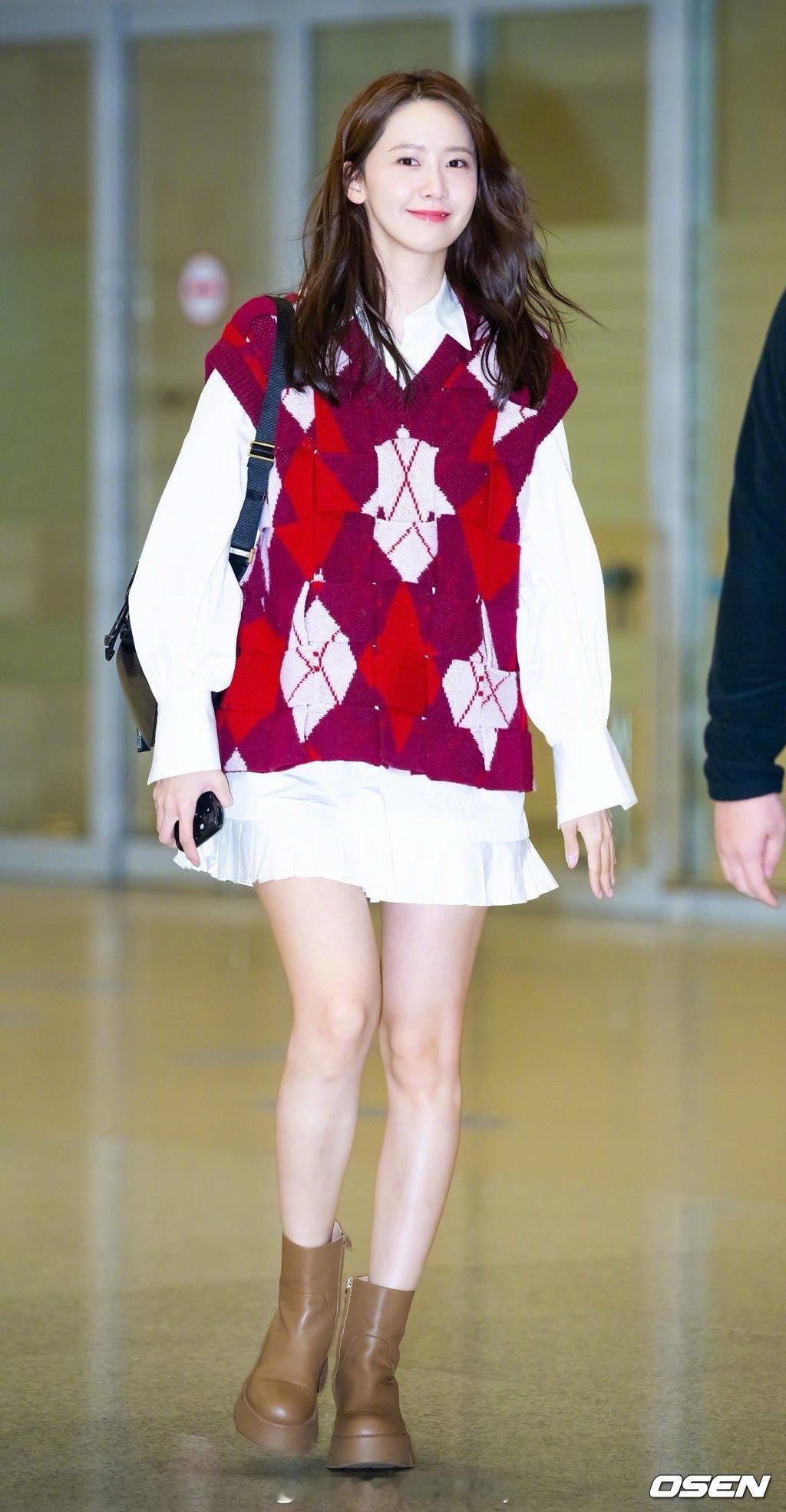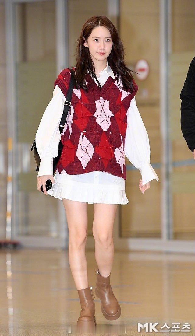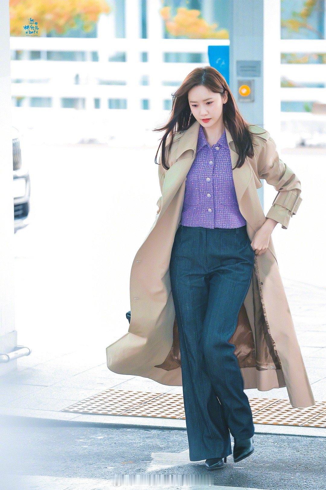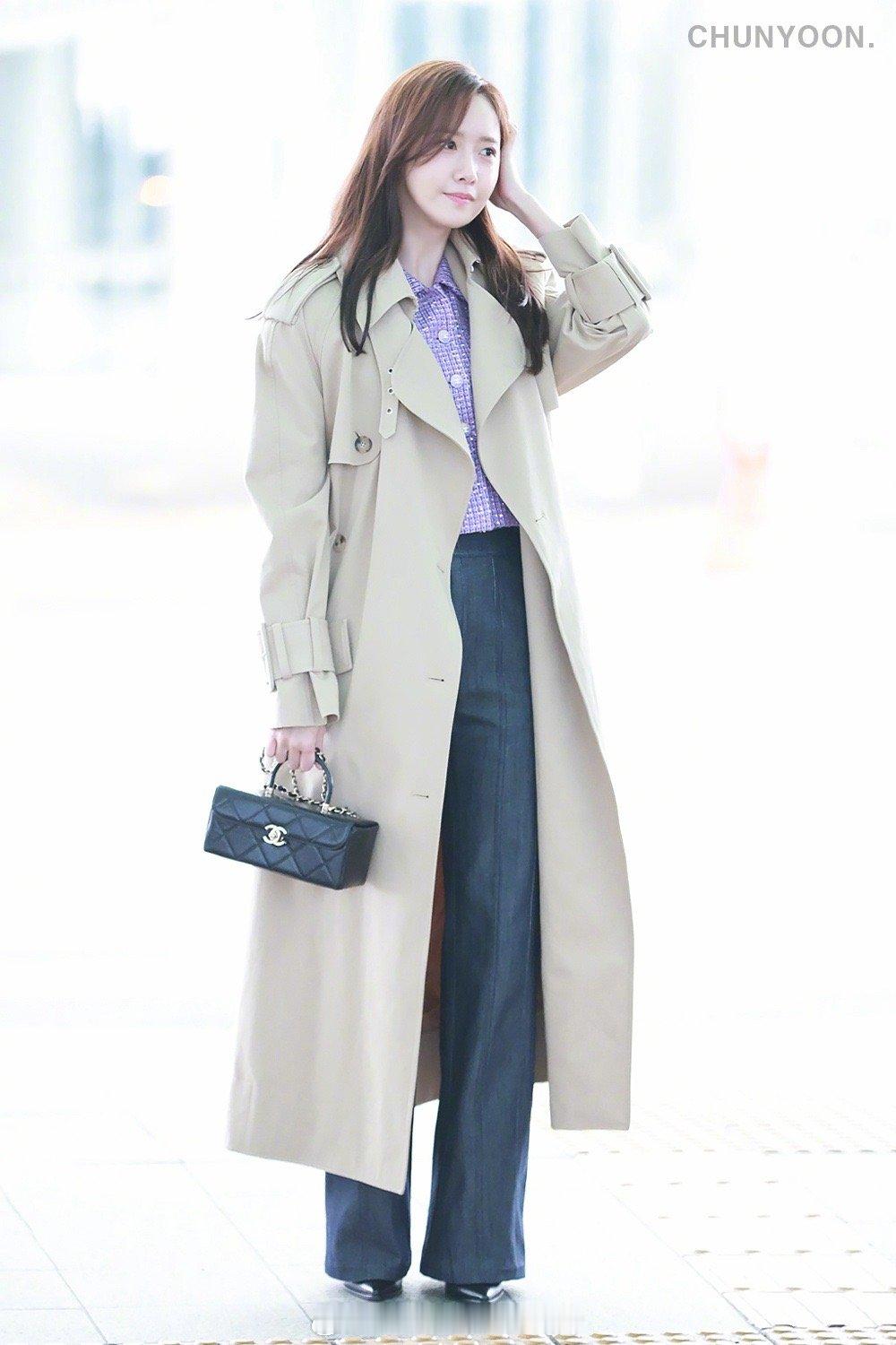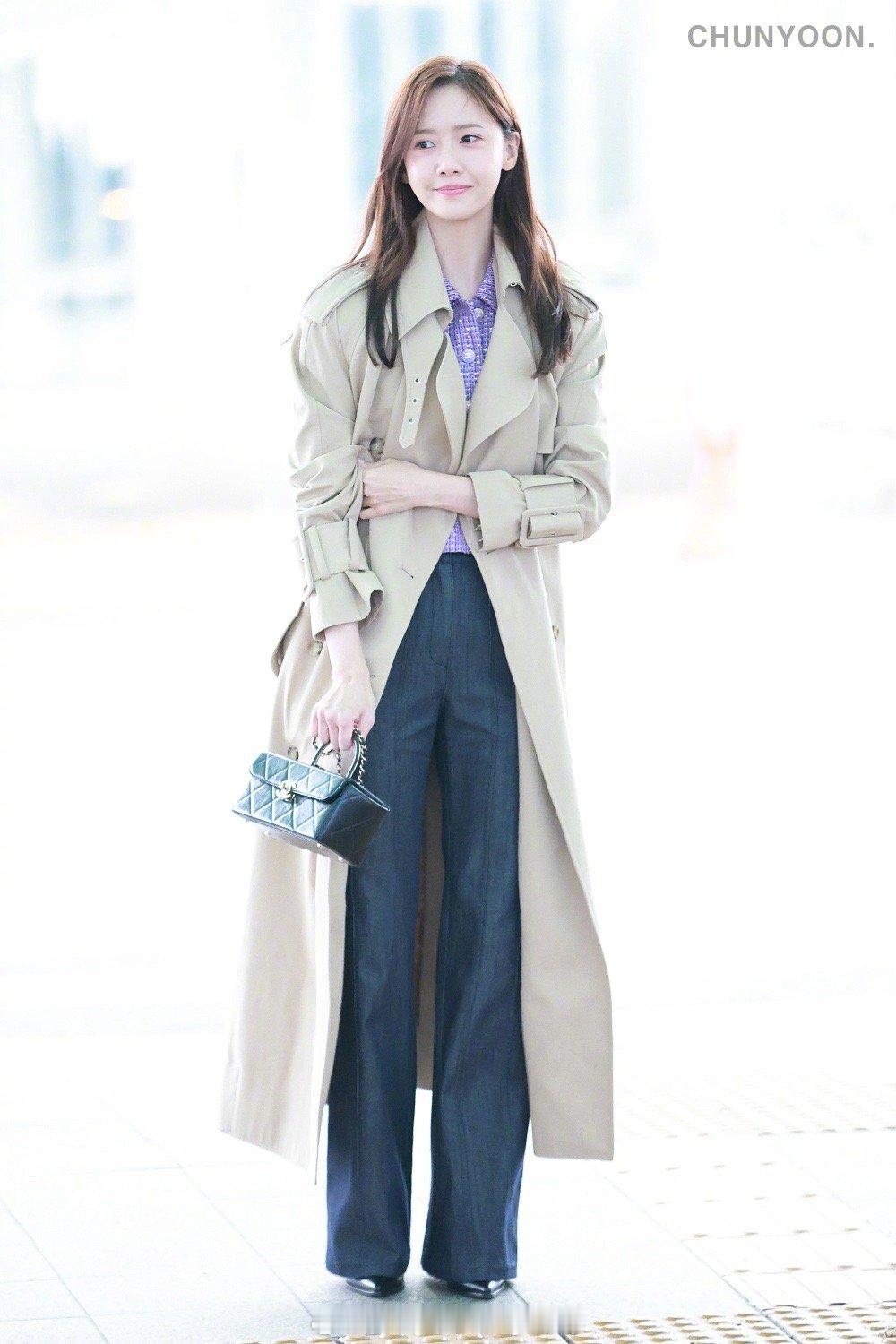 林允儿近日机场私服解析两则,马甲叠穿衬衫和风衣搭配长裤,大家pick哪种look