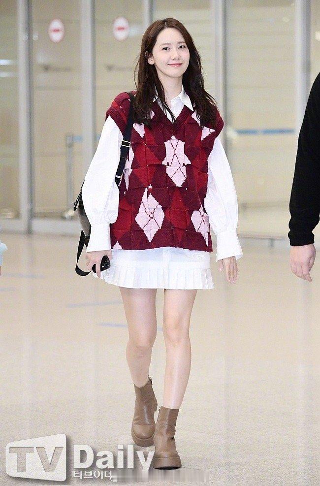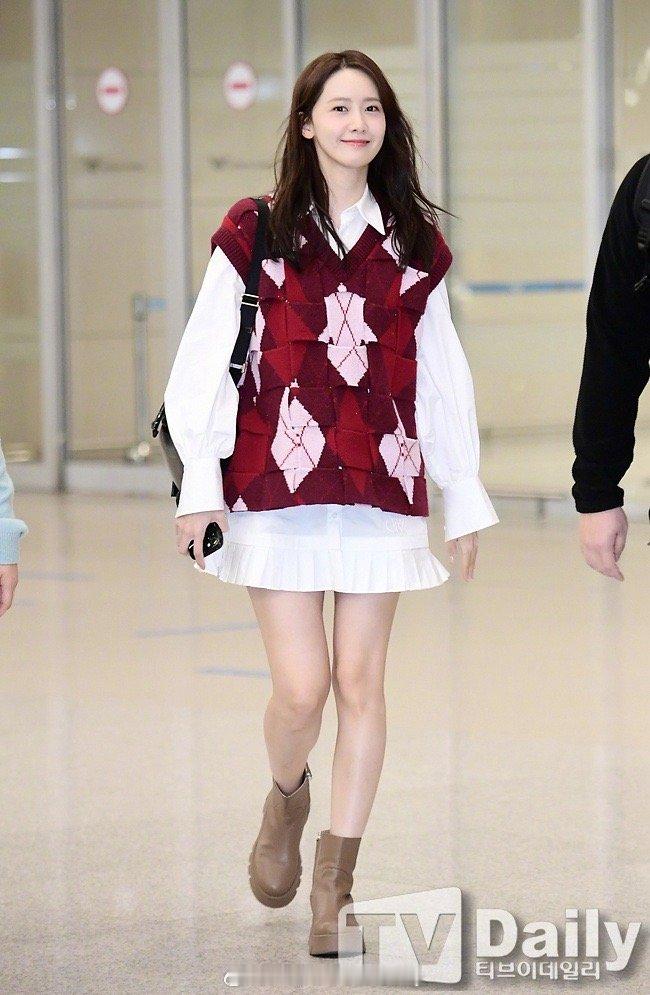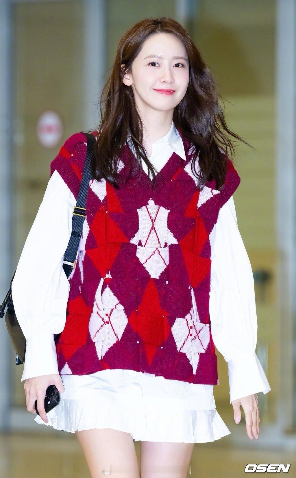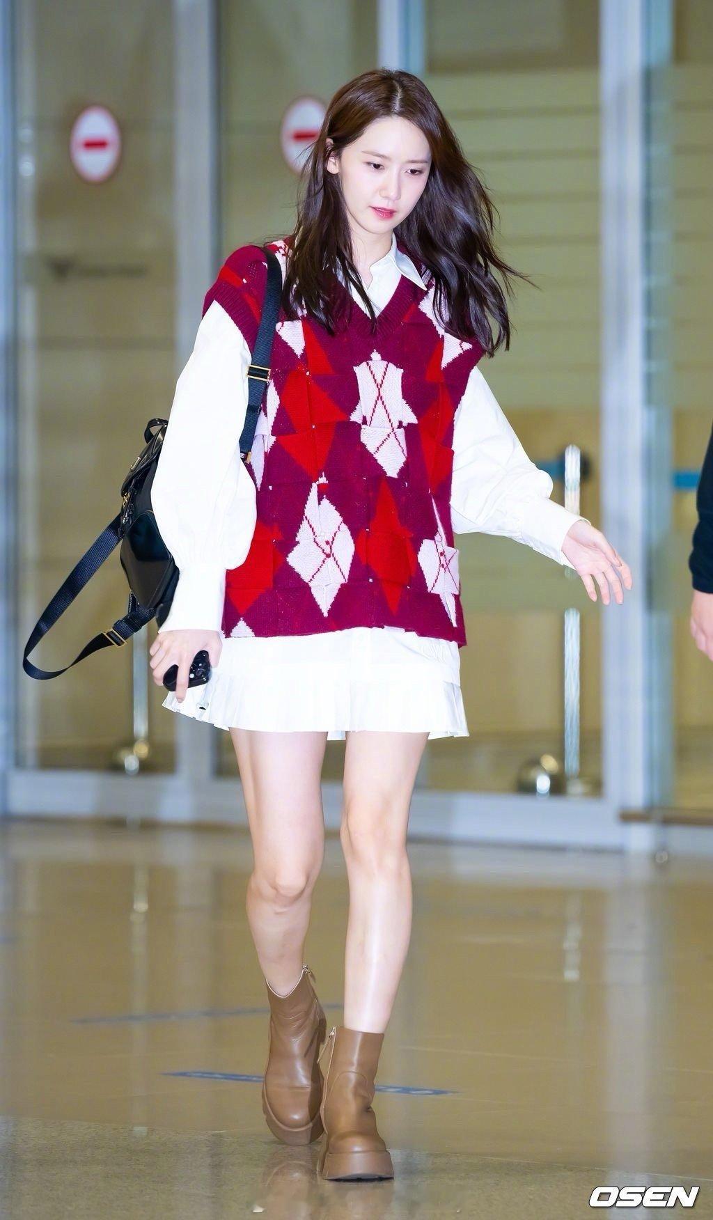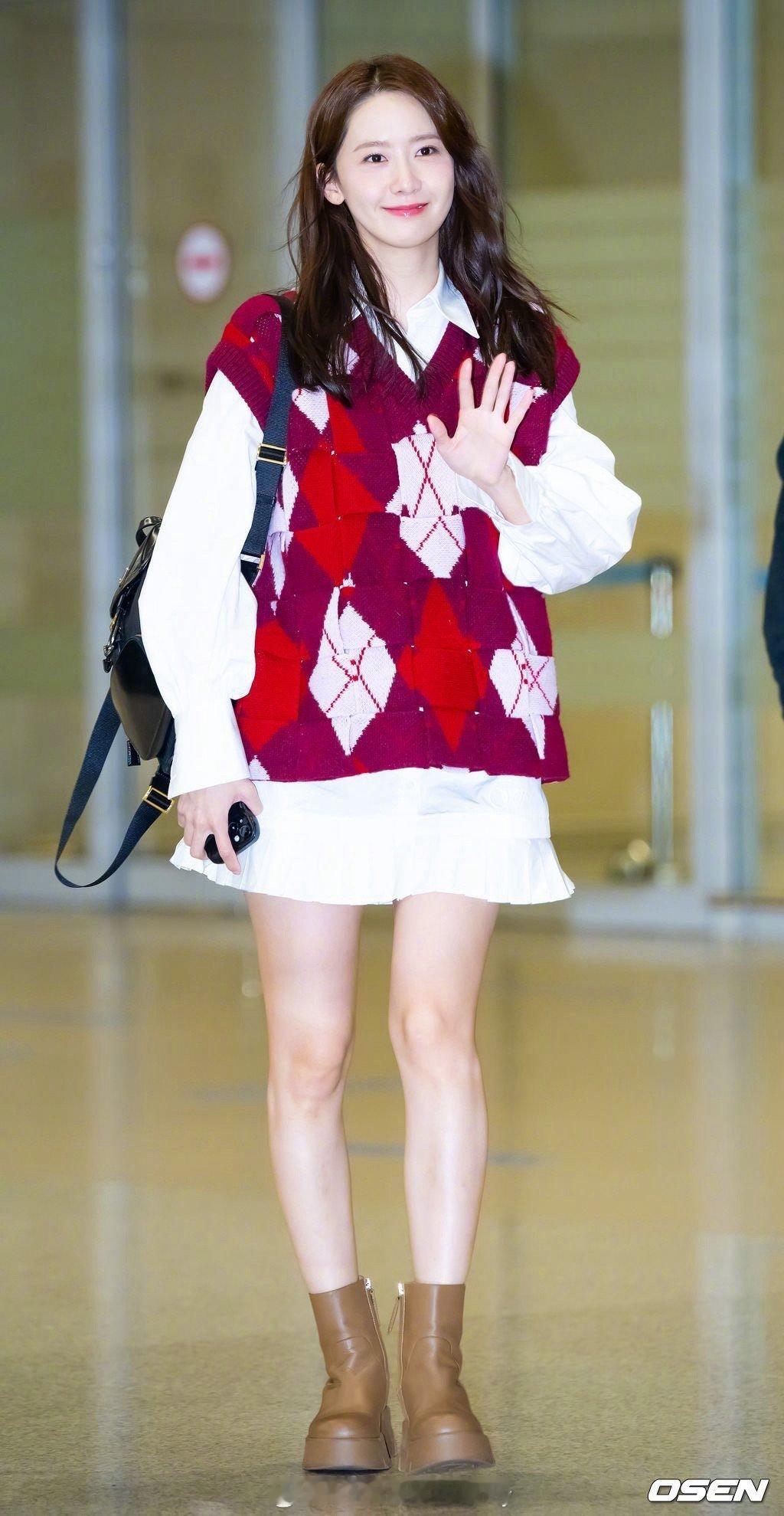 林允儿近日机场私服解析两则,马甲叠穿衬衫和风衣搭配长裤,大家pick哪种look