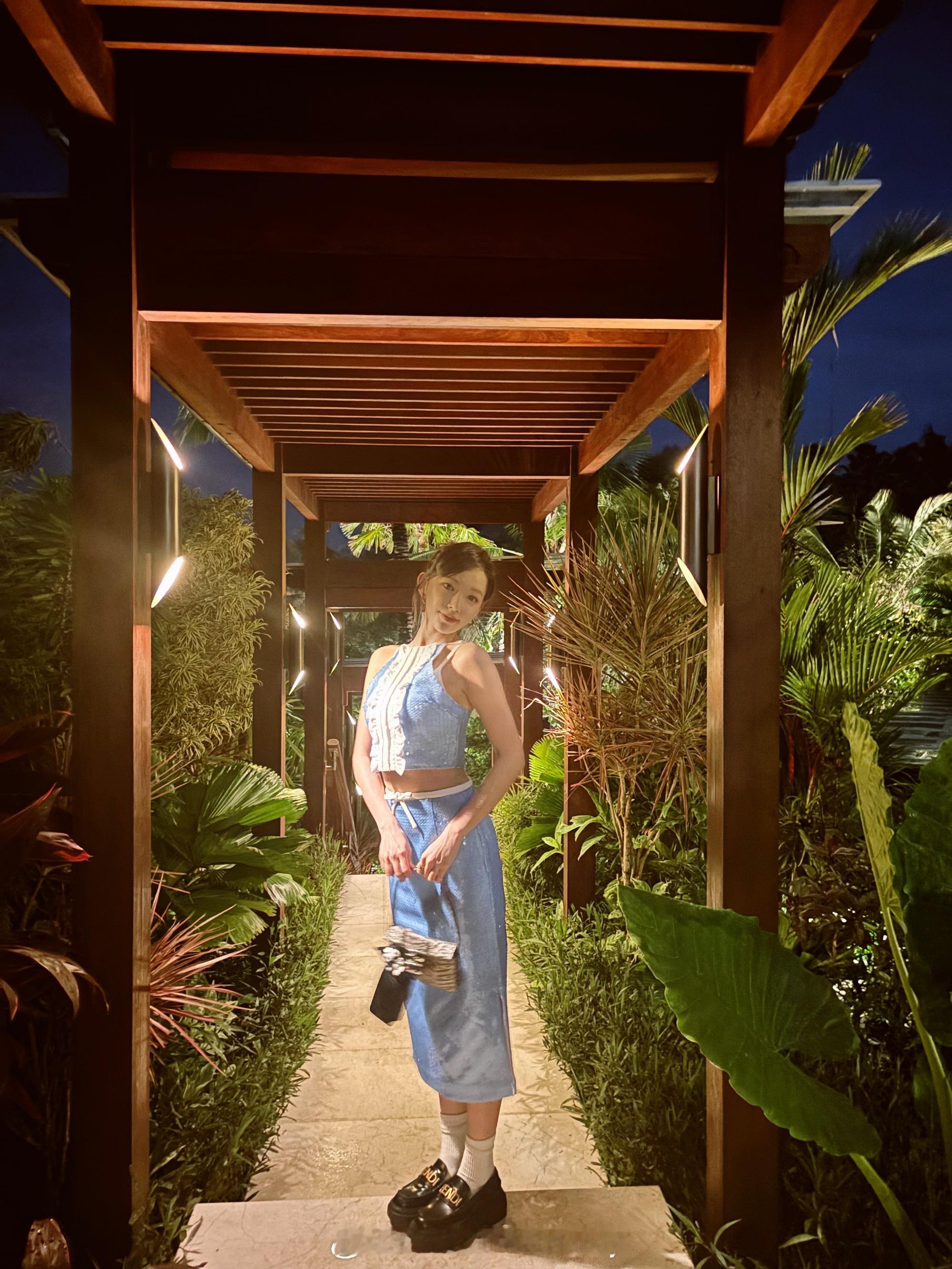 程潇最新私服解析,光泽感吊带上衣搭配直筒半身裙和黑色乐福鞋,展现凹凸有致的身材!