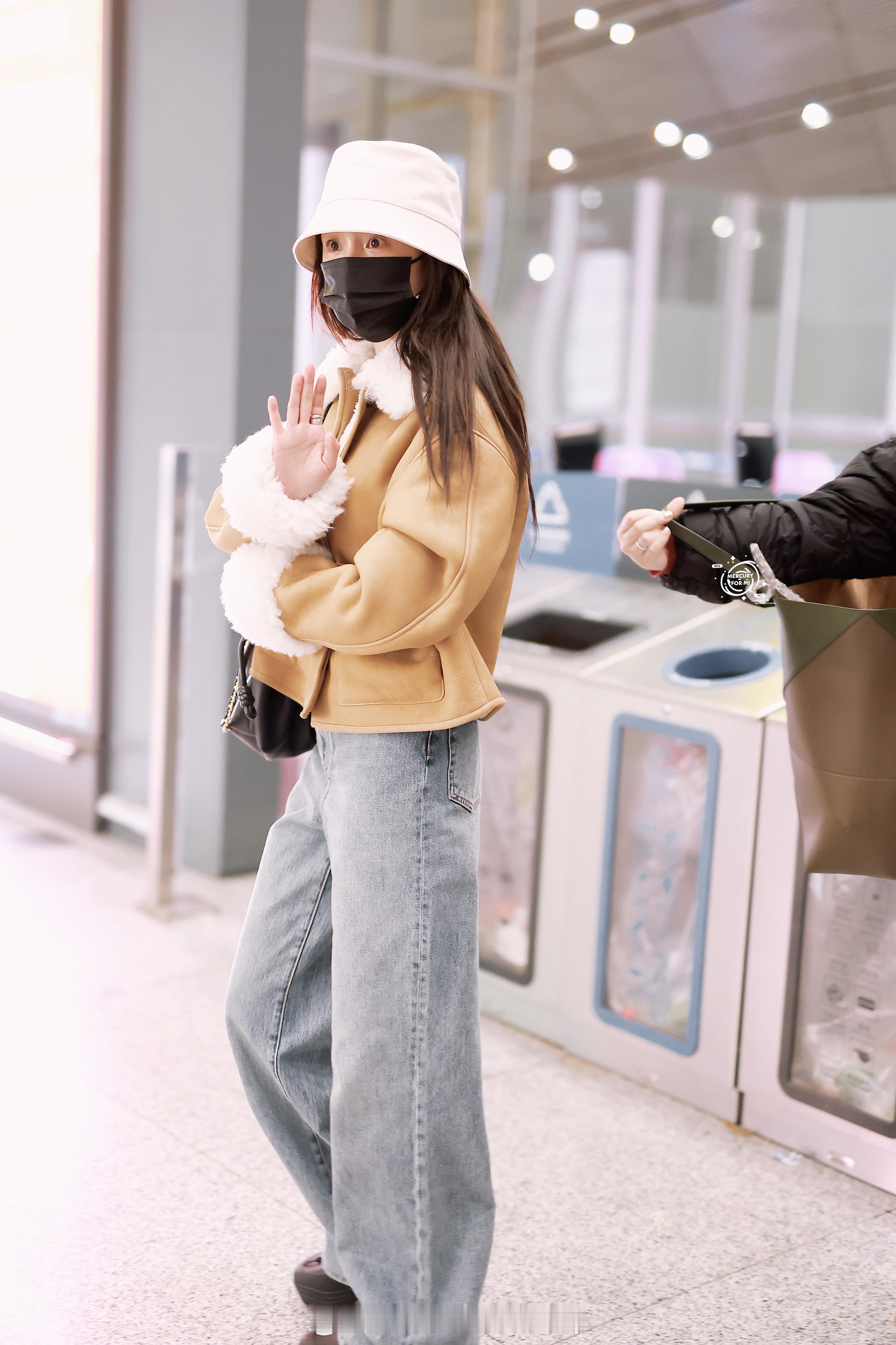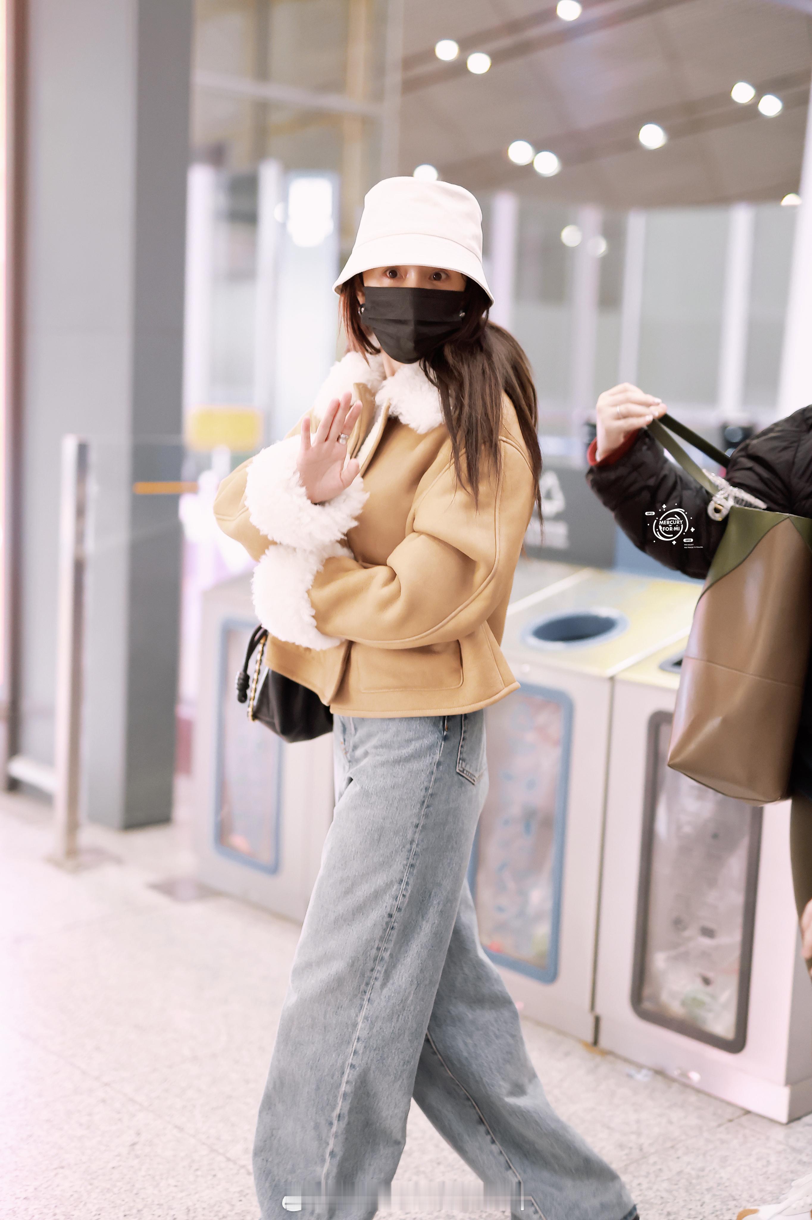 杨幂今日的机场私服解析,主打休闲舒适的保暖路线~
