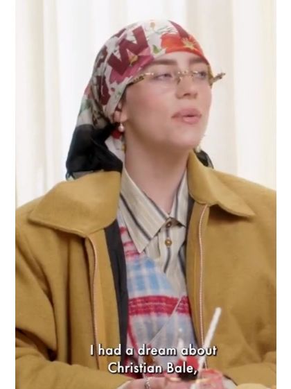 碧莉Billie Eilish说几年前她梦到克里斯蒂安·贝尔(Christian Bale),这让她意识到她需要跟男友分手。