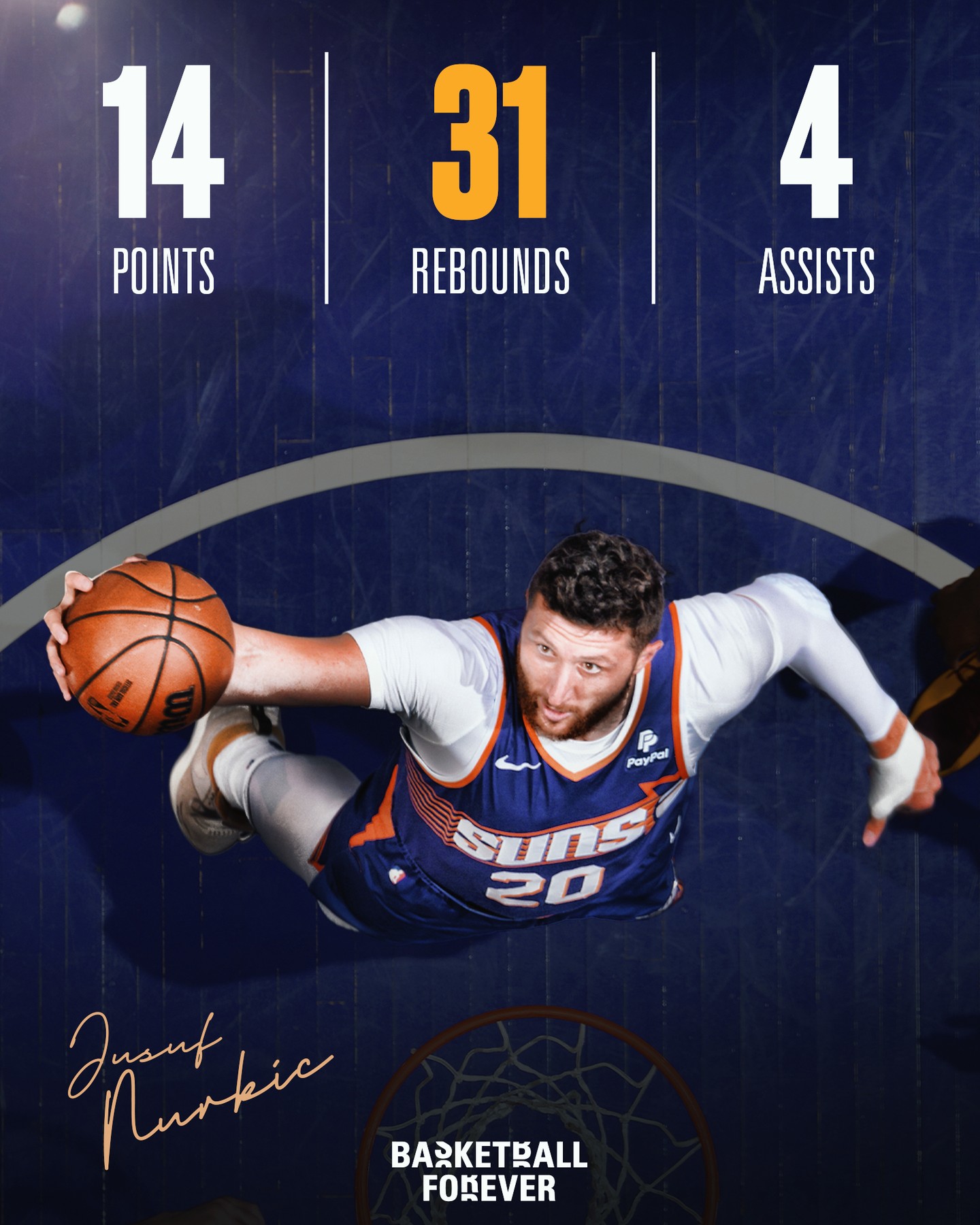 上一场被队友无伤下场的努尔基奇都抢下恐怖的31个篮板了,