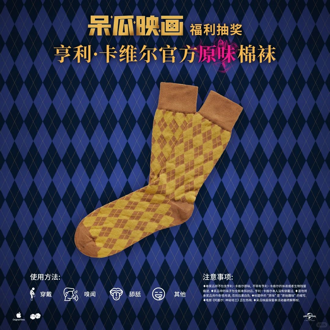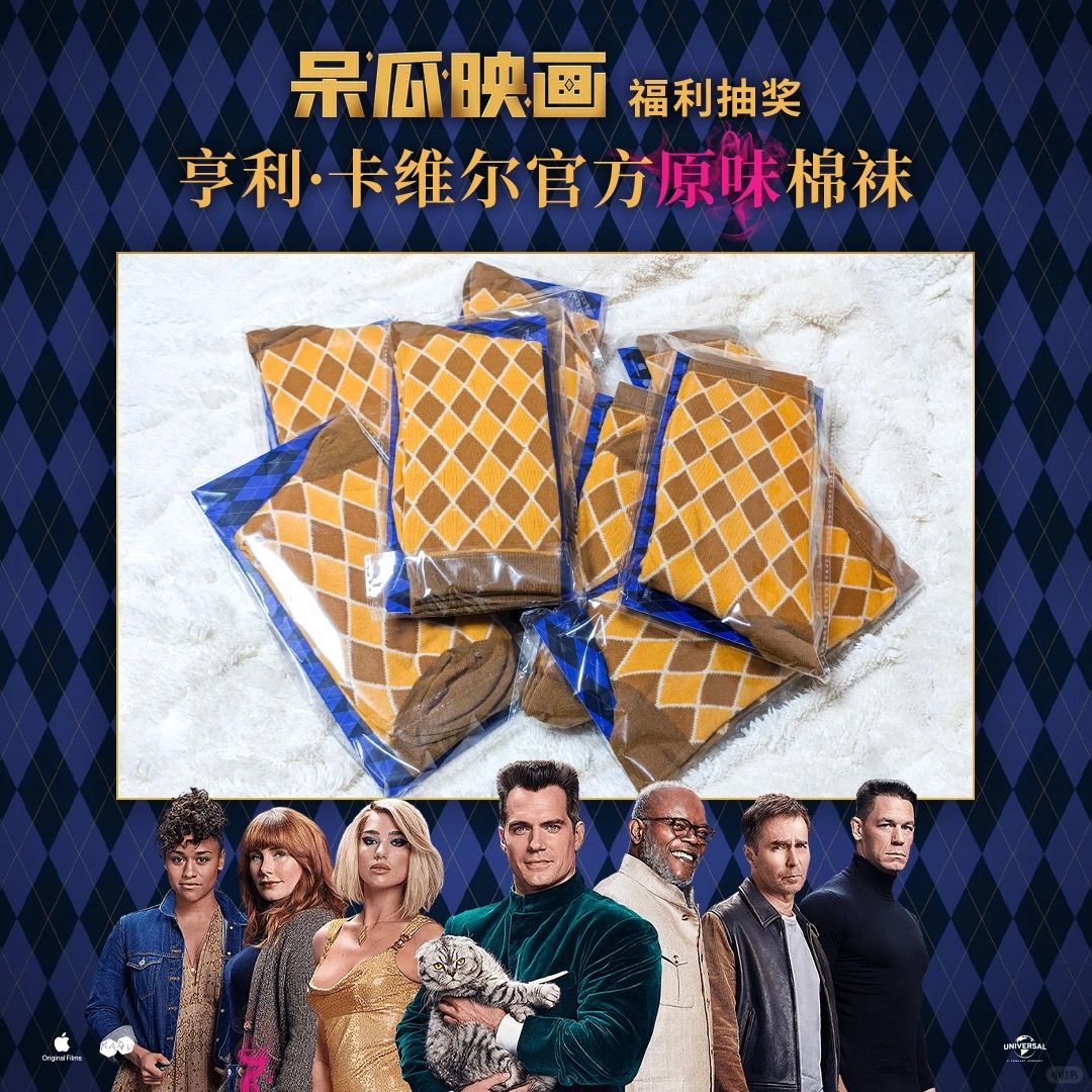 抽1位幸运粉丝送《阿盖尔:神秘特工》中亨利·卡维尔(Henry Cavill)的原味袜子。
