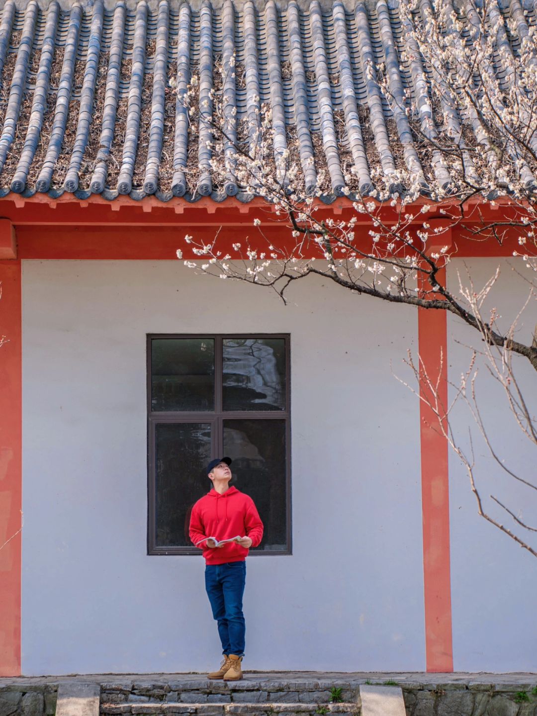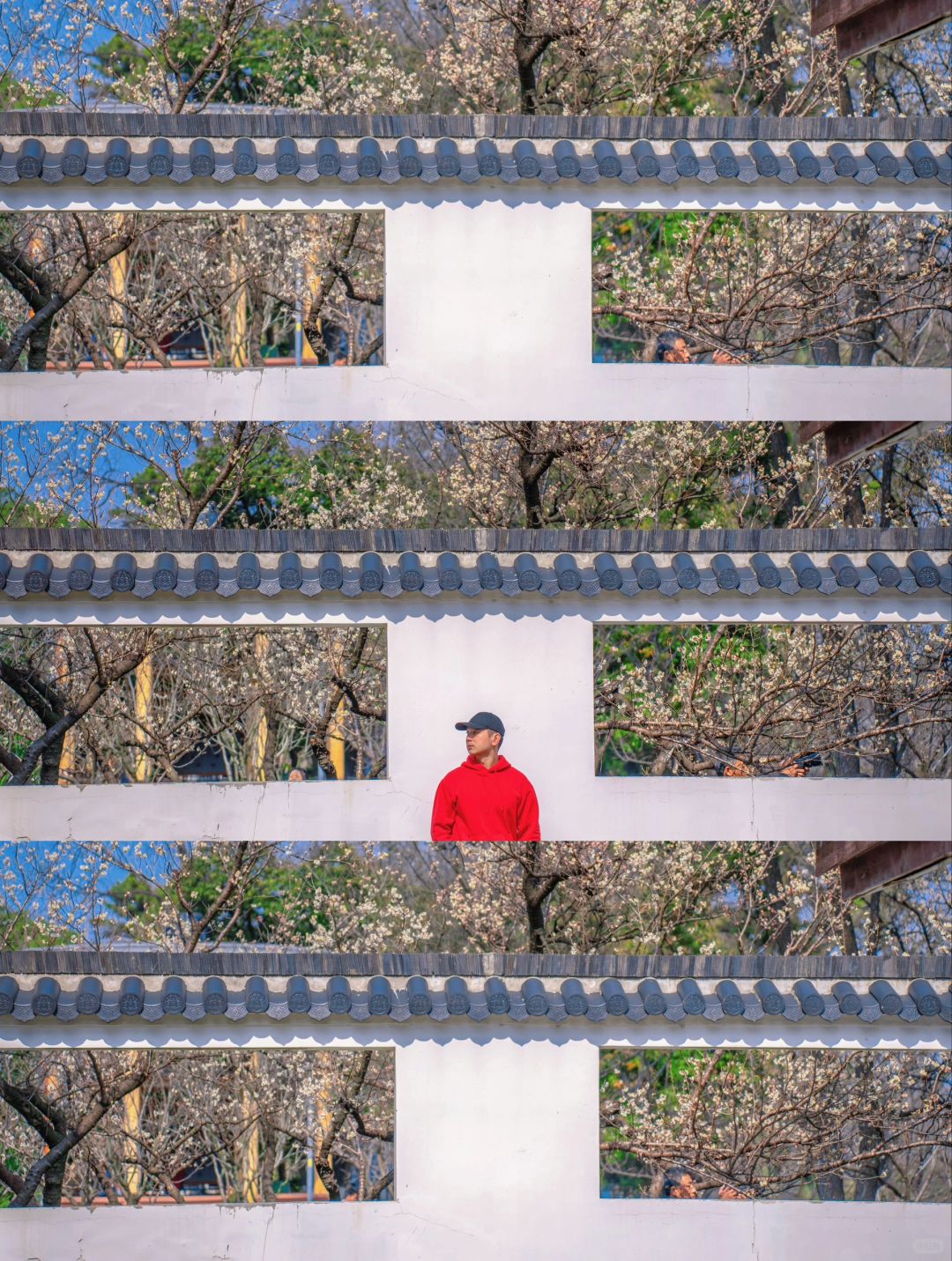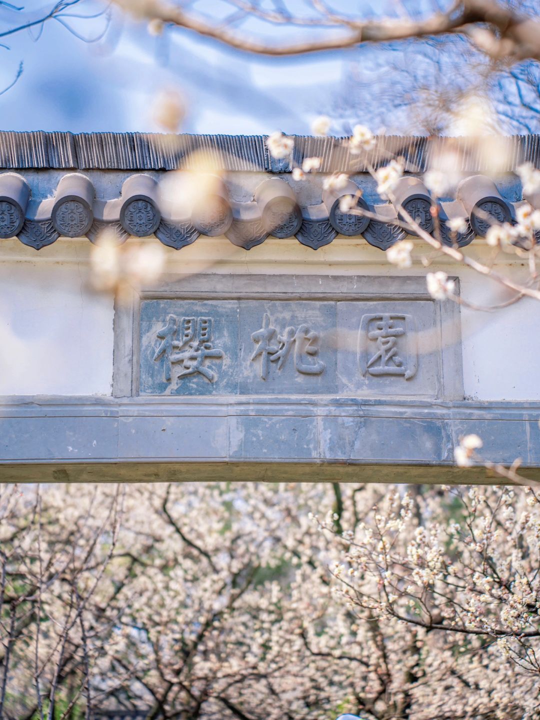这次发现位于樱桃园内的樱桃花已悄然全开了,粉白色的樱桃花挂满了枝头,搭配红白色的唐风建筑真的好出片~