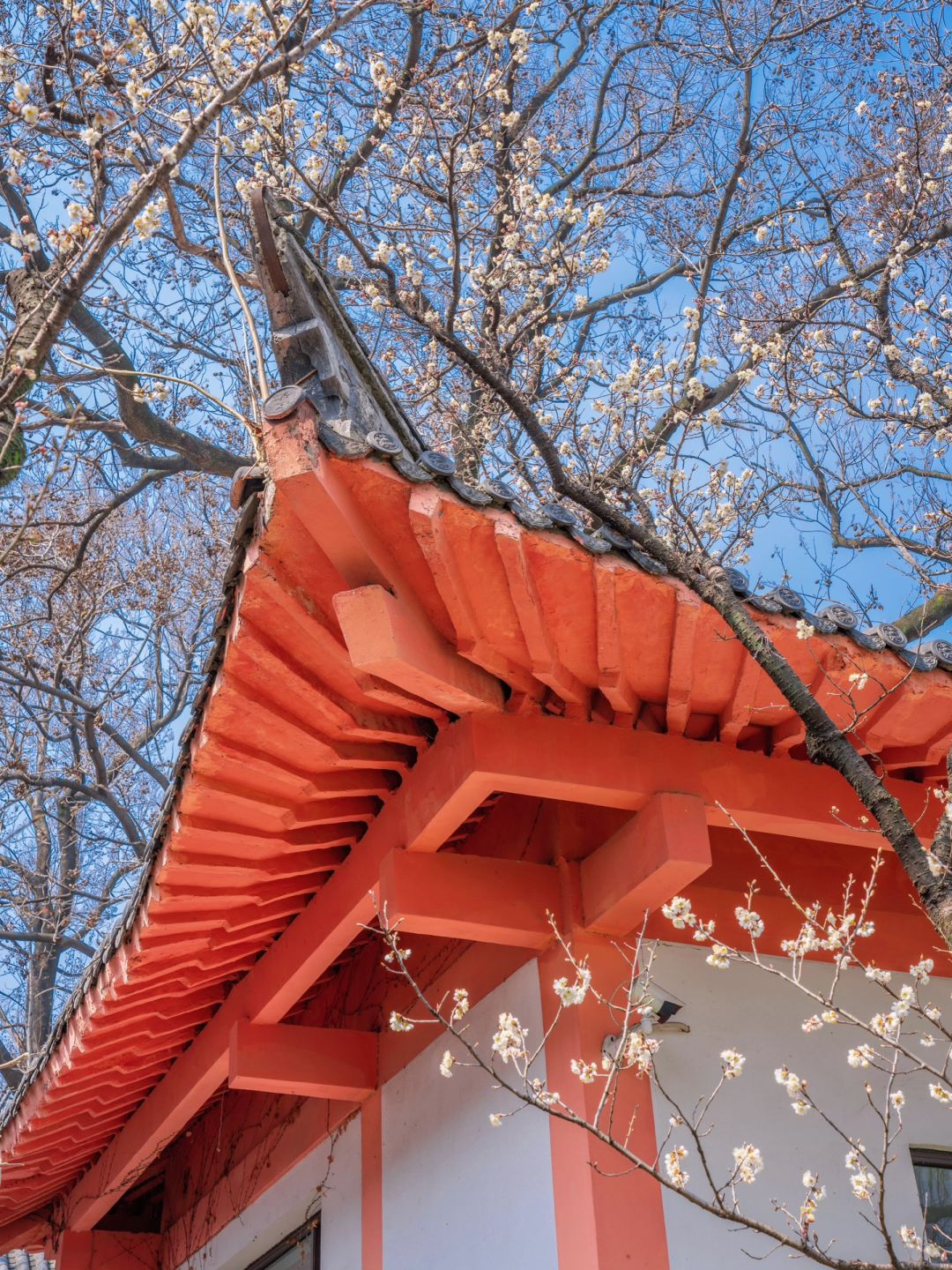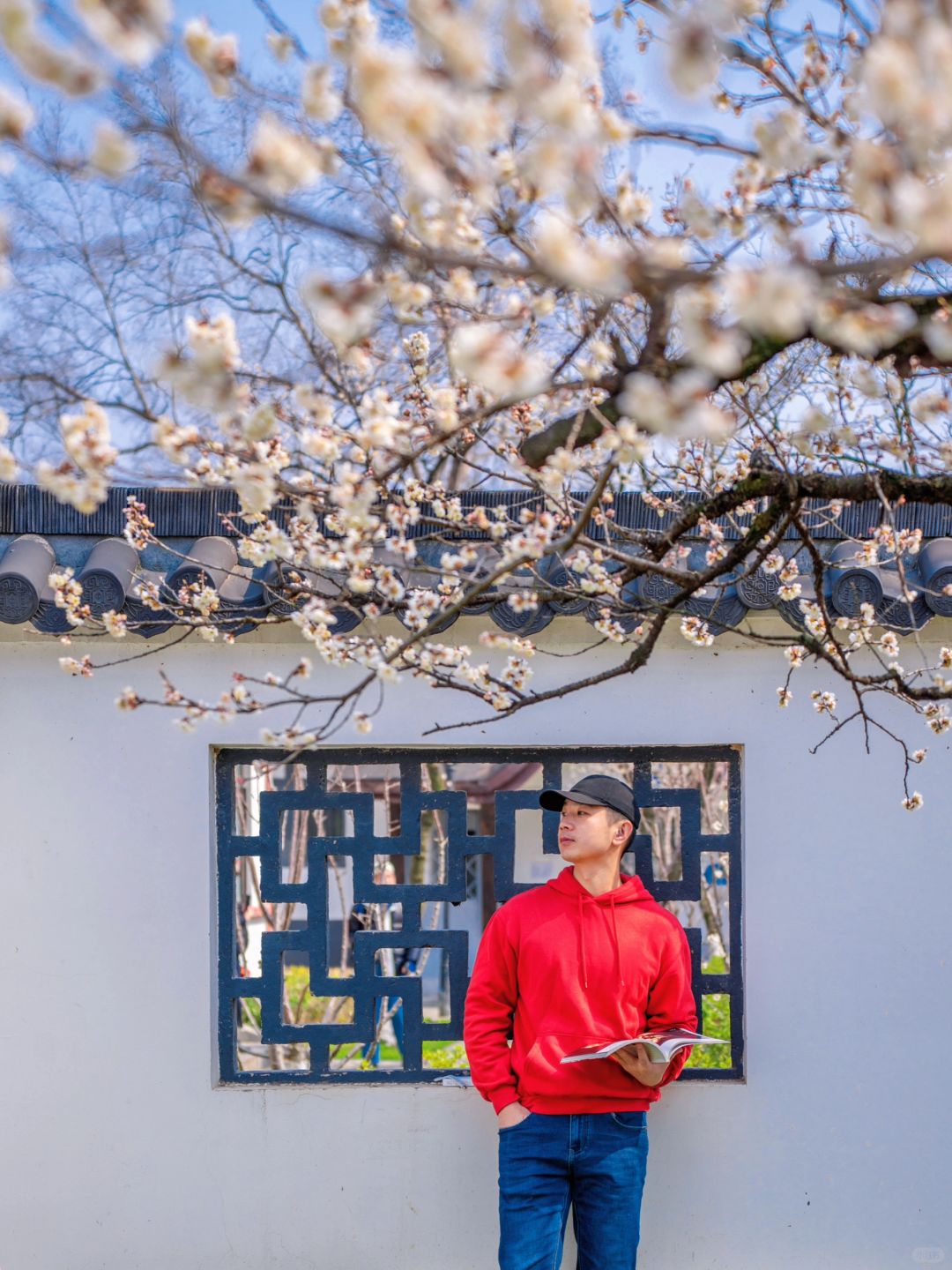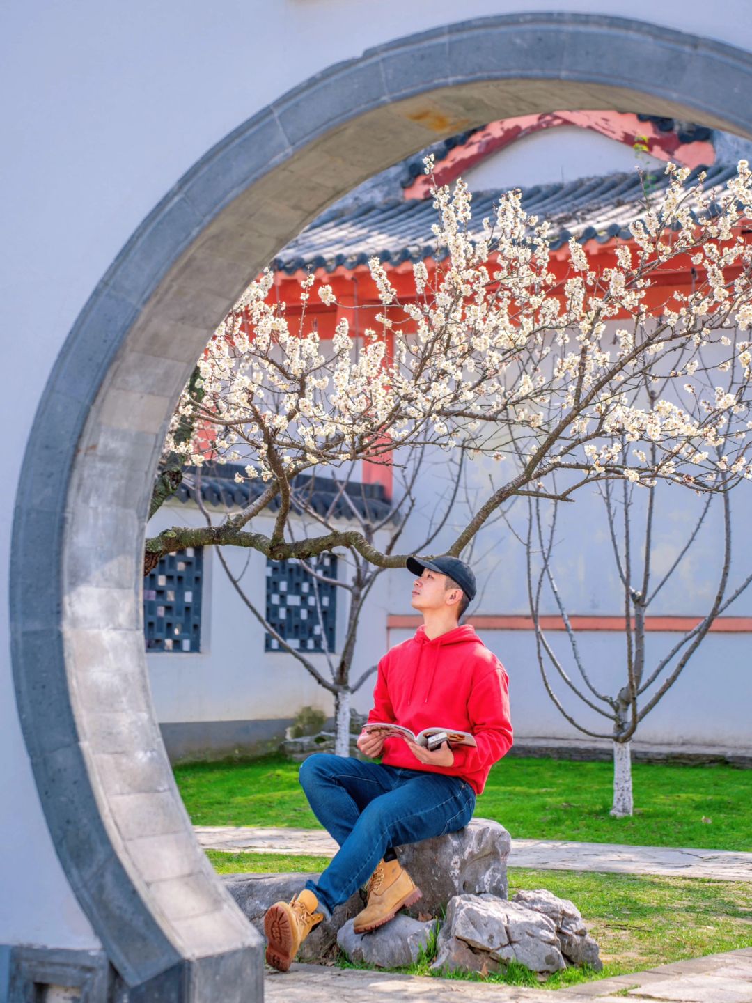 这次发现位于樱桃园内的樱桃花已悄然全开了,粉白色的樱桃花挂满了枝头,搭配红白色的唐风建筑真的好出片~