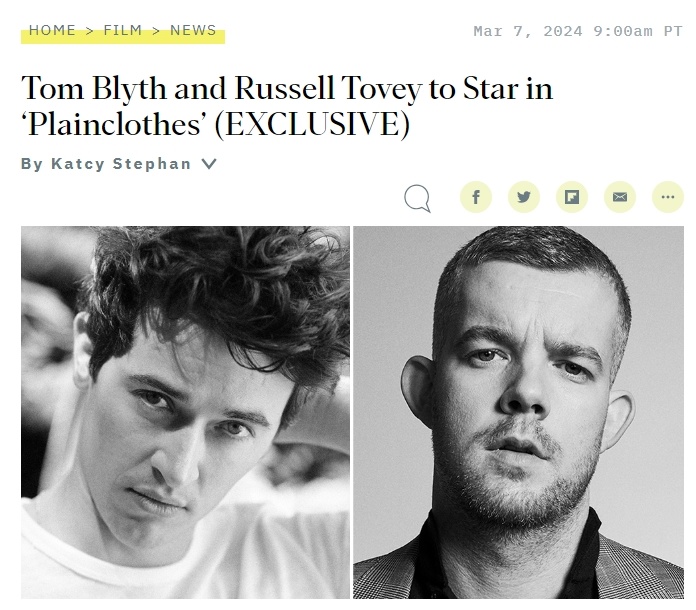 汤姆·布莱斯(Tom Blyth)和拉塞尔·托维(Russell Tovey)确认将领衔主演独立电影《便衣(Plainclothes)》,该片由新人导演卡门·艾米(Carmen Emmi)执导。电影将在纽约州锡拉丘兹拍摄。