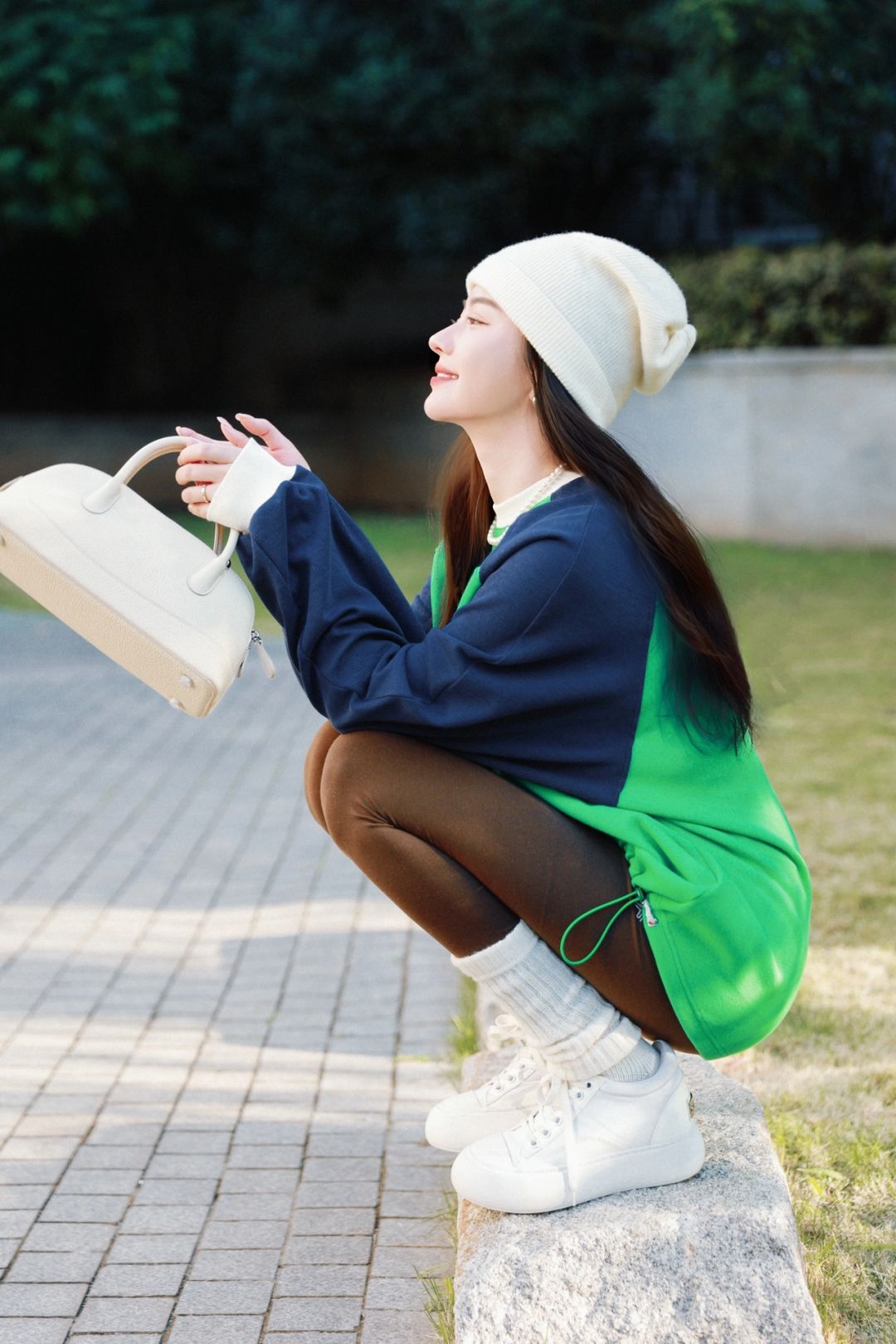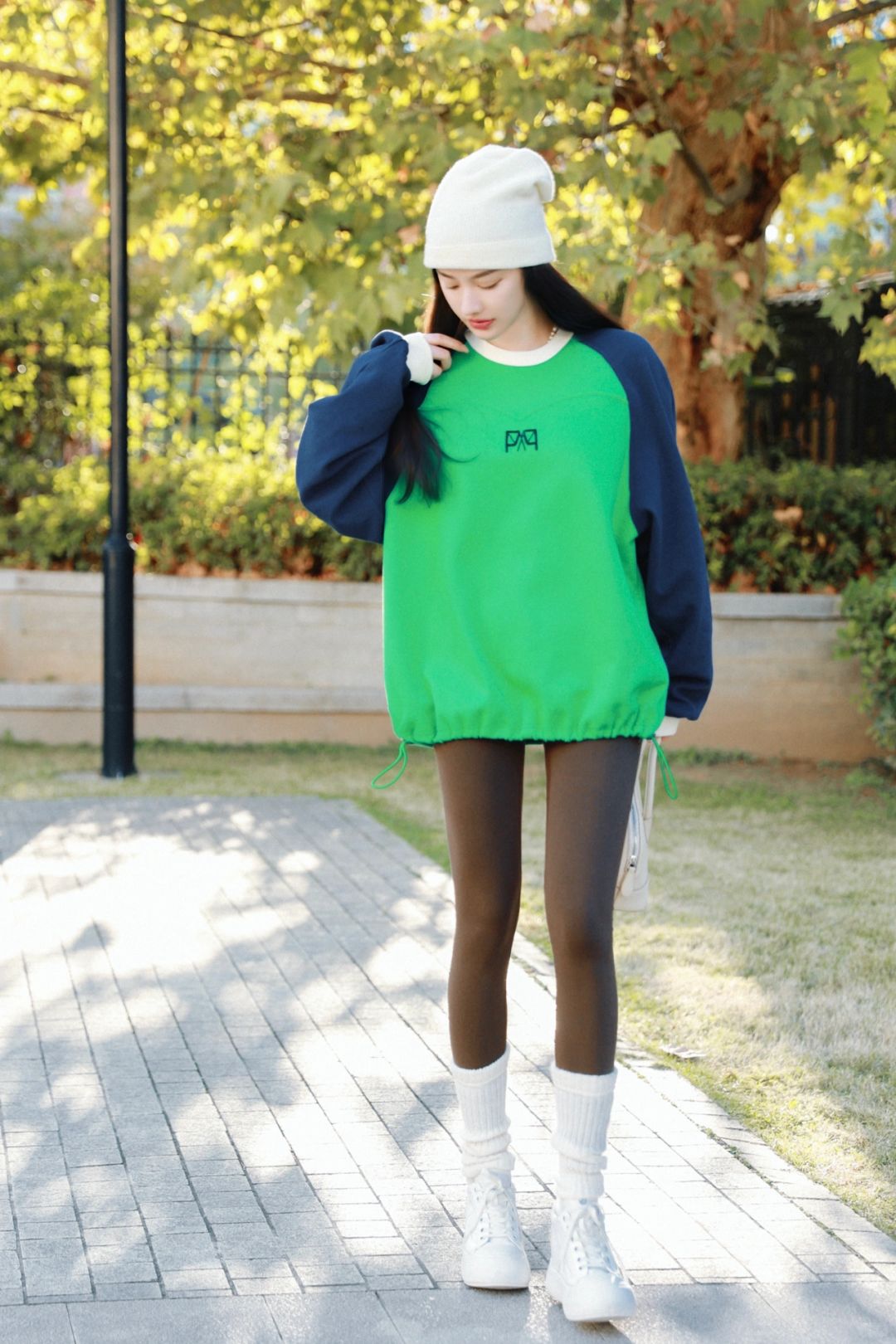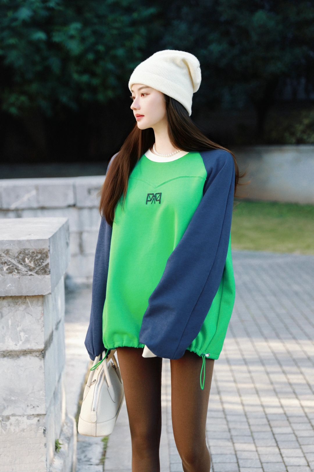 🎾🥏超宽松版型卫衣,配上美式复古蓝➕绿,散发冬日多巴胺,完全是本“多动女孩”的本命卫衣。