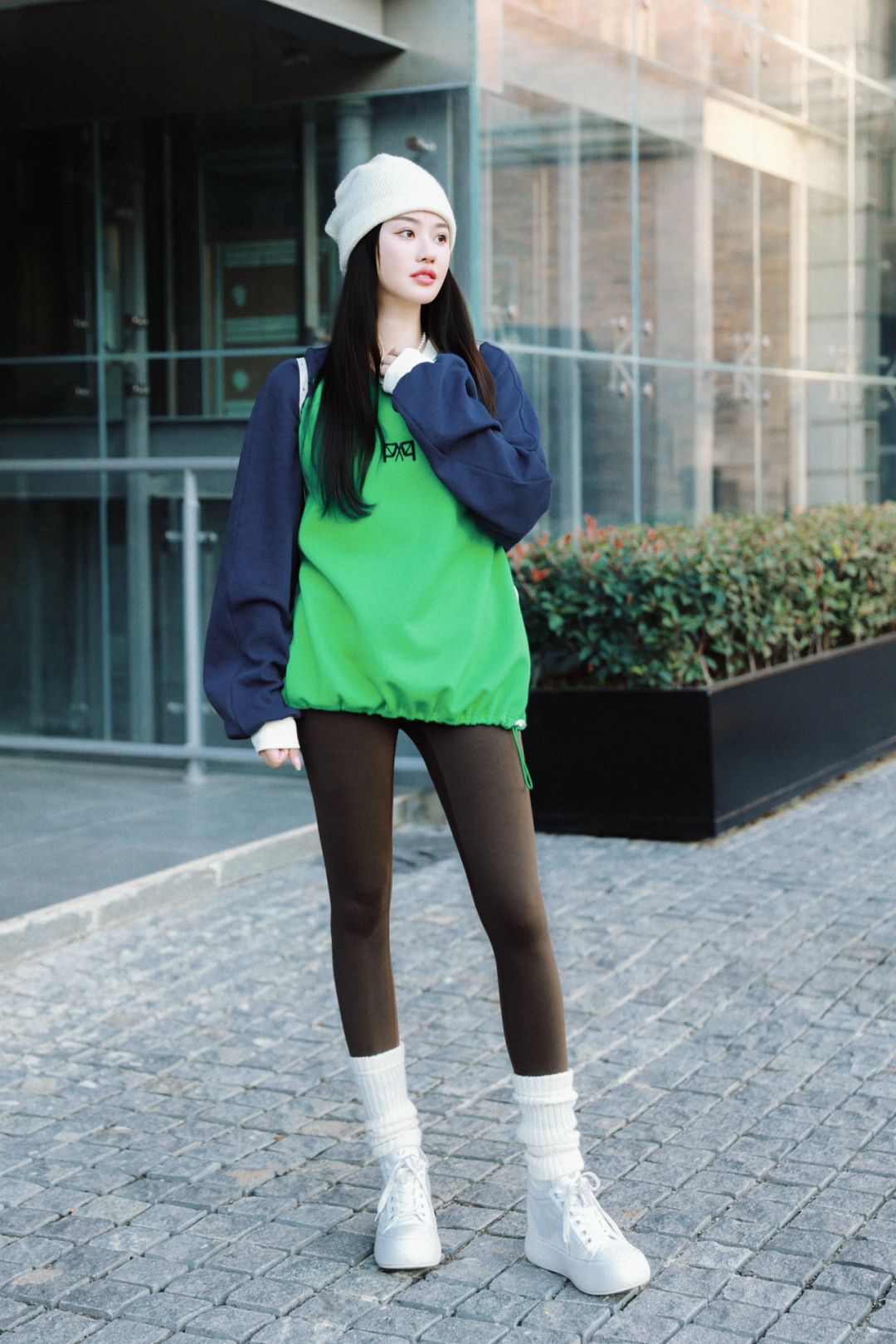 宽松卫衣➕leggings,就是秋冬季节安全又时髦的搭配。