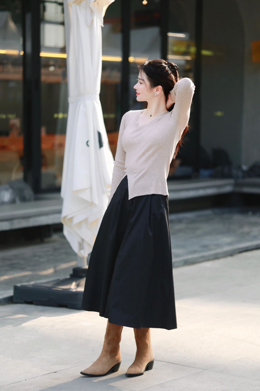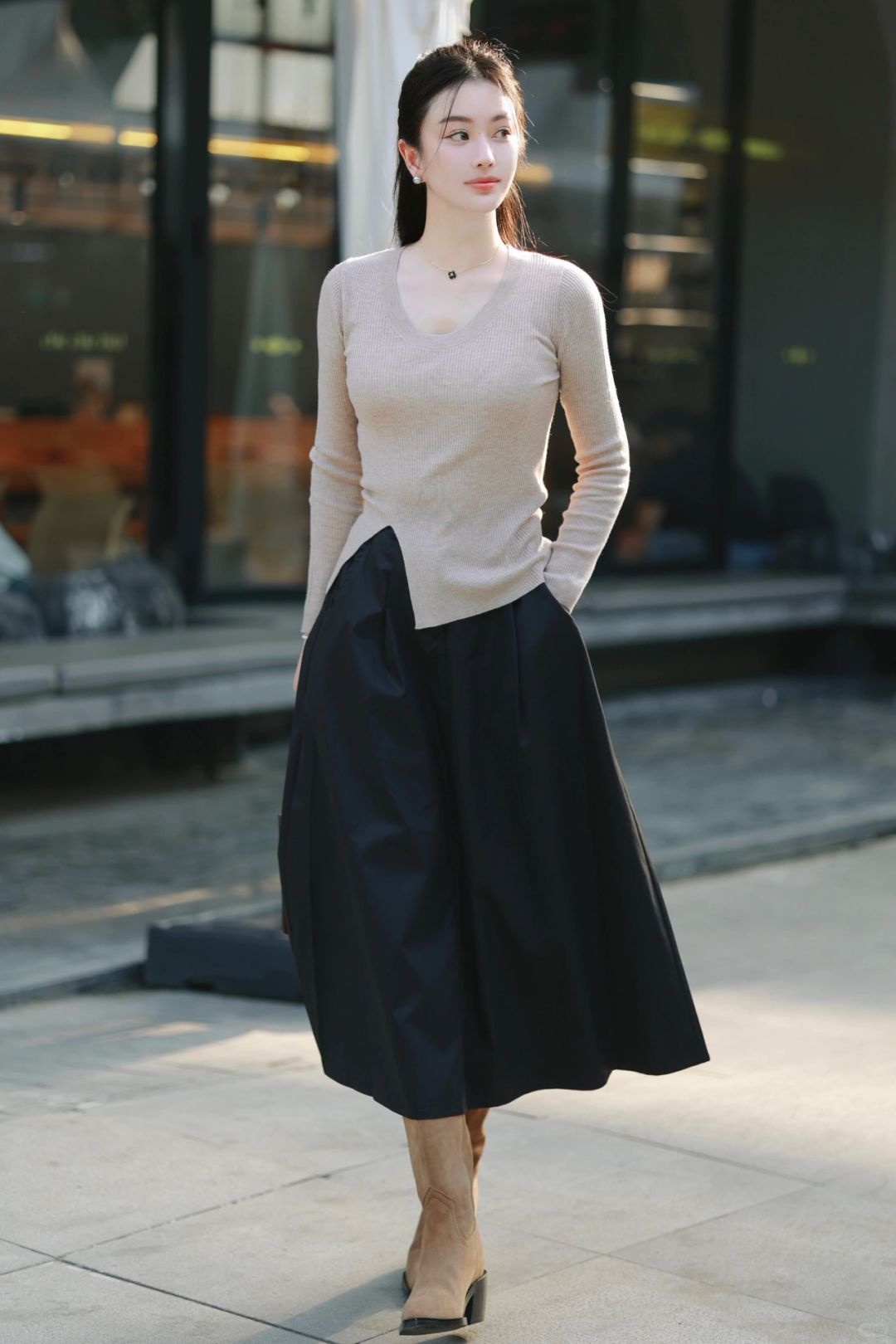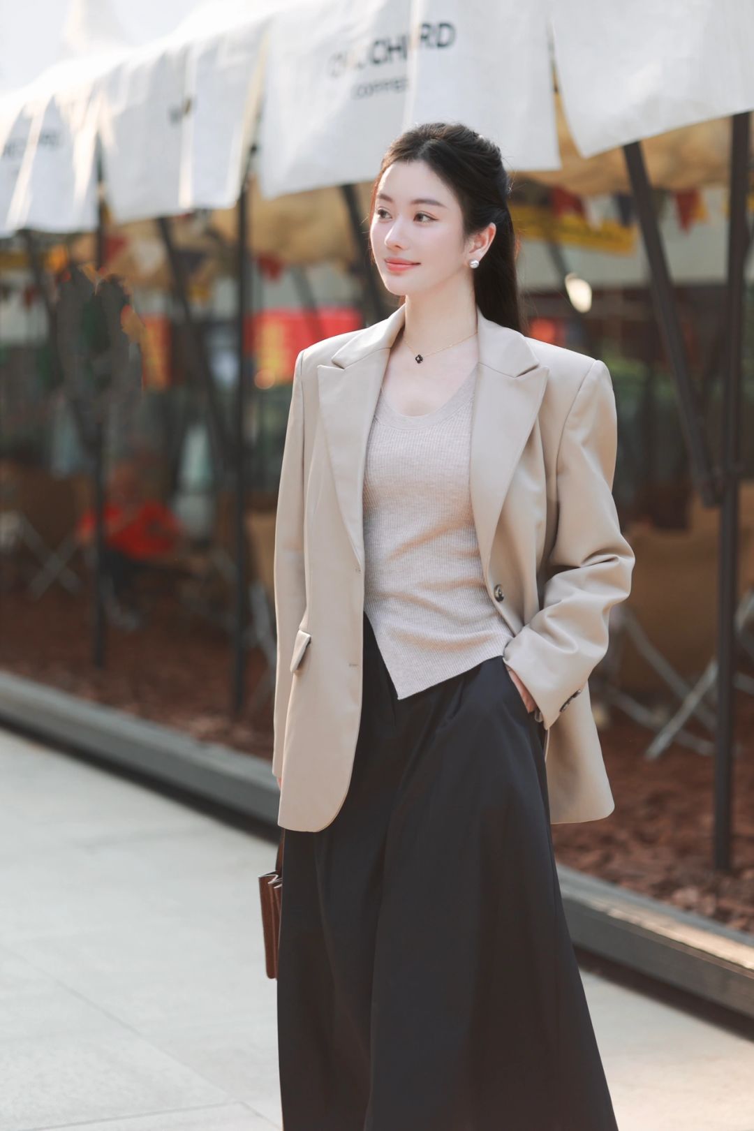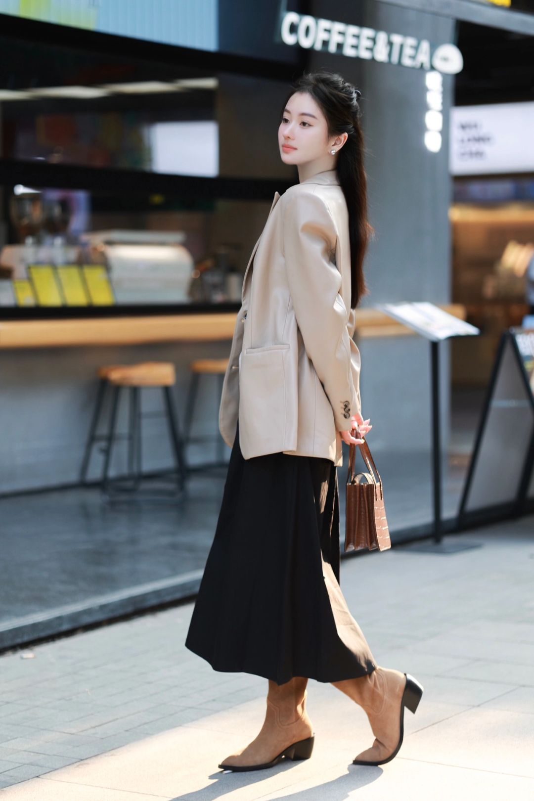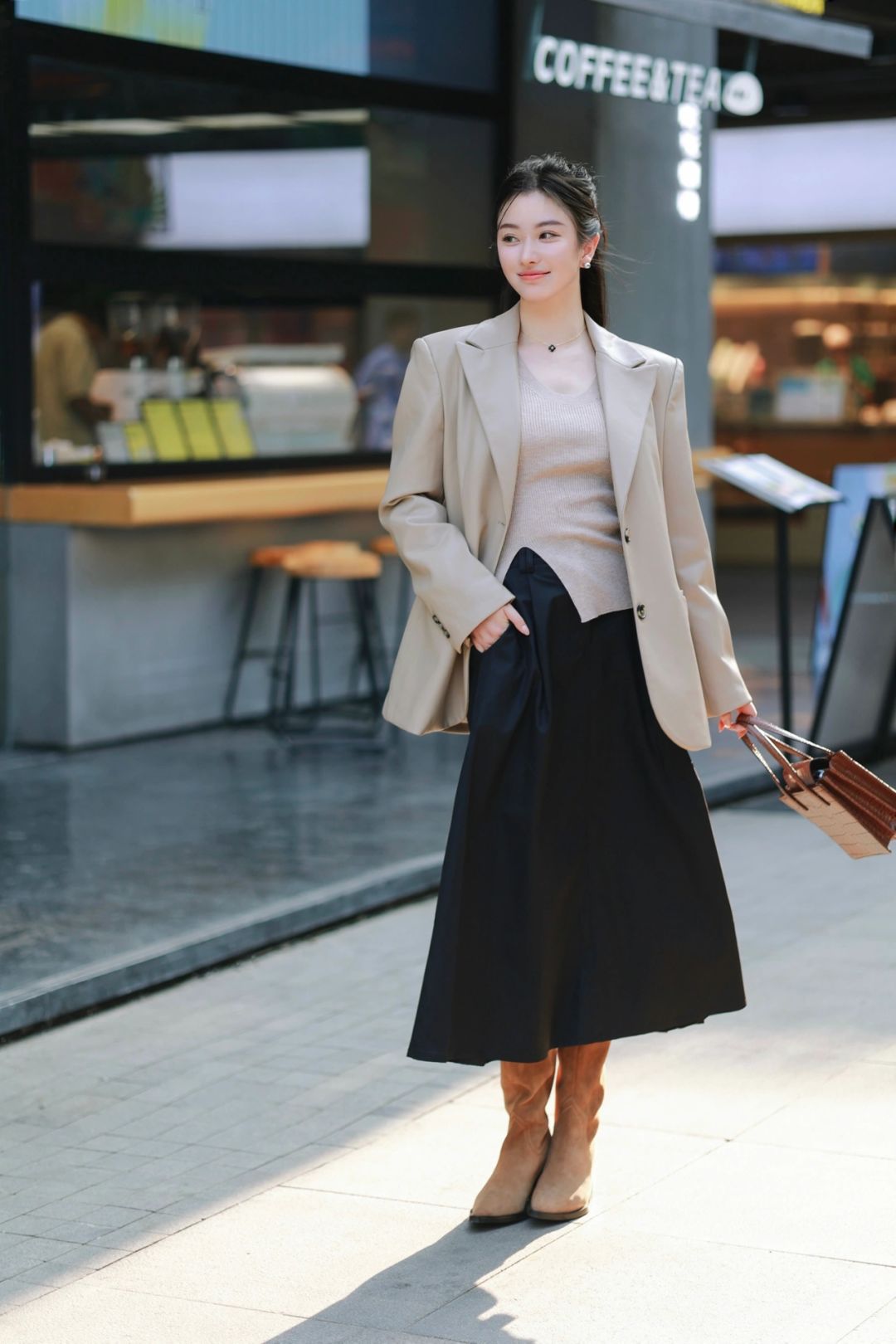 ☕️奶茶色的皮西装夹克、米驼色针织衫、黑色长裙与麂皮西部靴,组成了我心中完美的秋。醉人的、自在到无边无际的秋,希望你也可以拥有。