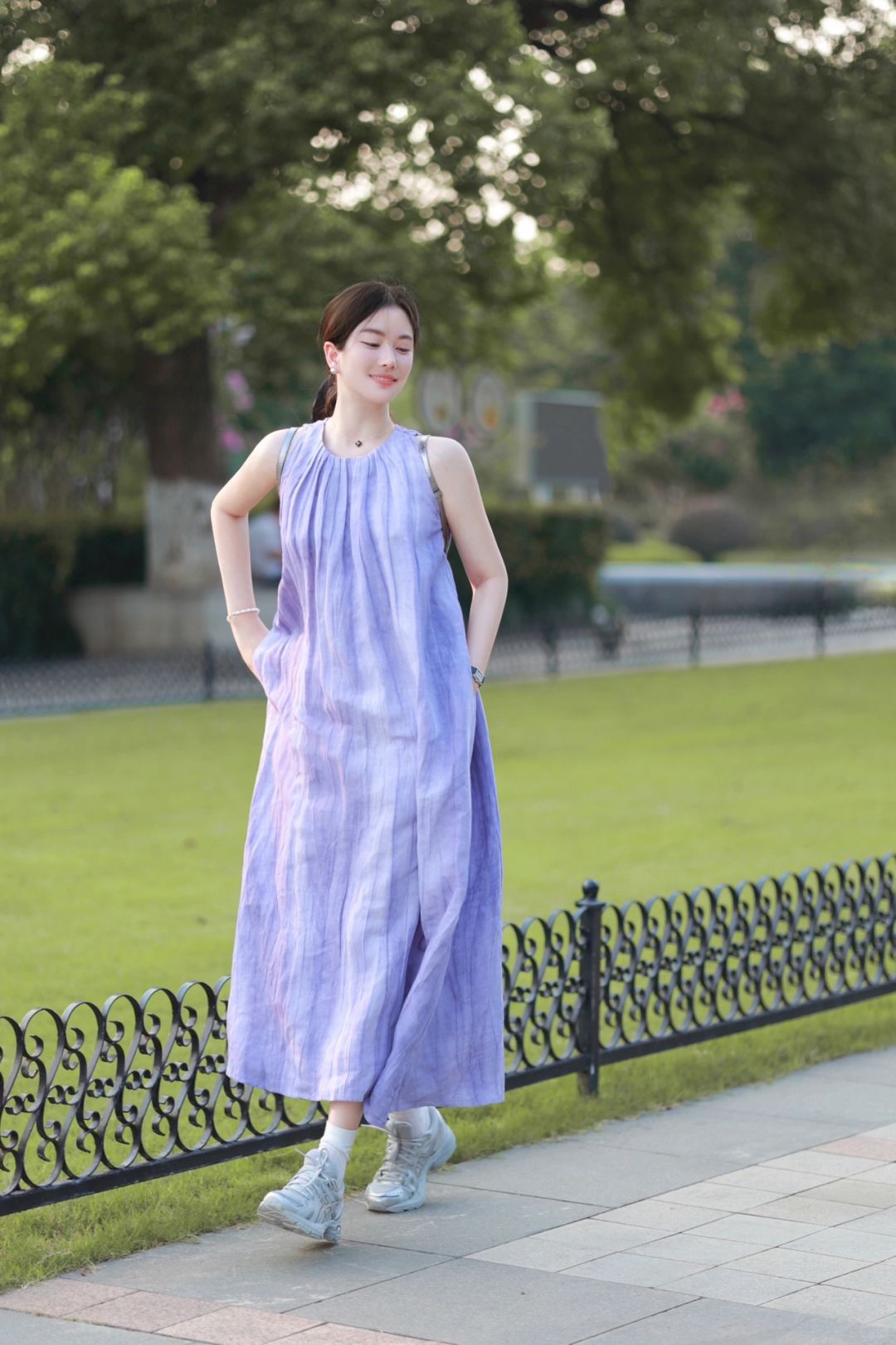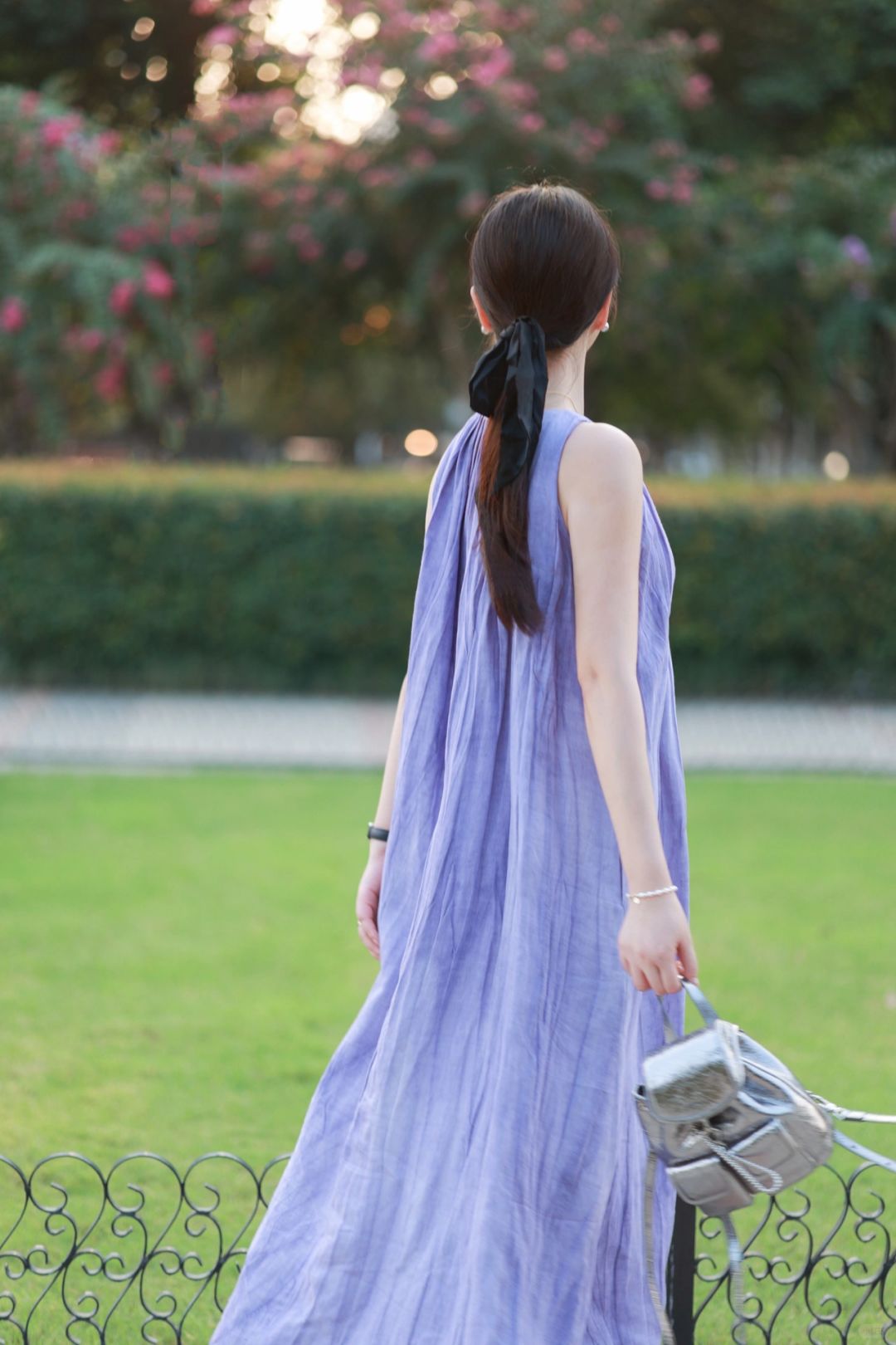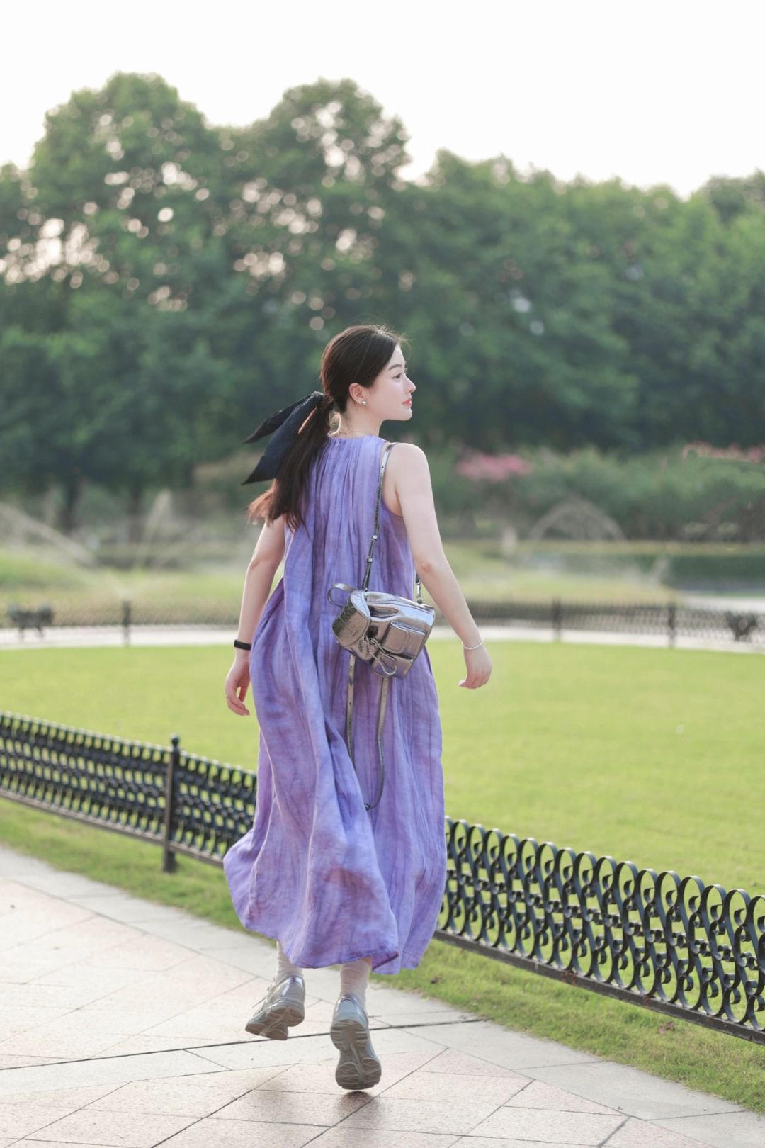 💜超喜欢这件梦幻的薰衣草紫裙,仿佛把薰衣草穿上身,搭一双灰色球鞋和一个灰色双肩包,准备舒舒服服过黄金周♨️