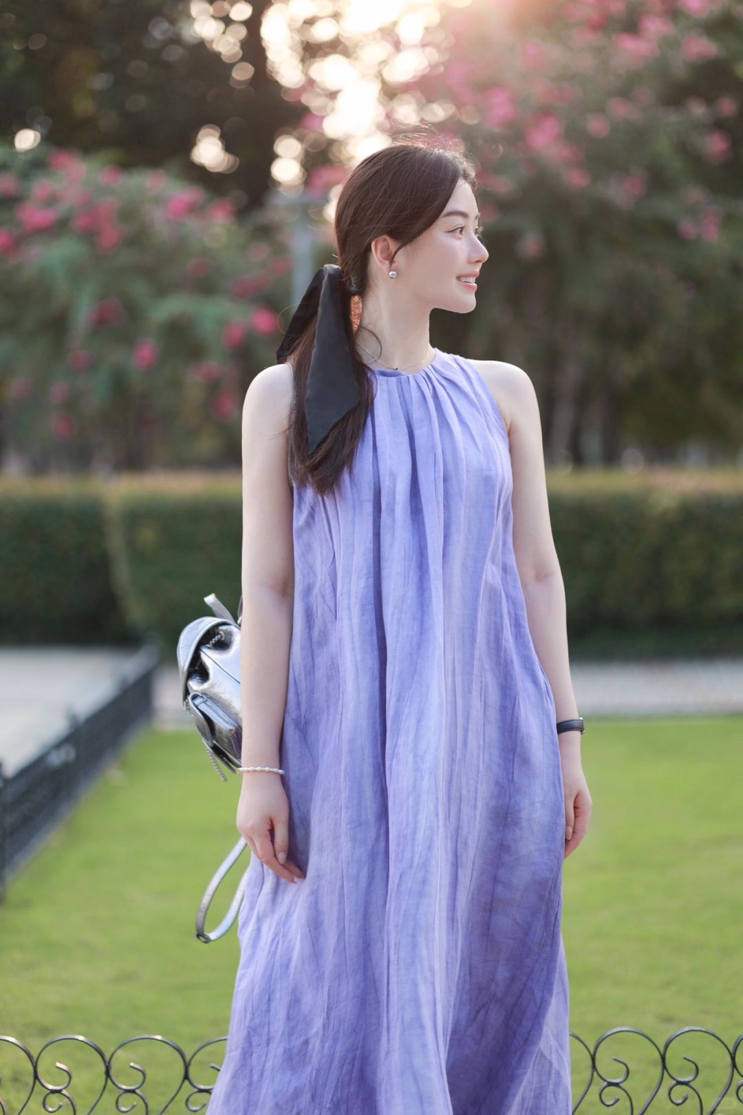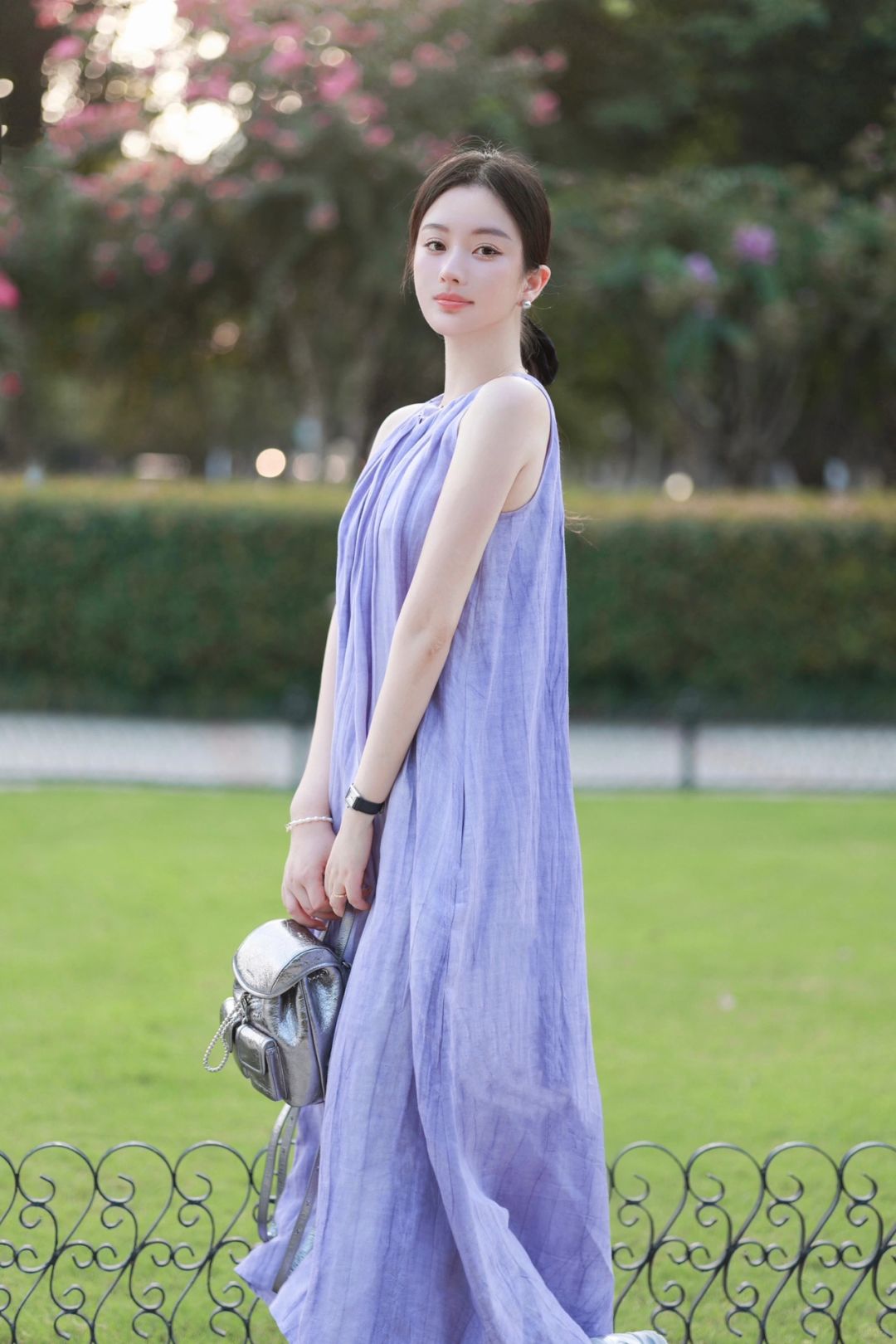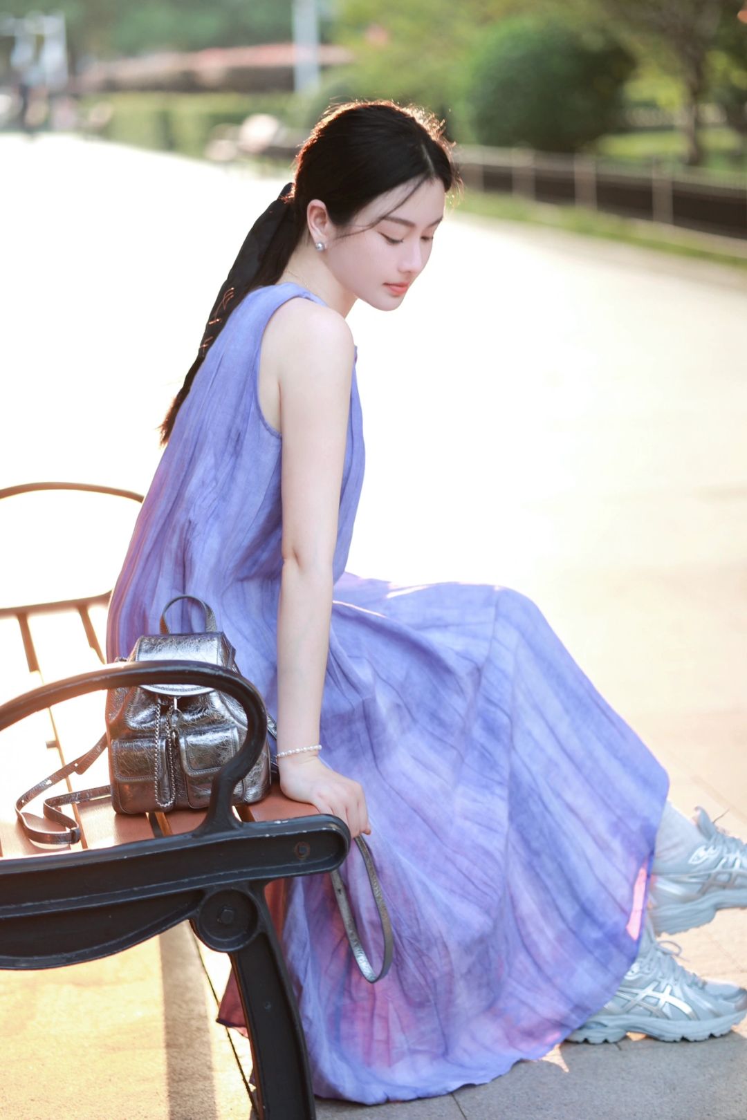 💜超喜欢这件梦幻的薰衣草紫裙,仿佛把薰衣草穿上身,搭一双灰色球鞋和一个灰色双肩包,准备舒舒服服过黄金周♨️