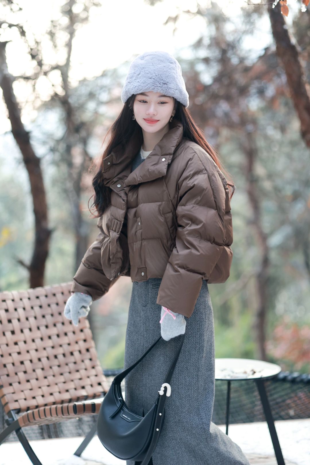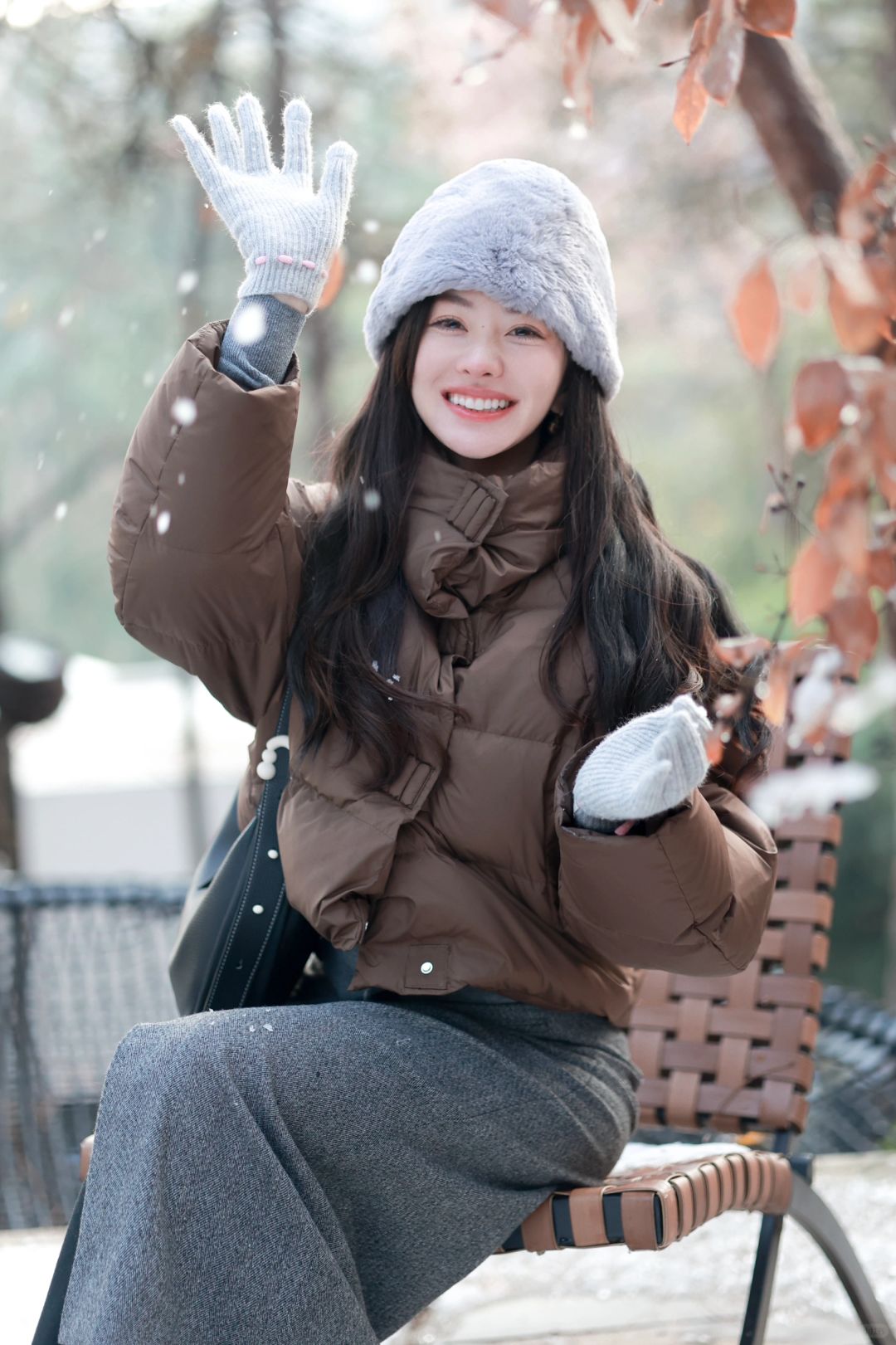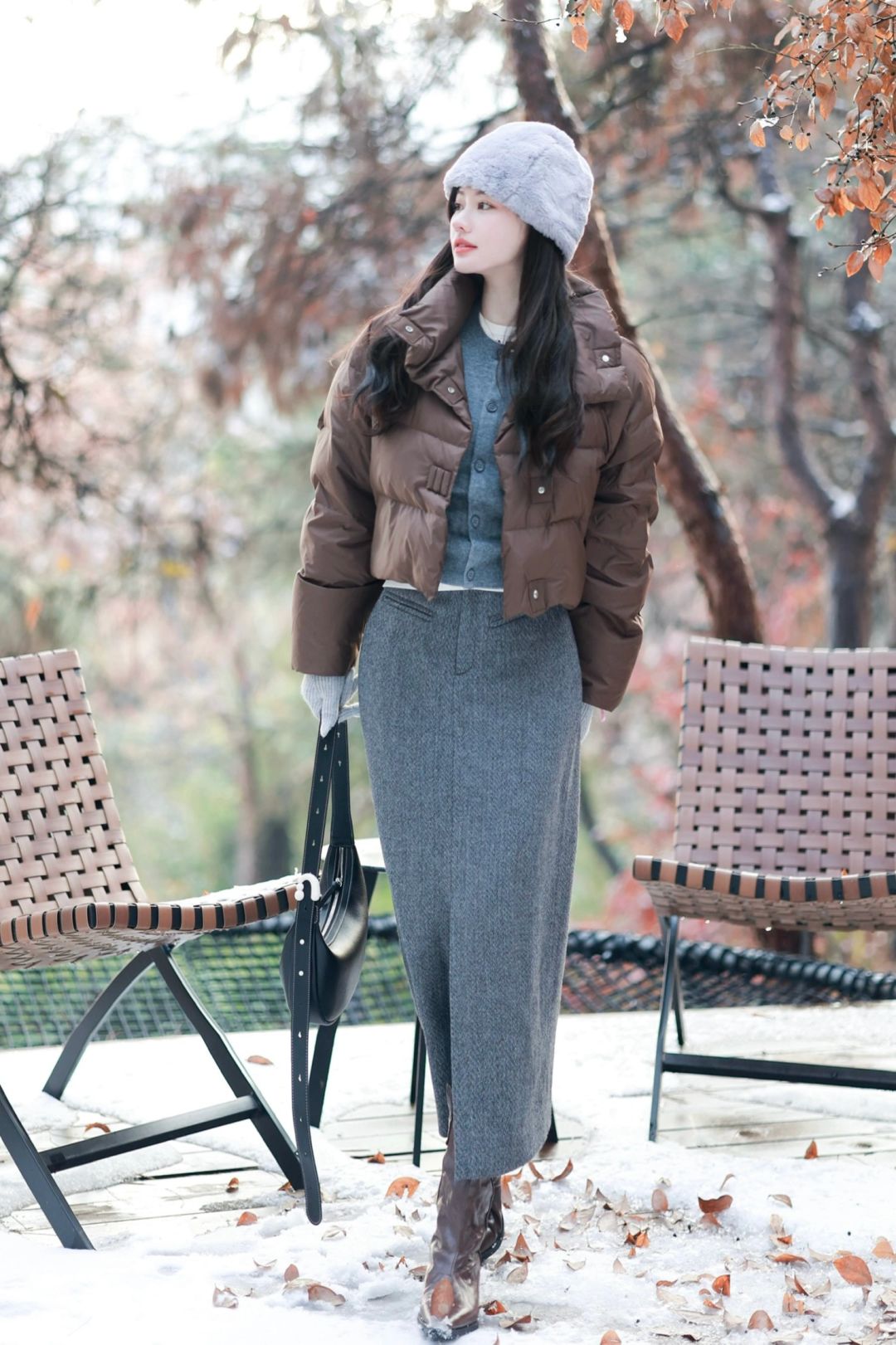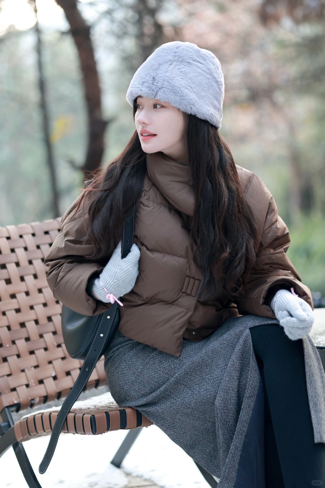 沉迷grey灰色系叠穿不能自拔,外搭一件美拉德棕短羽绒服,包裹得严实又美丽,误闯一片雪山🏔️天空之境。