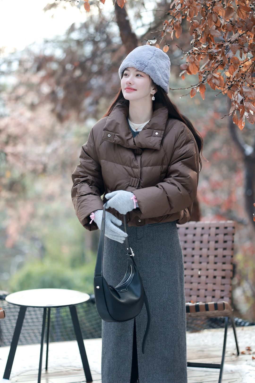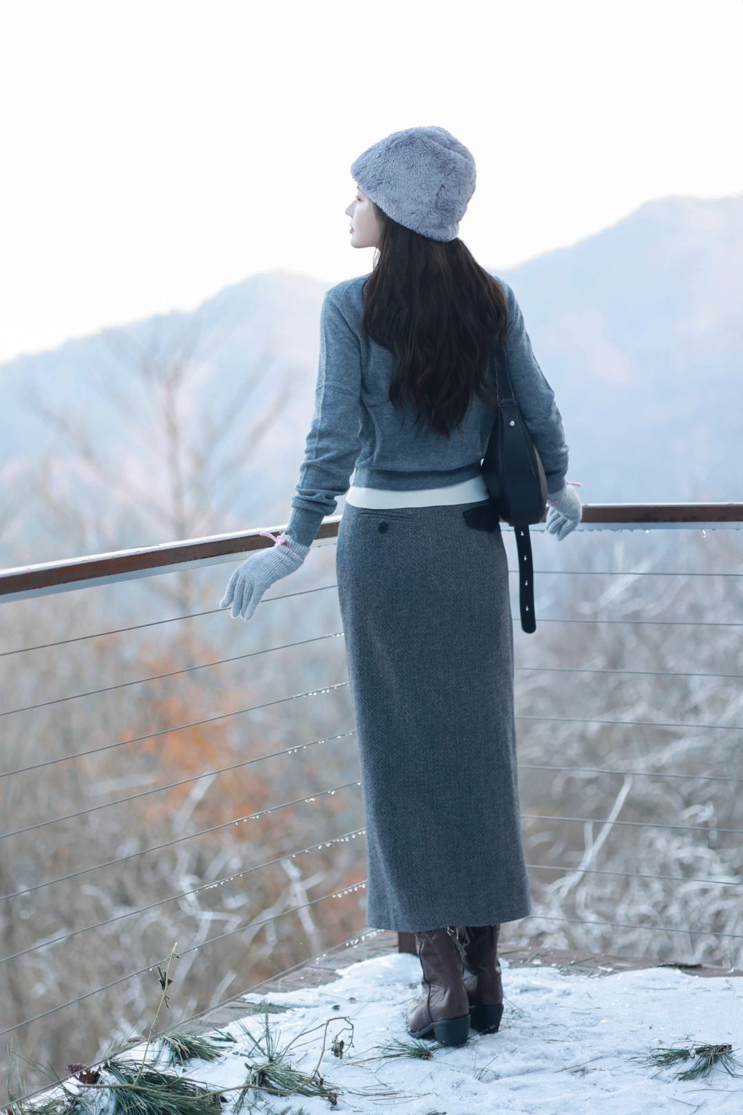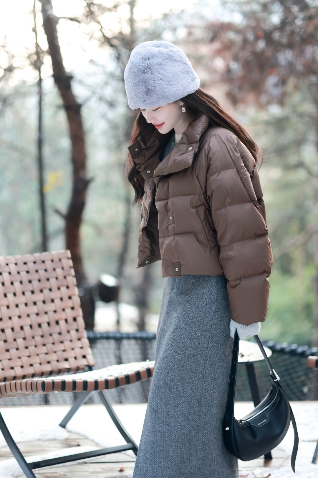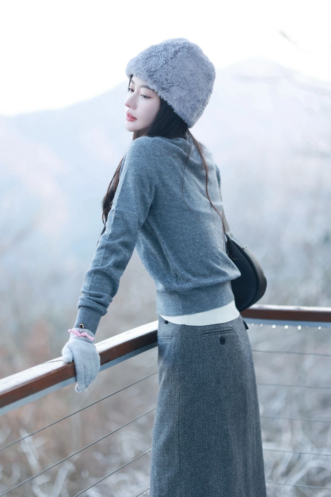 沉迷grey灰色系叠穿不能自拔,外搭一件美拉德棕短羽绒服,包裹得严实又美丽,误闯一片雪山🏔️天空之境。