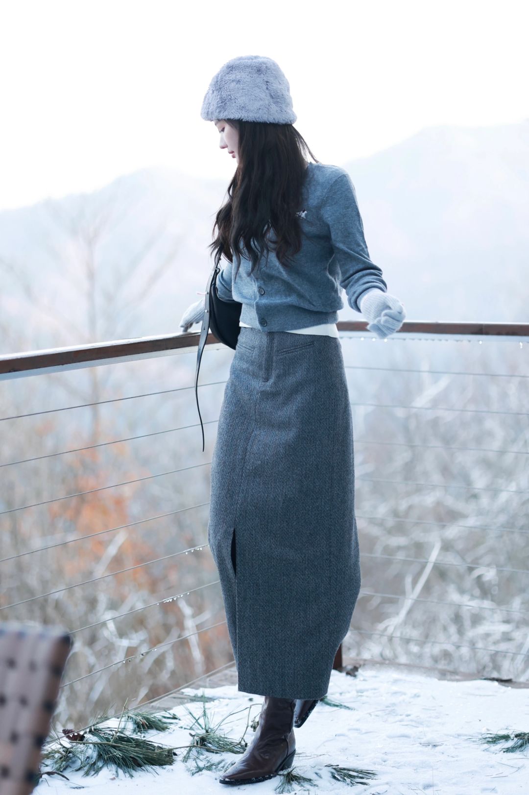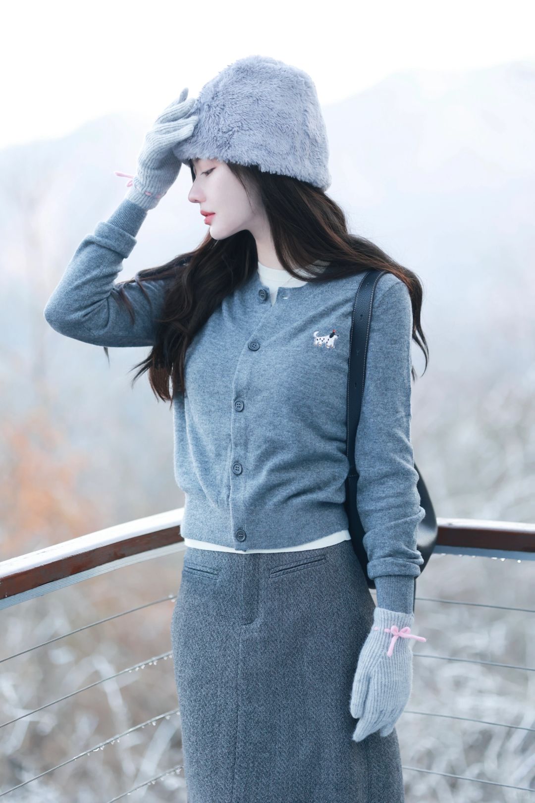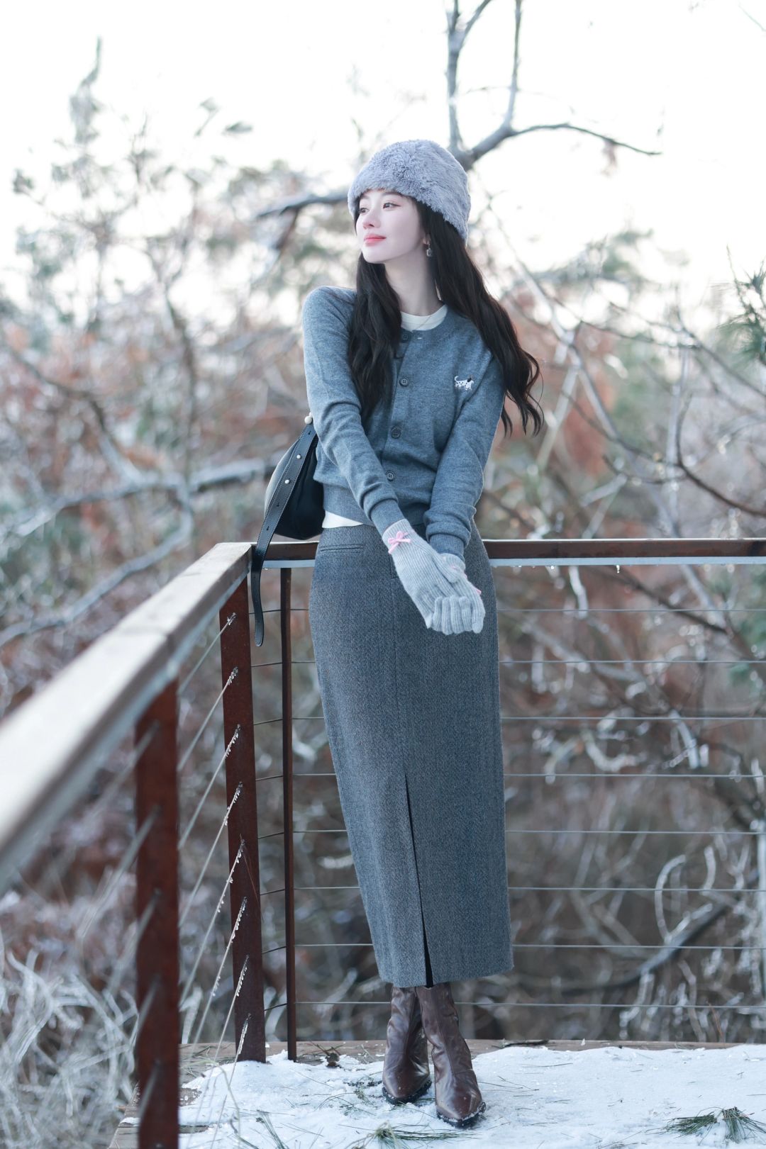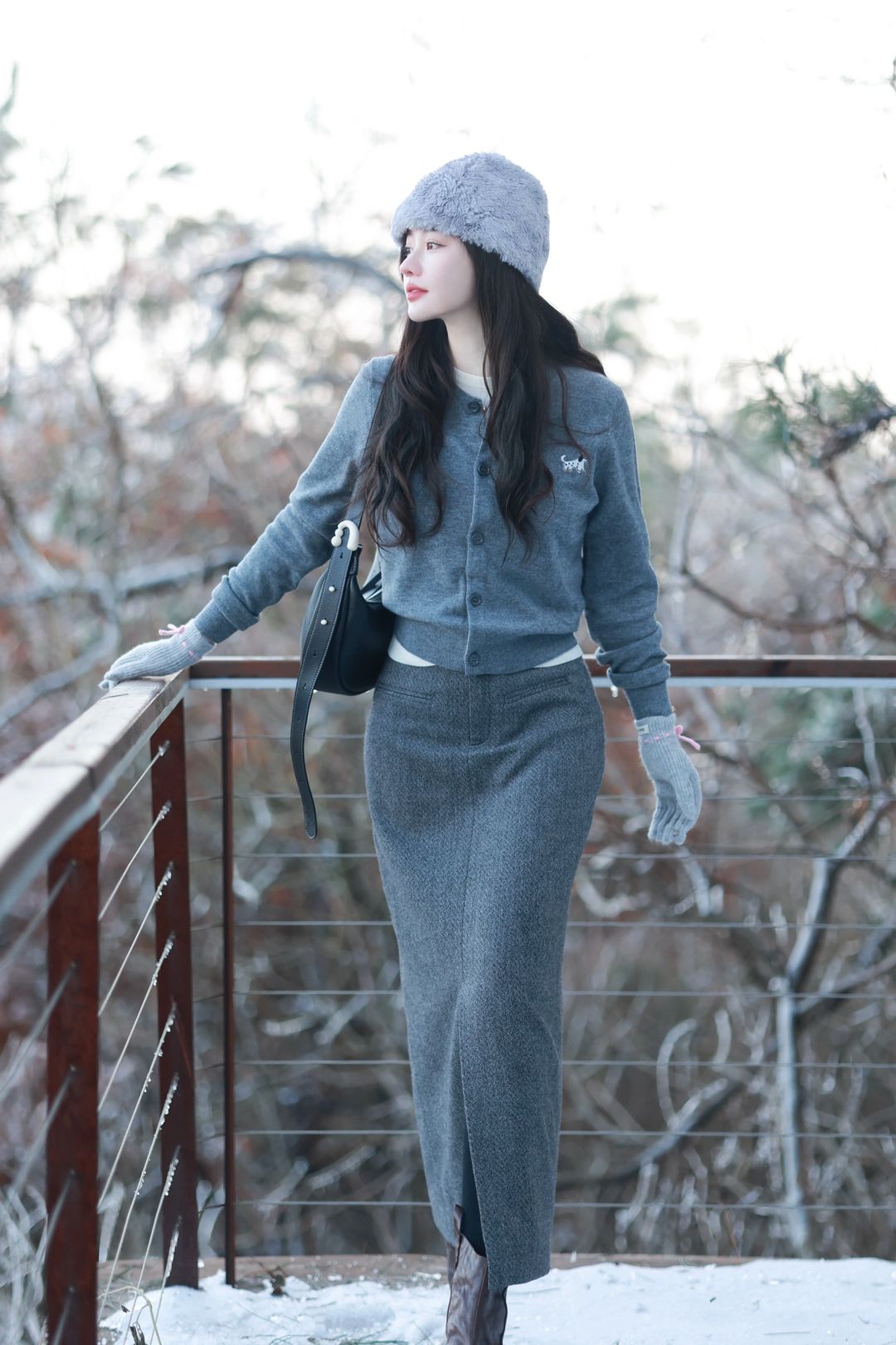 沉迷grey灰色系叠穿不能自拔,外搭一件美拉德棕短羽绒服,包裹得严实又美丽,误闯一片雪山🏔️天空之境。