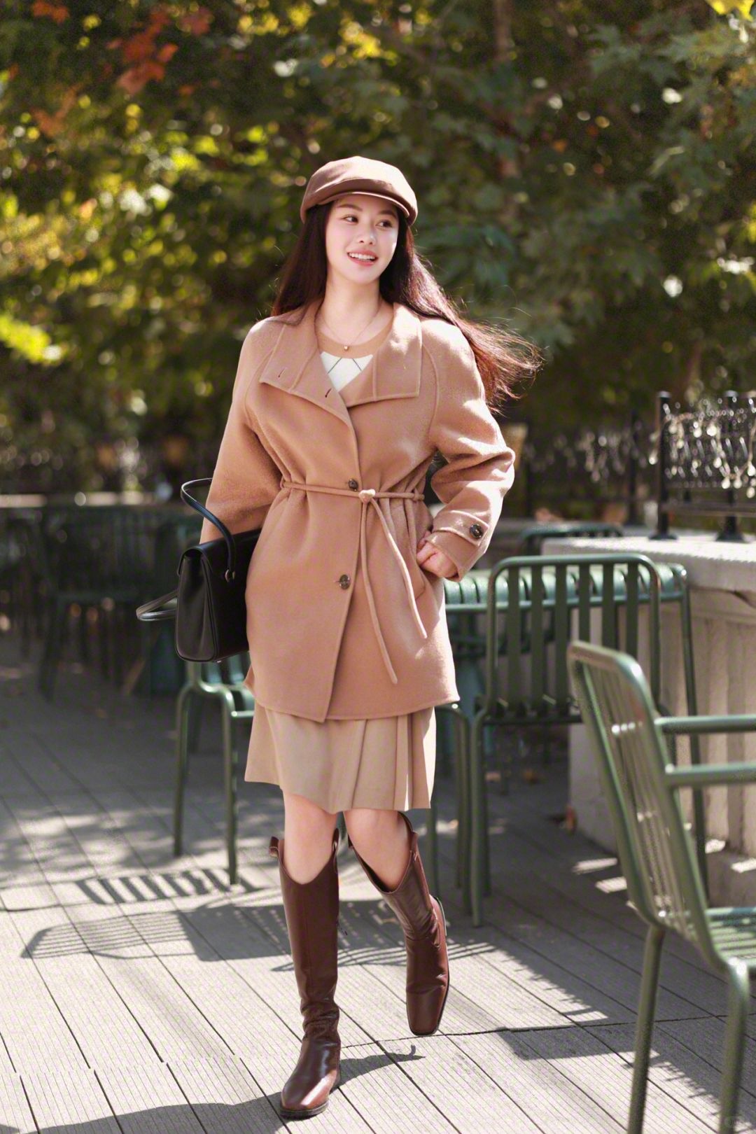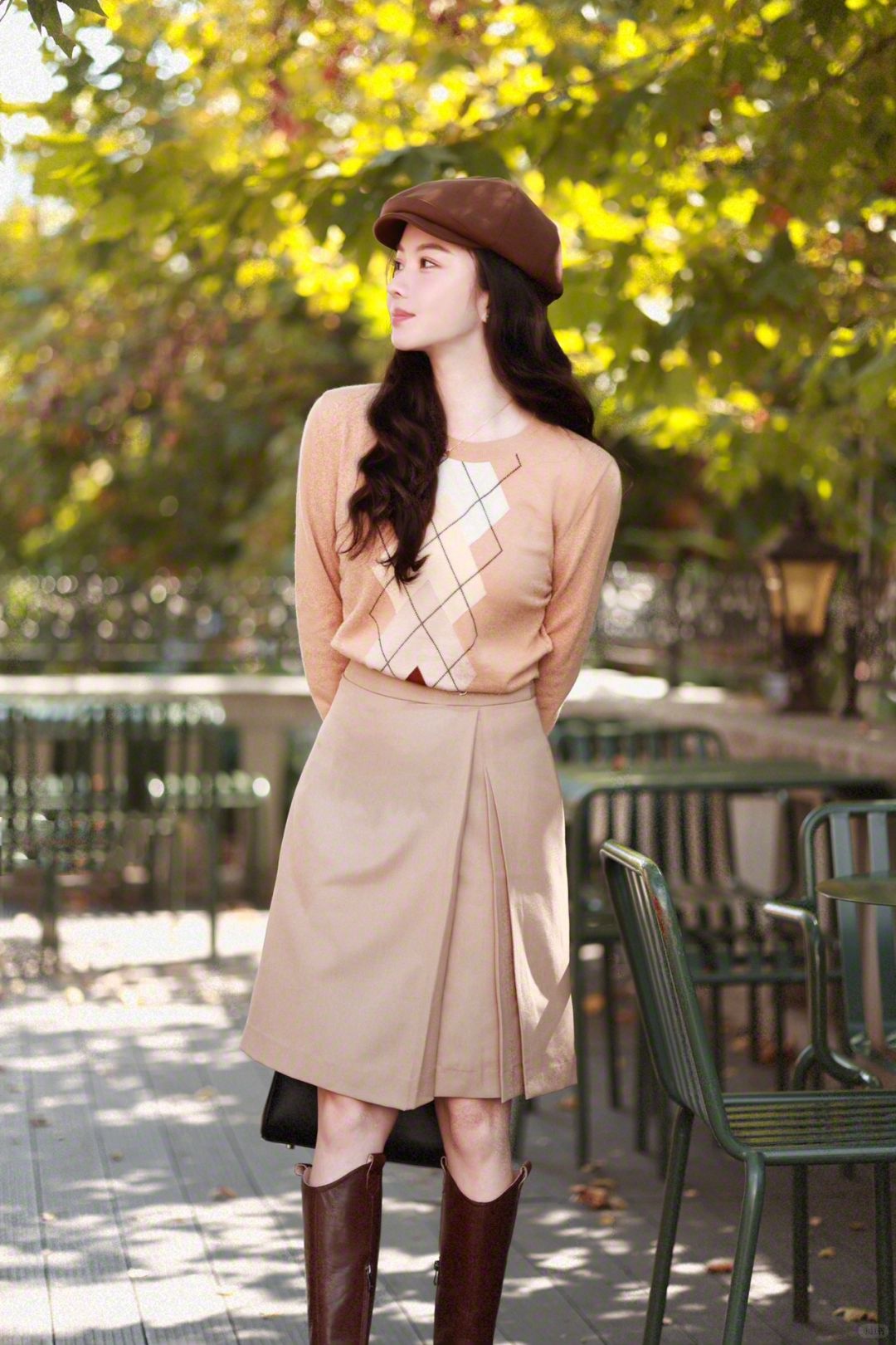 一身美拉德色系,复刻今年秀场最火热的格纹与学院风叠穿,走在秋日的街道上别有一番日剧校园气息。