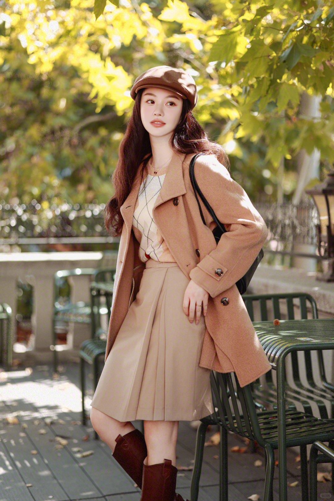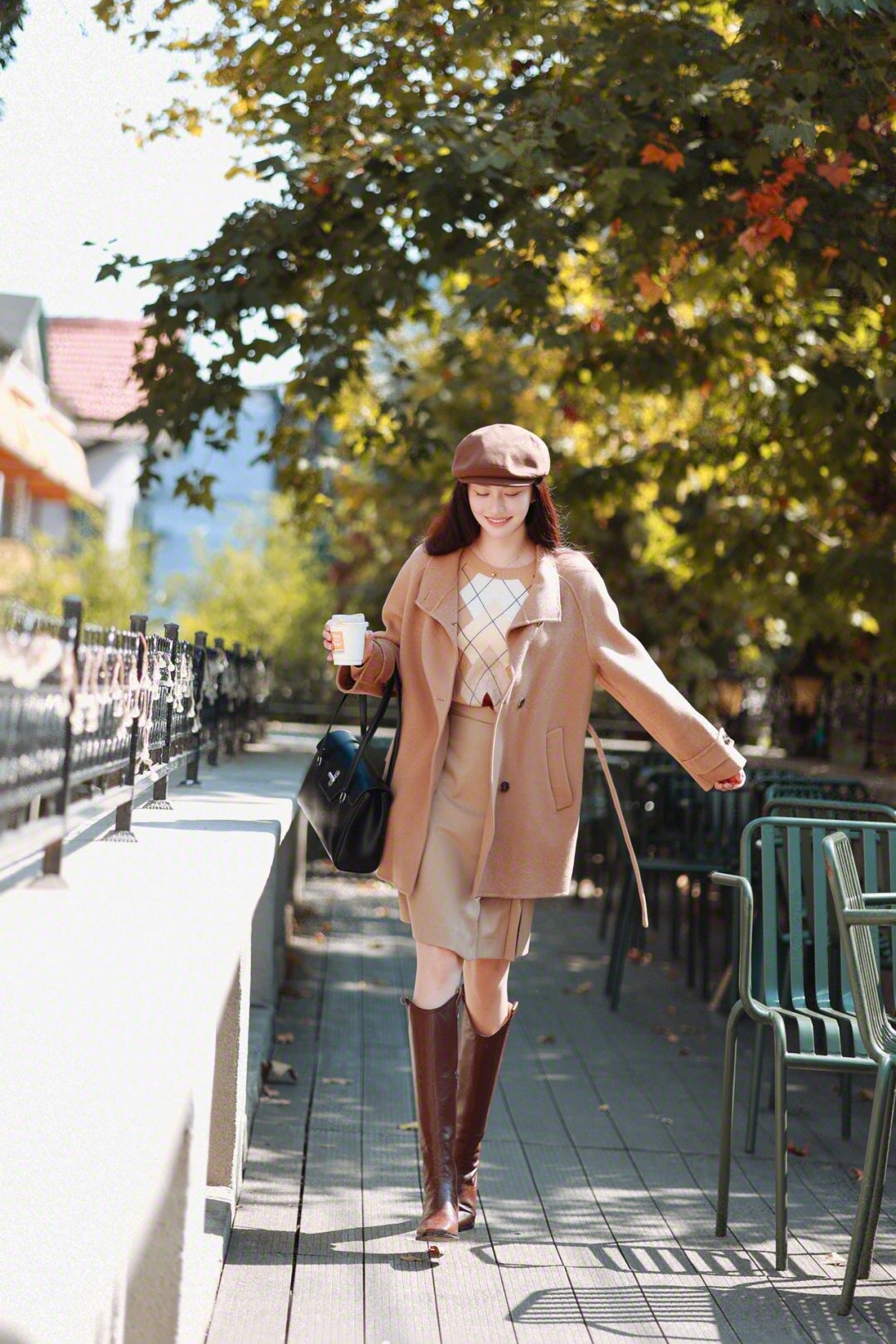 🍂我天然爱着一切属于秋天的色彩,我的棕色大衣、格纹毛衣和学院半裙全是为秋天而来。