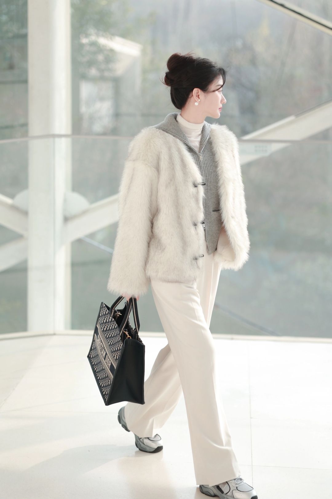 🩶这个下午的美术馆浪漫又理智,我也配合着一身灰白,灰调人造皮草里搭配一件灰色翻领毛衣与银灰老爹鞋,当一位合格的格雷系女孩。