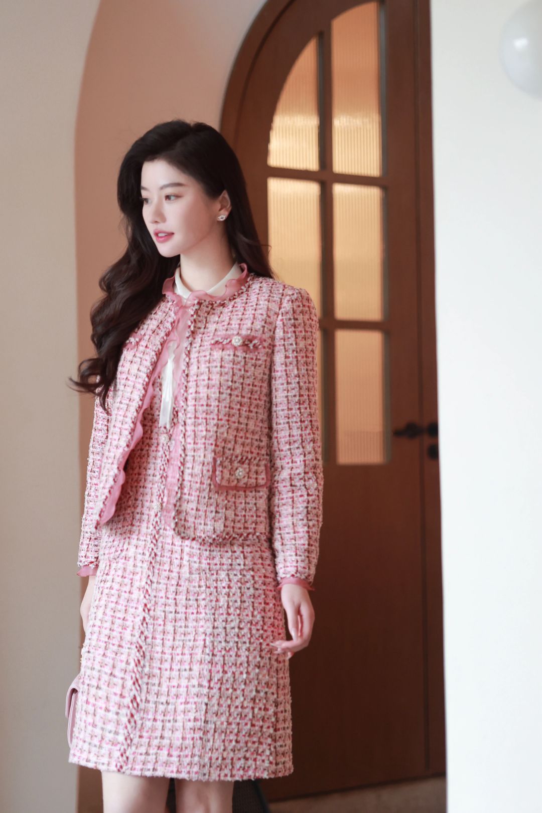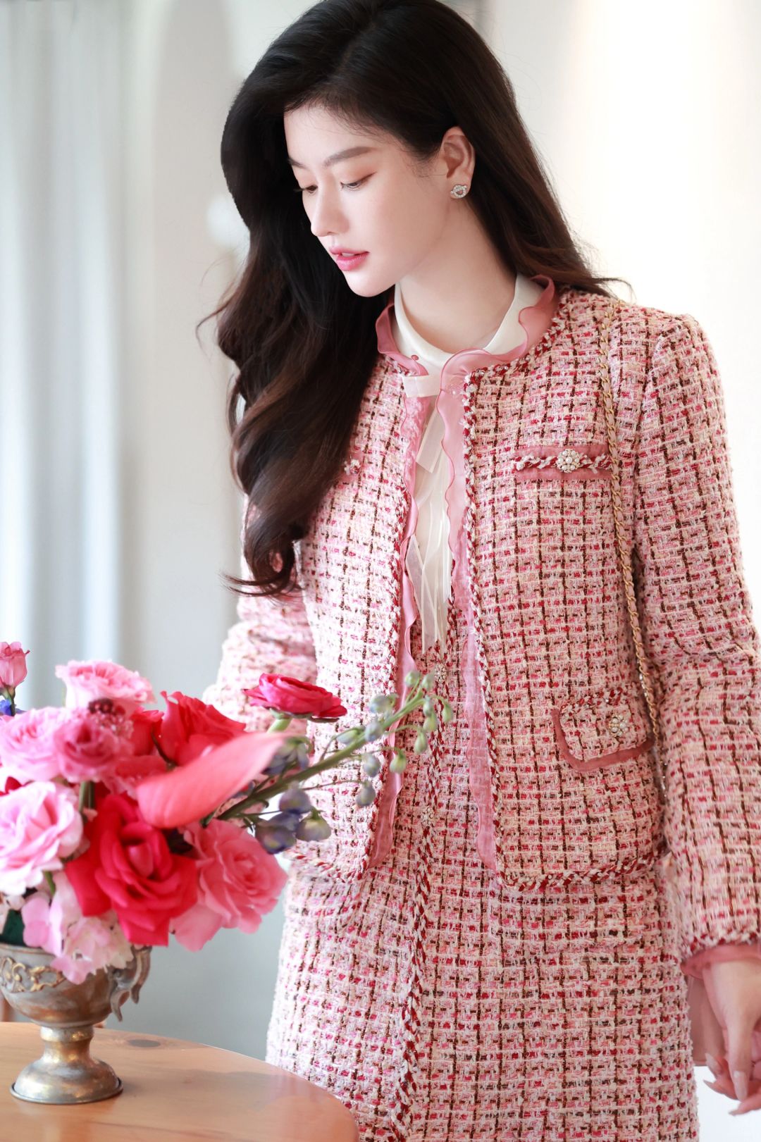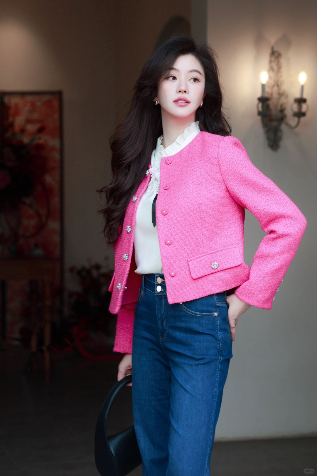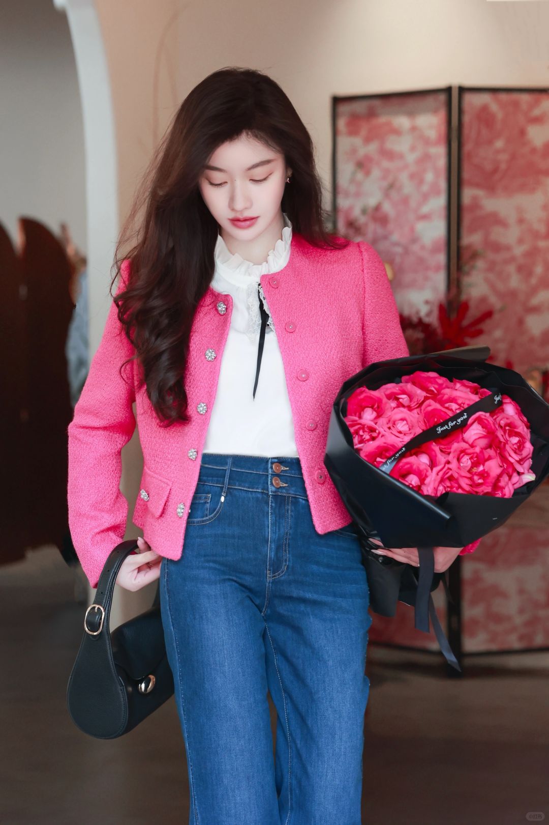 🌷当然,也喜欢在洋红里加入白色调和的蔷薇粉小香风套装,富家千金风,是我喜欢的浪漫年末氛围。