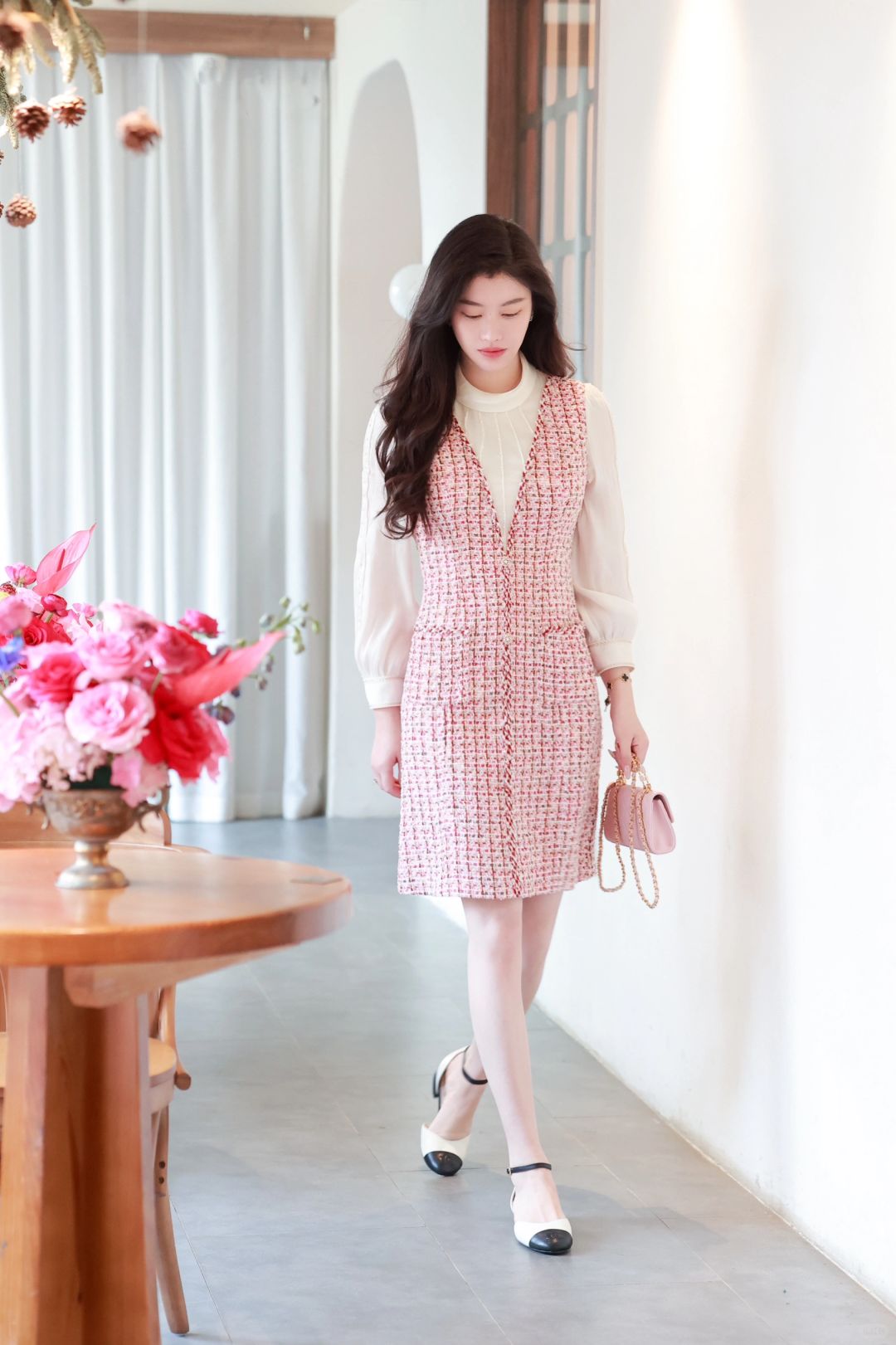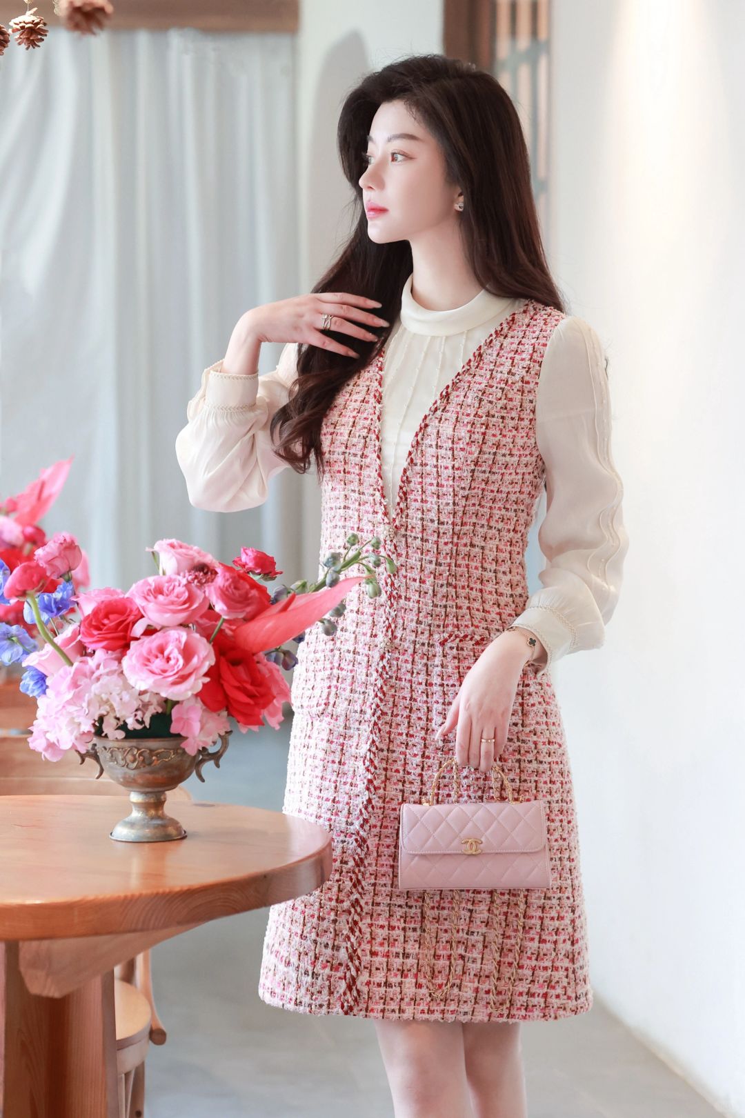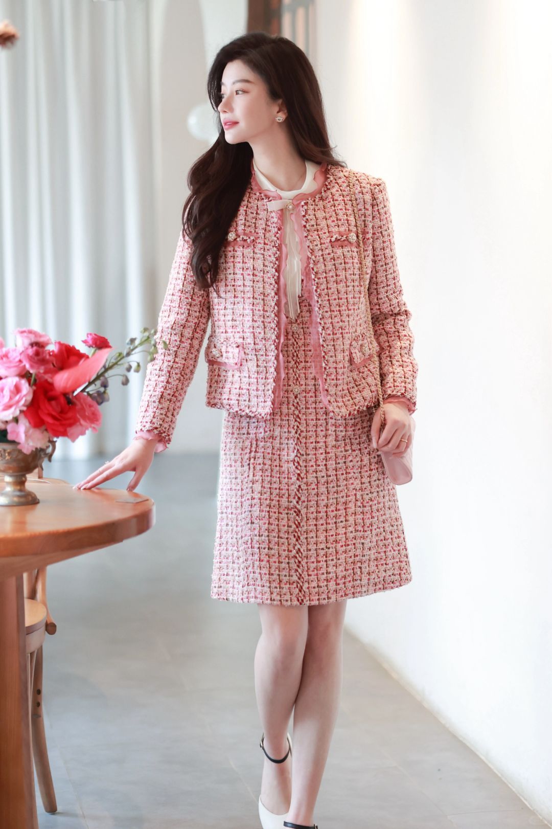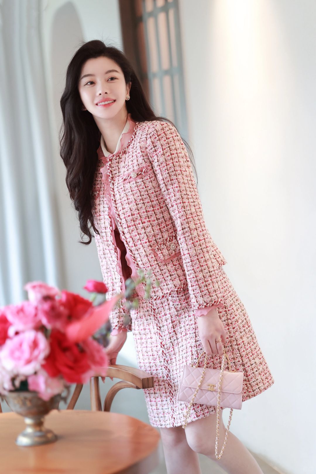🌷当然,也喜欢在洋红里加入白色调和的蔷薇粉小香风套装,富家千金风,是我喜欢的浪漫年末氛围。