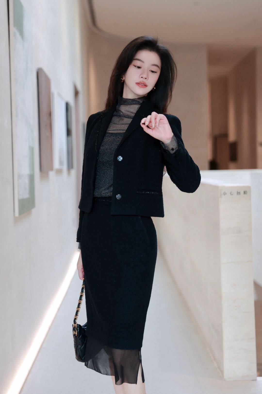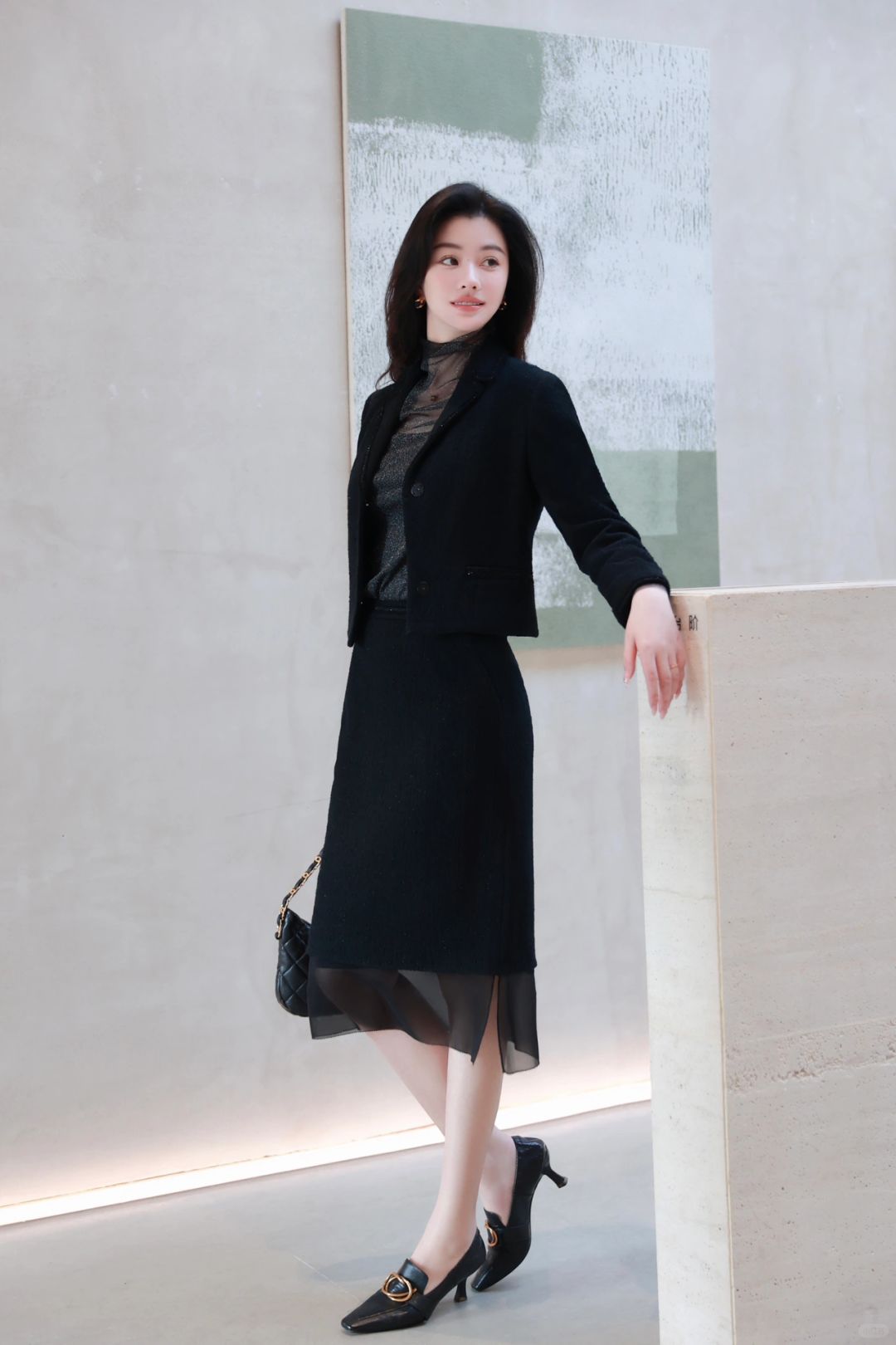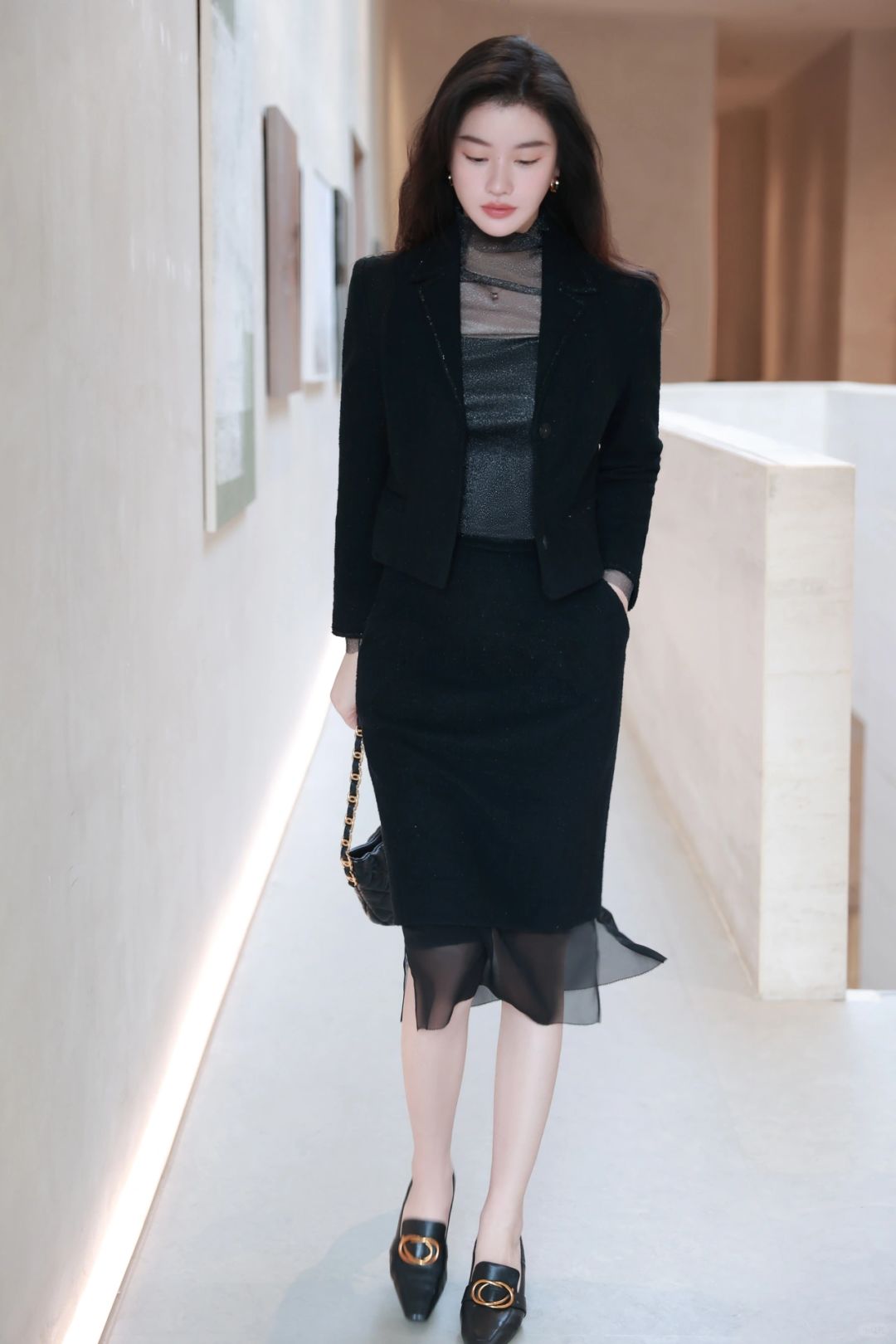 🌌短款花昵西装点缀着细细闪闪的亮片,像银河的星系