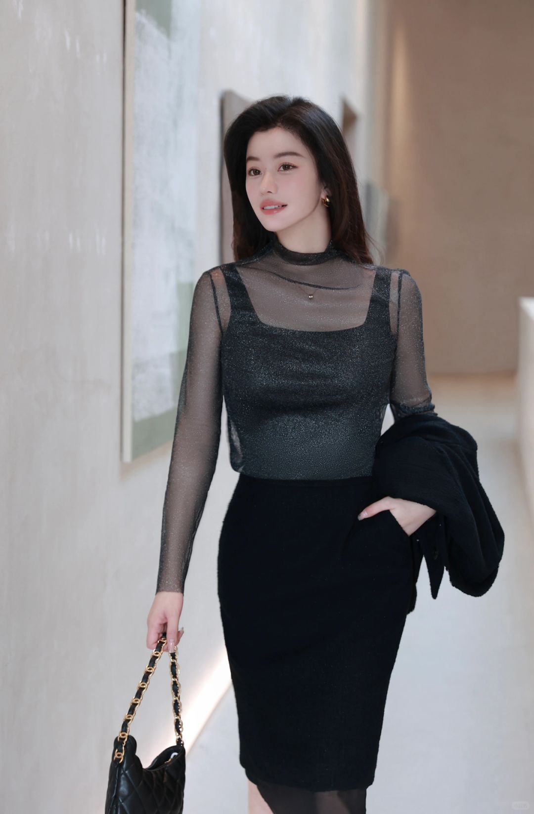 🎀半透细闪的罩衫与半裙裙摆的薄纱,飘逸灵动