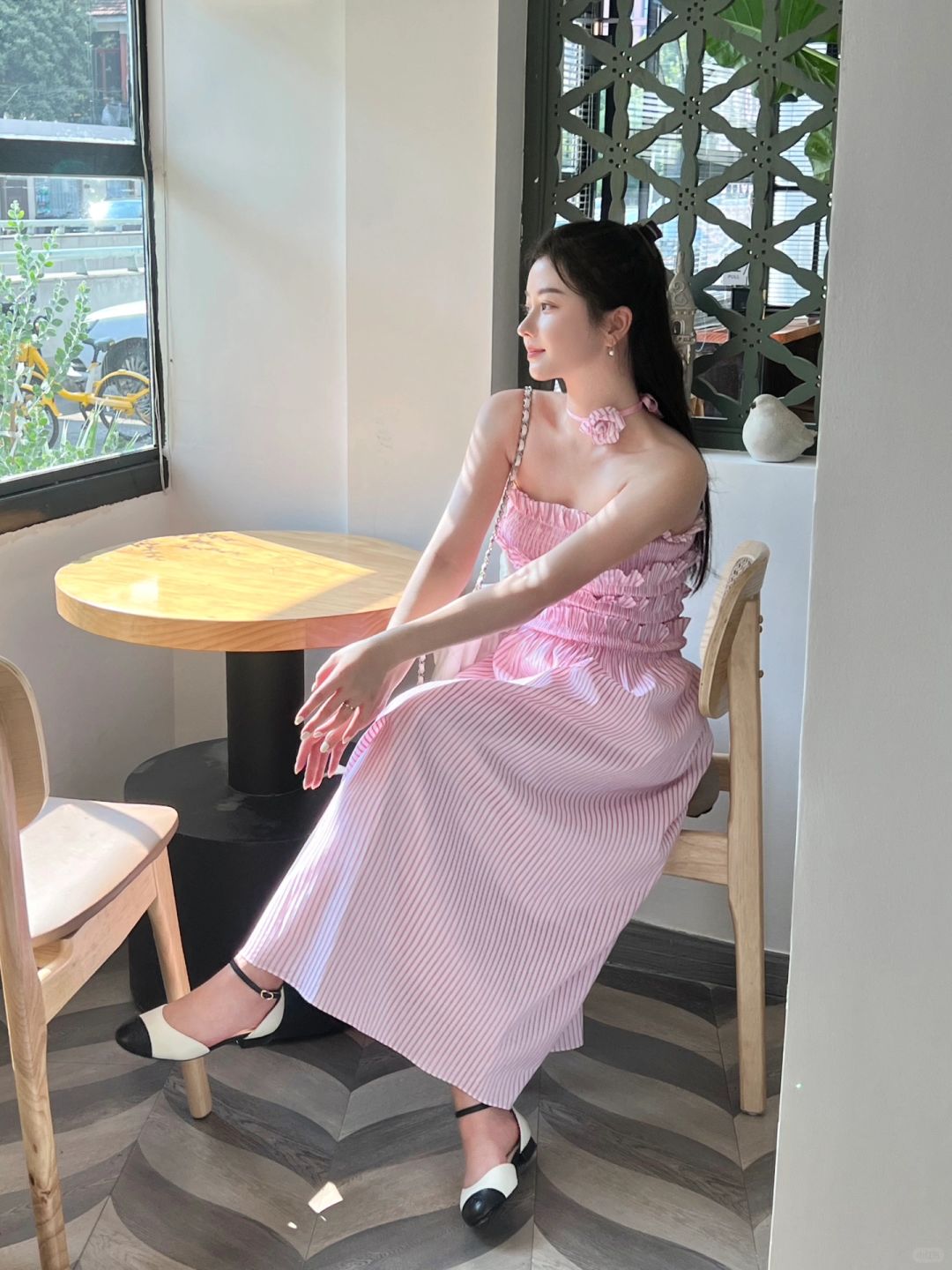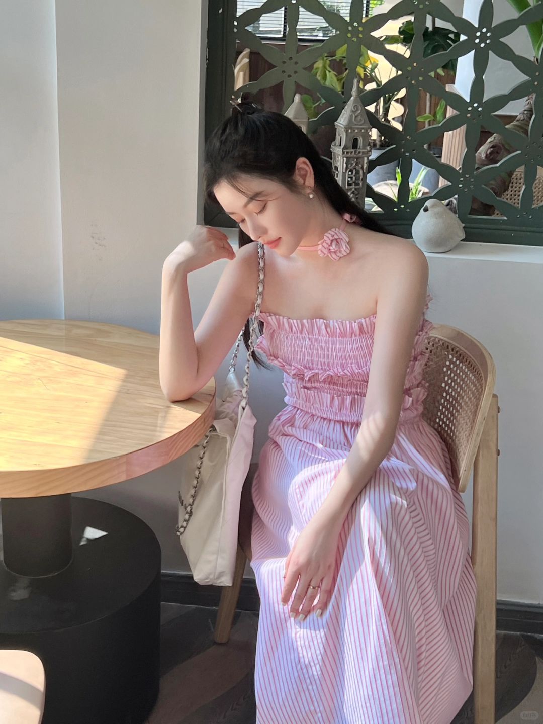再从裙摆上采撷一朵花 作成脖颈间的花朵choker