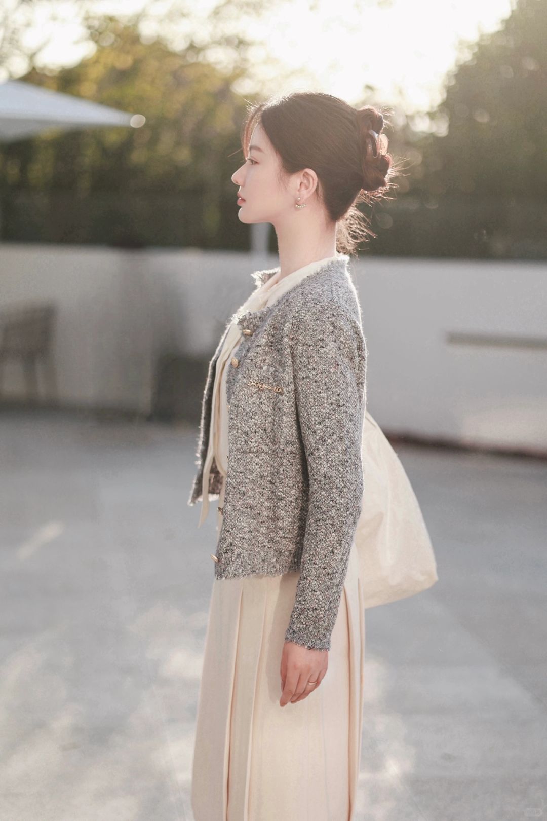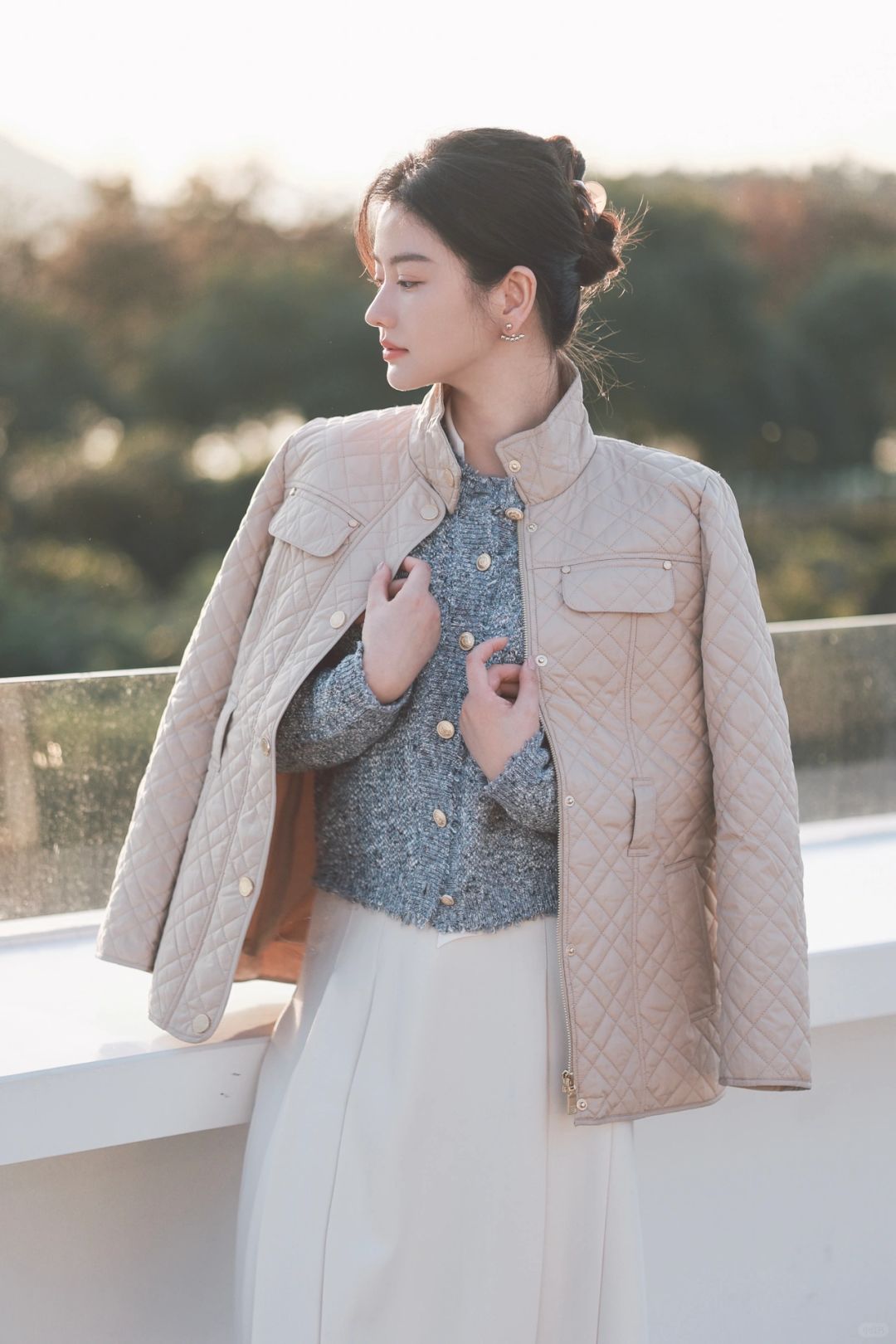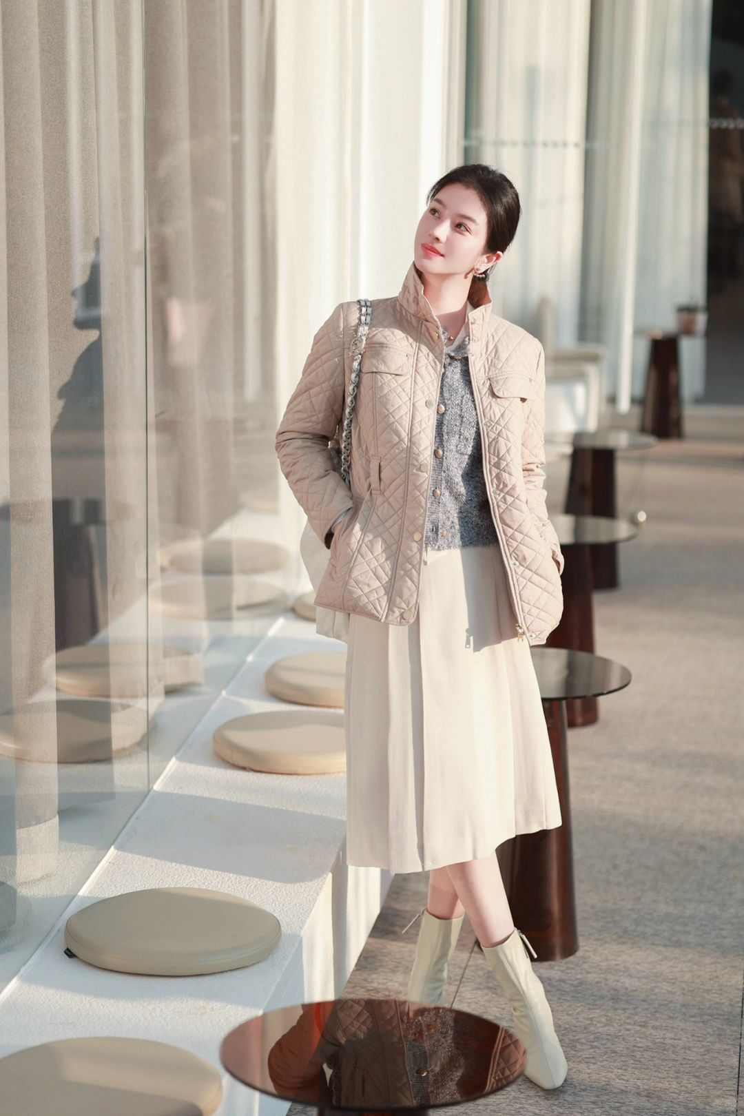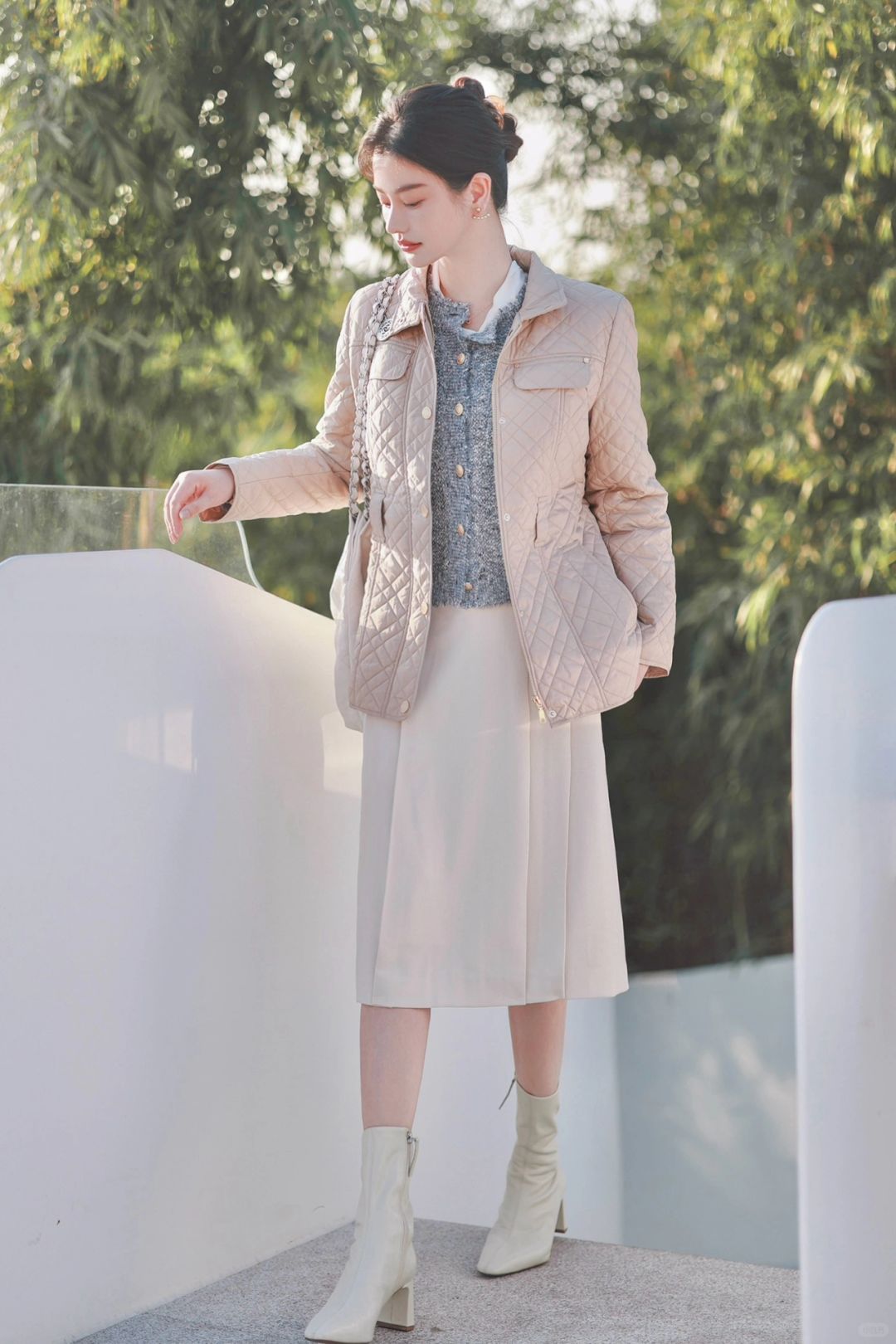 今天早早过上英伦风外套,畏冬也敬冬,衍缝格纹外套里裹着一身书卷气。内搭小香风外套与百褶裙的组合,是简单学院派也是New Vintage复古自在。