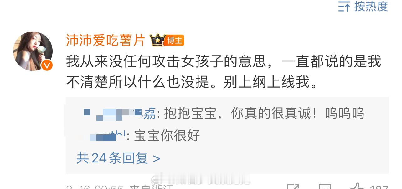 #沛沛回应滕光正#沛沛发文回应滕光正:“要是真的出于对我和节目组负责的态度你多线发展的时候怎么不跟我说?不想继续了怎么不跟我说?要返场的时候说,演唱会上热搜了再说。至于7.4为什么我跟你说这些,不是因为你觉得我蹭你热度吗男嘉宾?到现在也没讲过一句对不起,可笑。 ”#沛沛发文回应滕光正#