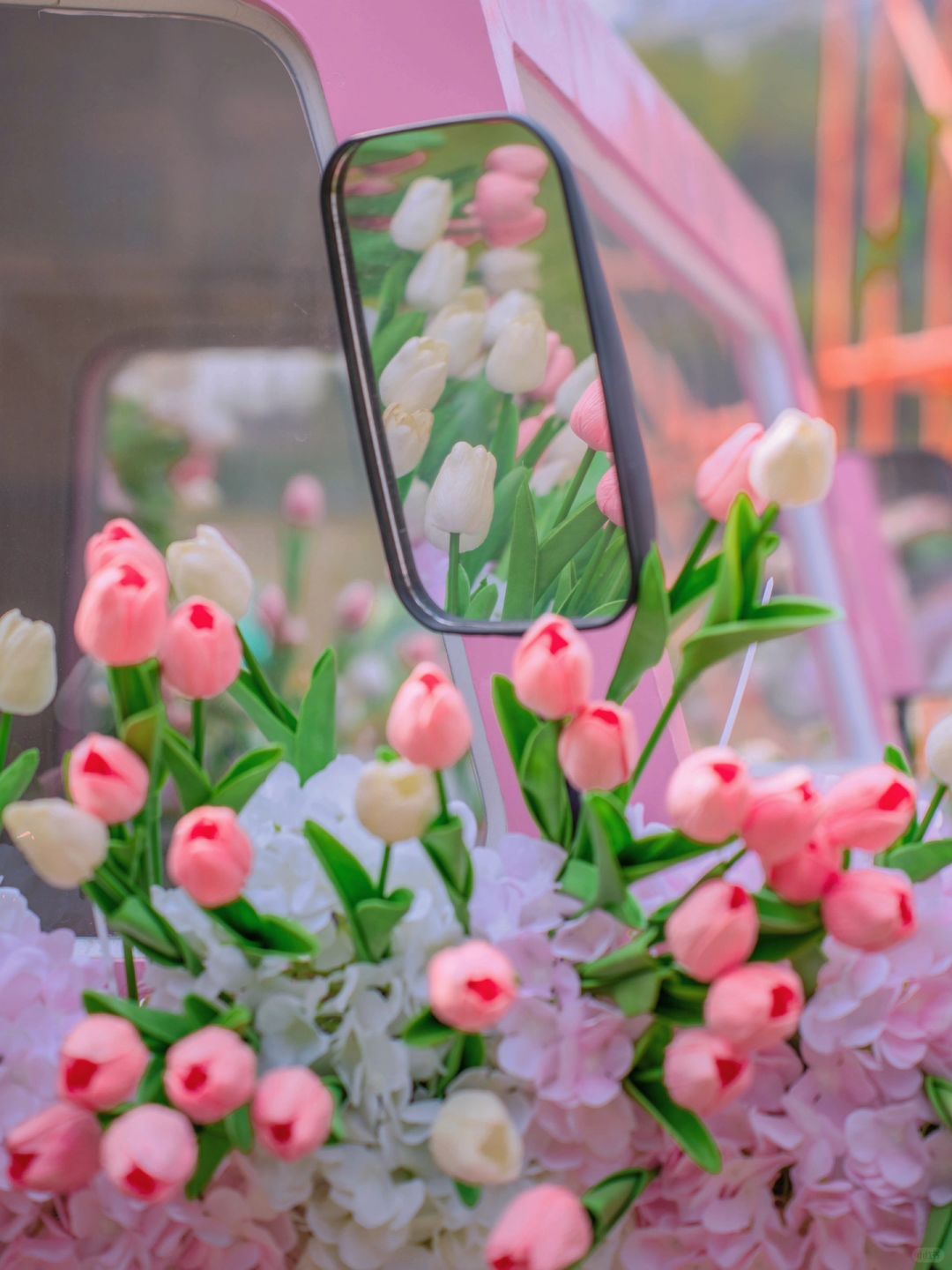 这里有成片的郁金香花海还有风车,郁金香开的正好,也不用人挤人,而且郁金香花车太美了,怎么拍都好好看!
