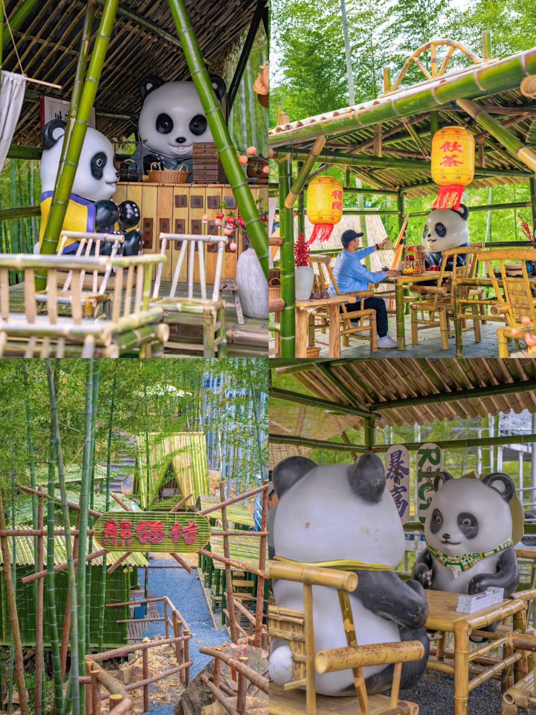 萌宠乐园►熊猫上山►熊猫村落►竹林穿越►大蹦床►威亚飞人►竹间漂流/天路飞车►郁金香花海►竹林咖啡
