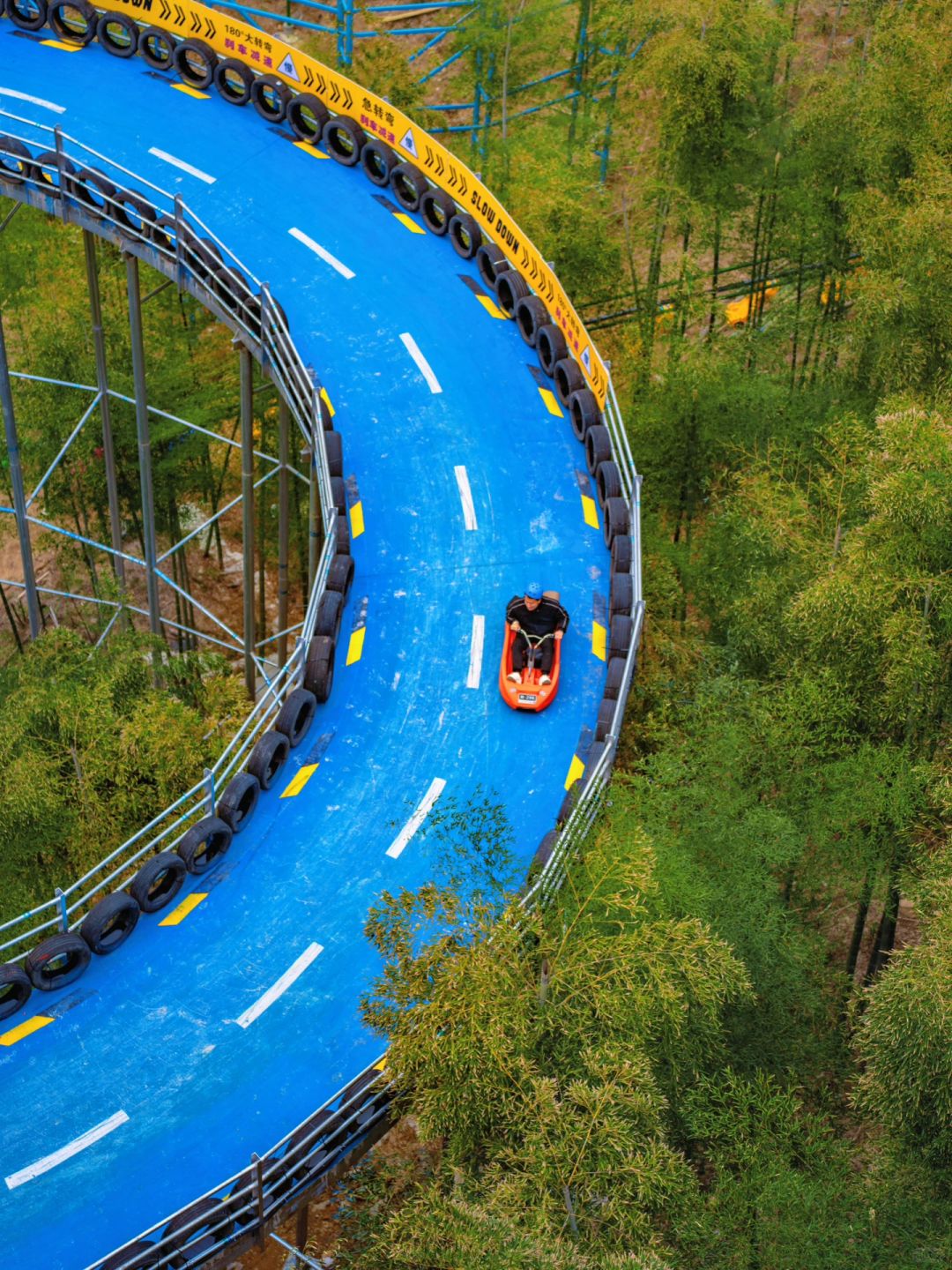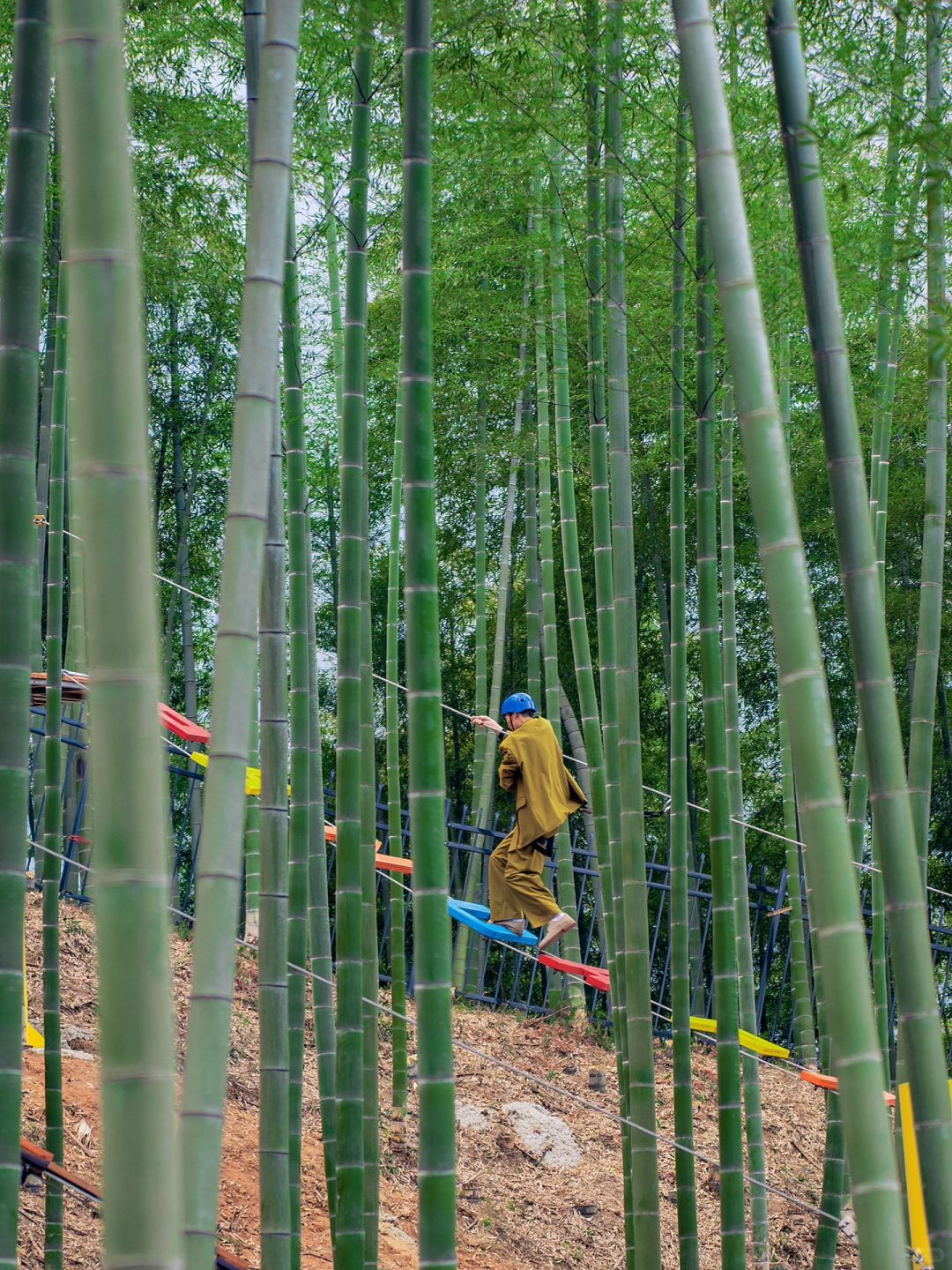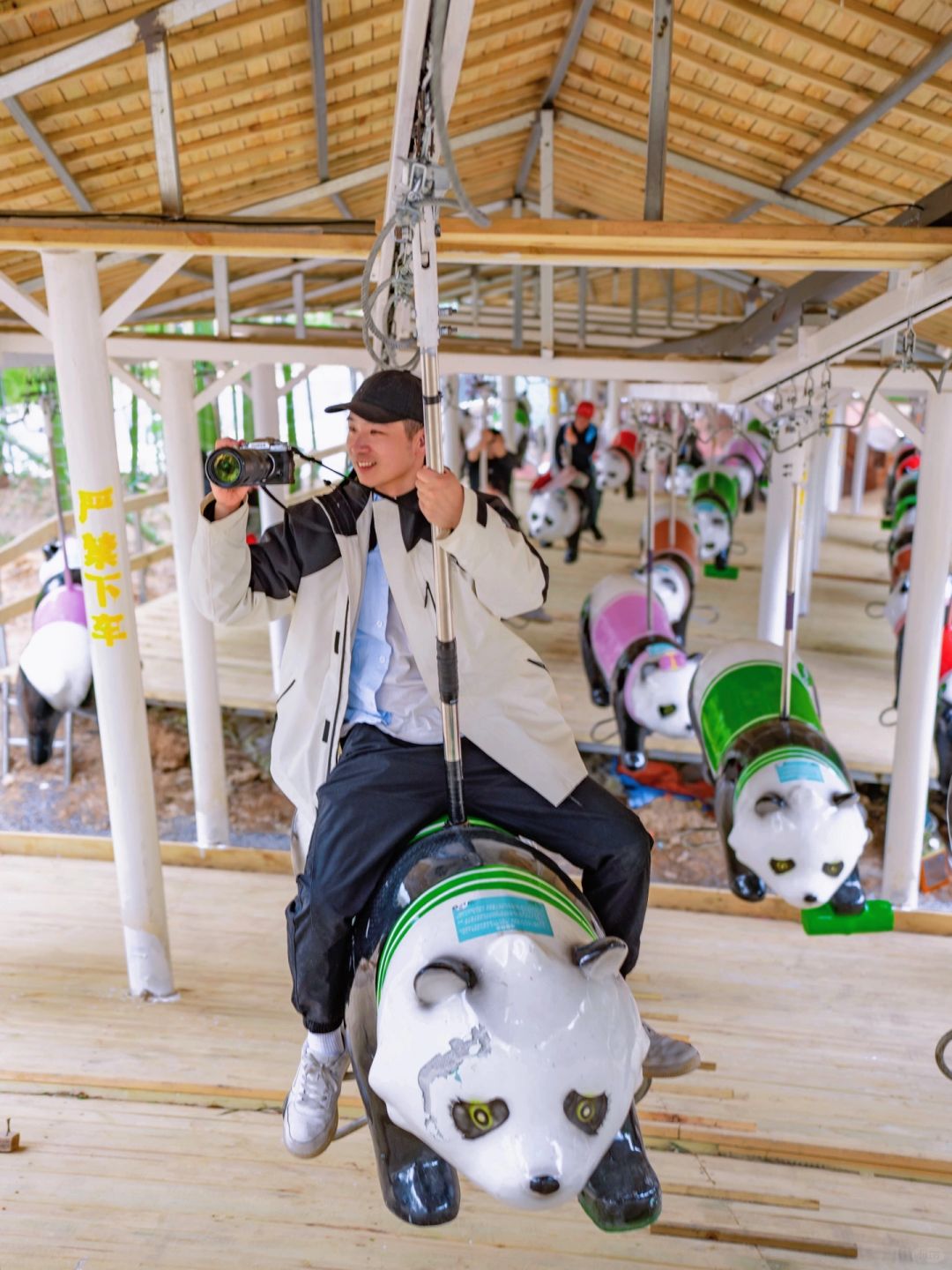 不用爬山,就可坐上憨憨的熊猫坐椅穿越竹海~