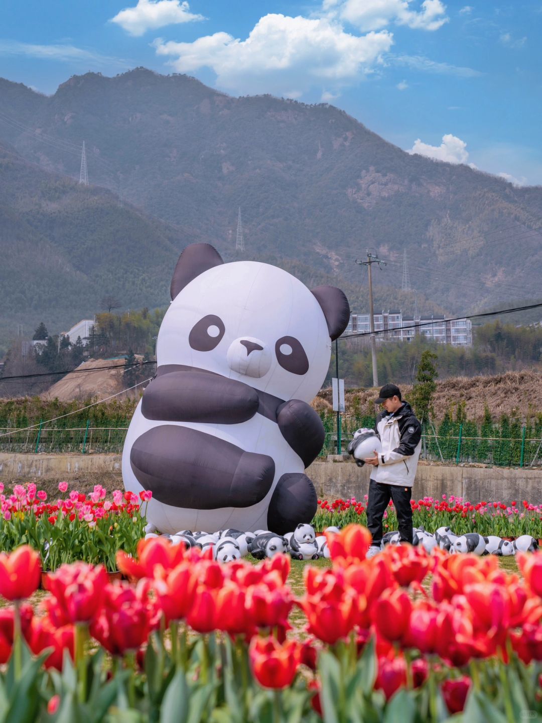 随处可见圆滚滚的大熊猫,居然摸到了“熊猫”,赏郁金香也不用人挤人了~