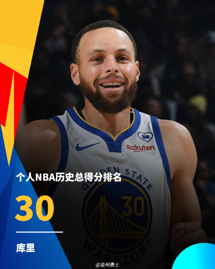 库里在NBA总得分排行榜上超越罗伯特-帕里什,排名第30位;