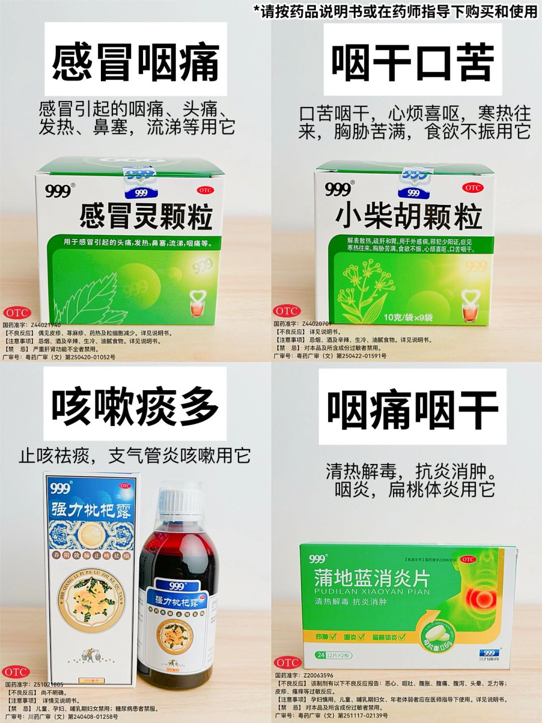 这四款药基本感冒引起的多种症状都可以覆盖到。
