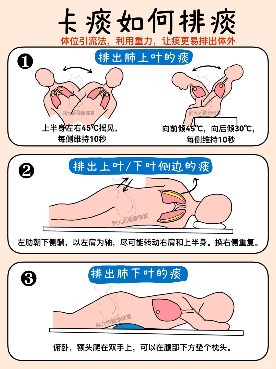给大家分享个排痰「体位引流法」(图5️⃣),这个方法适合肺部堆积粘痰,很长时间排不出的情况。