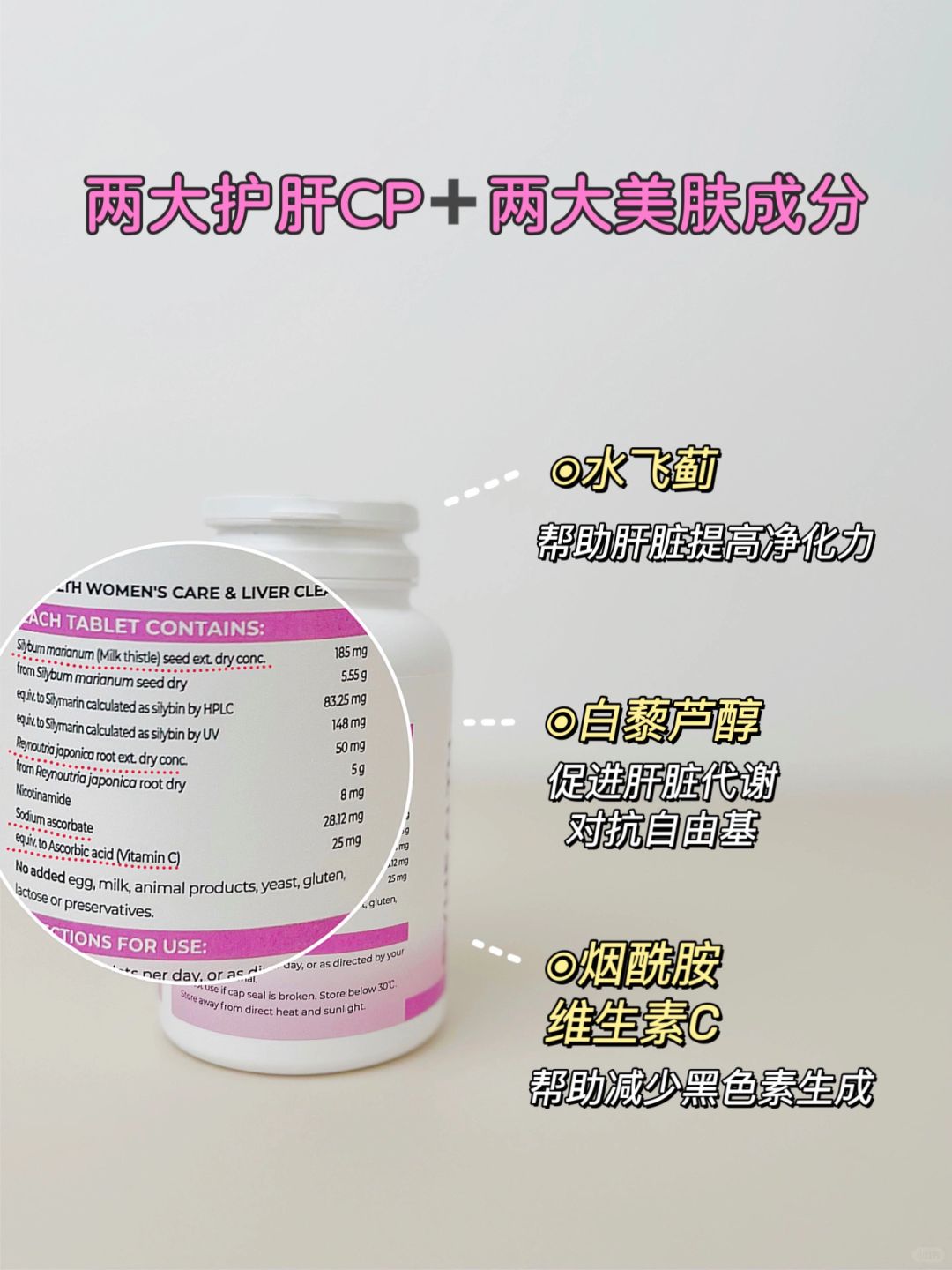 两大护肝CP+两大美肤成分可以说是里应外合,内外兼修,护肝的同时又养气色:
