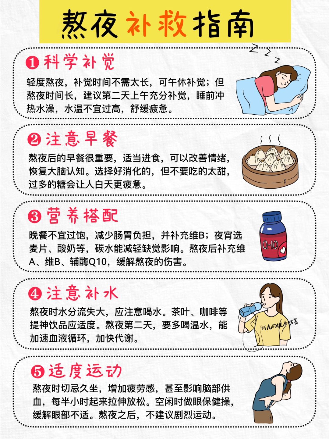 熬了大夜后,身体会产生大量有害的自由基,为了对抗自由基及其他有害物质,身体消耗了大量的水分和营养素,所以熬夜后,要及时进行补充,特别是抗氧化及清除自由基的食物及营养补剂。