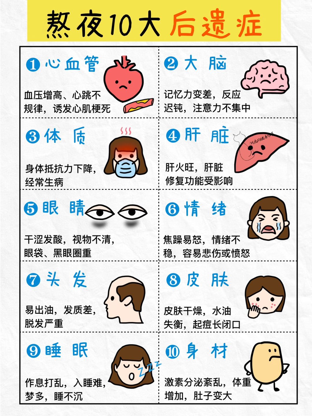 除了心脏外,熬夜对身体的损伤是持续性的: