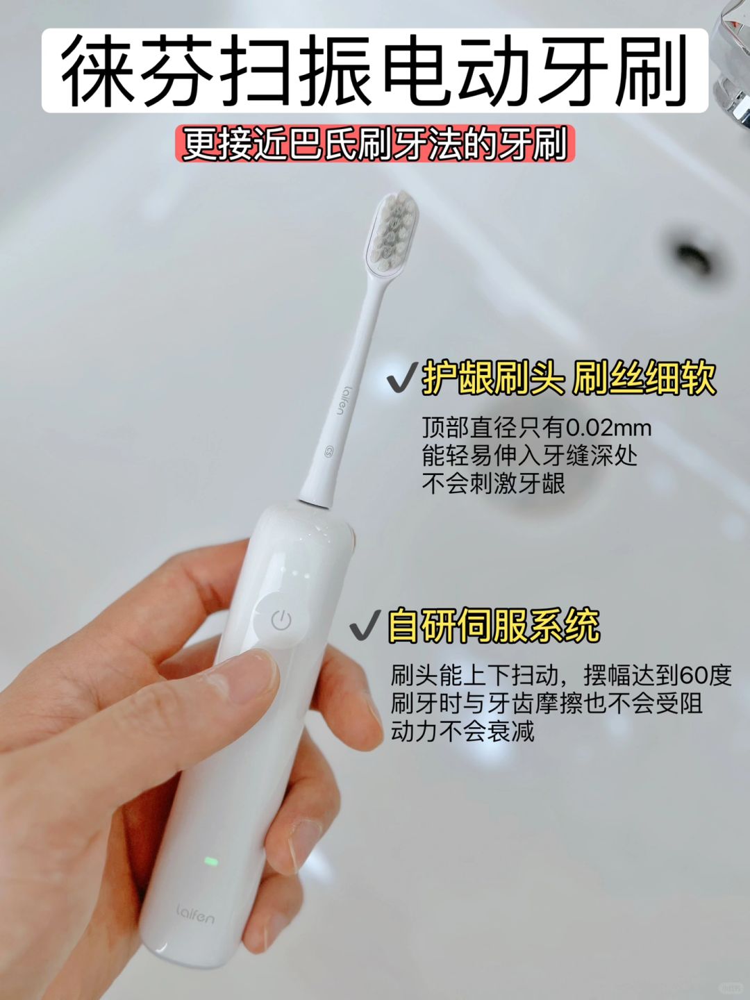 ⭕️徕芬利用在电机技术领域的积累,自研创新伺服系统,把刷杆扫动和刷毛振动结合在一起,拂扫的幅度达到了60°。