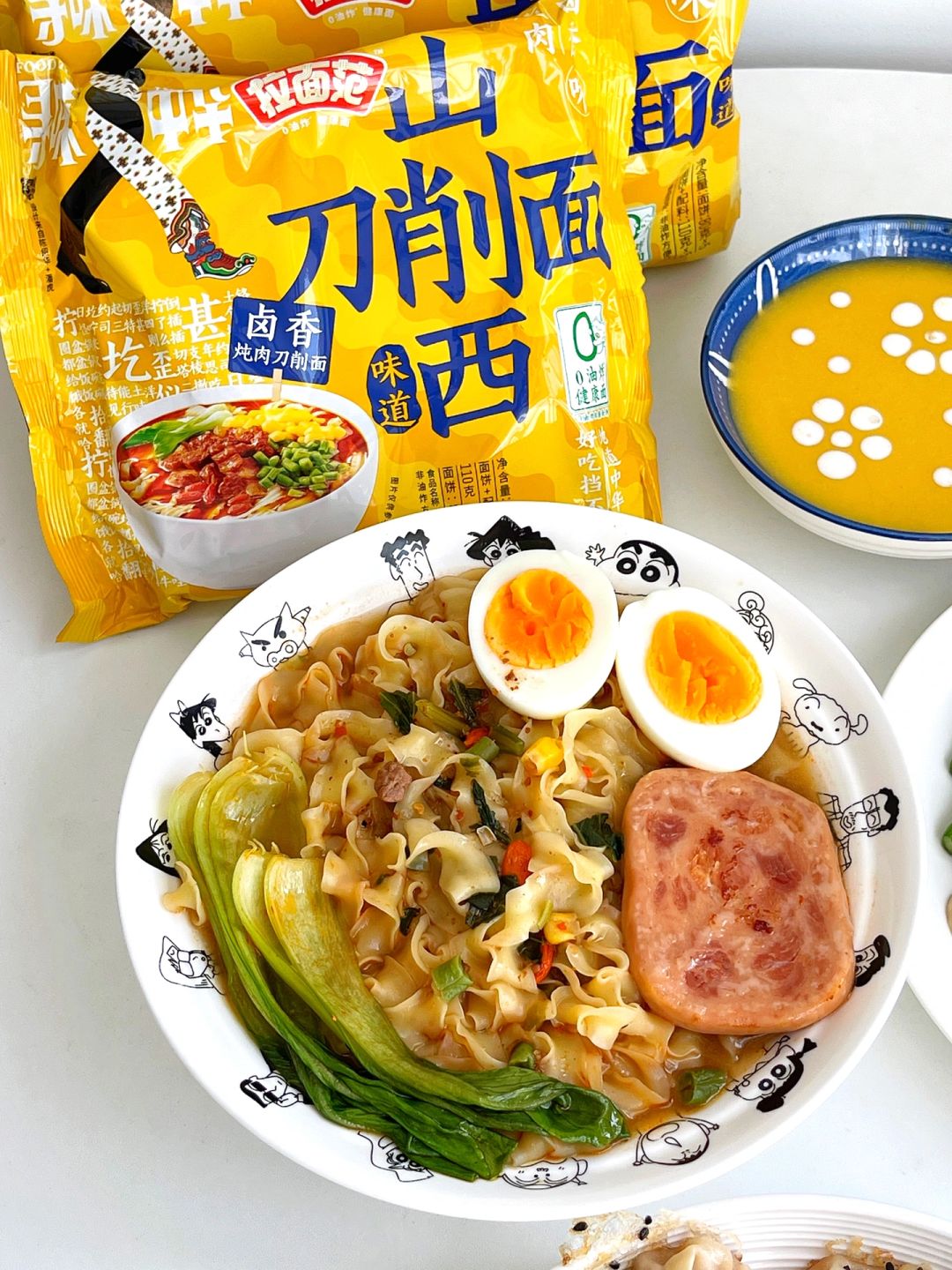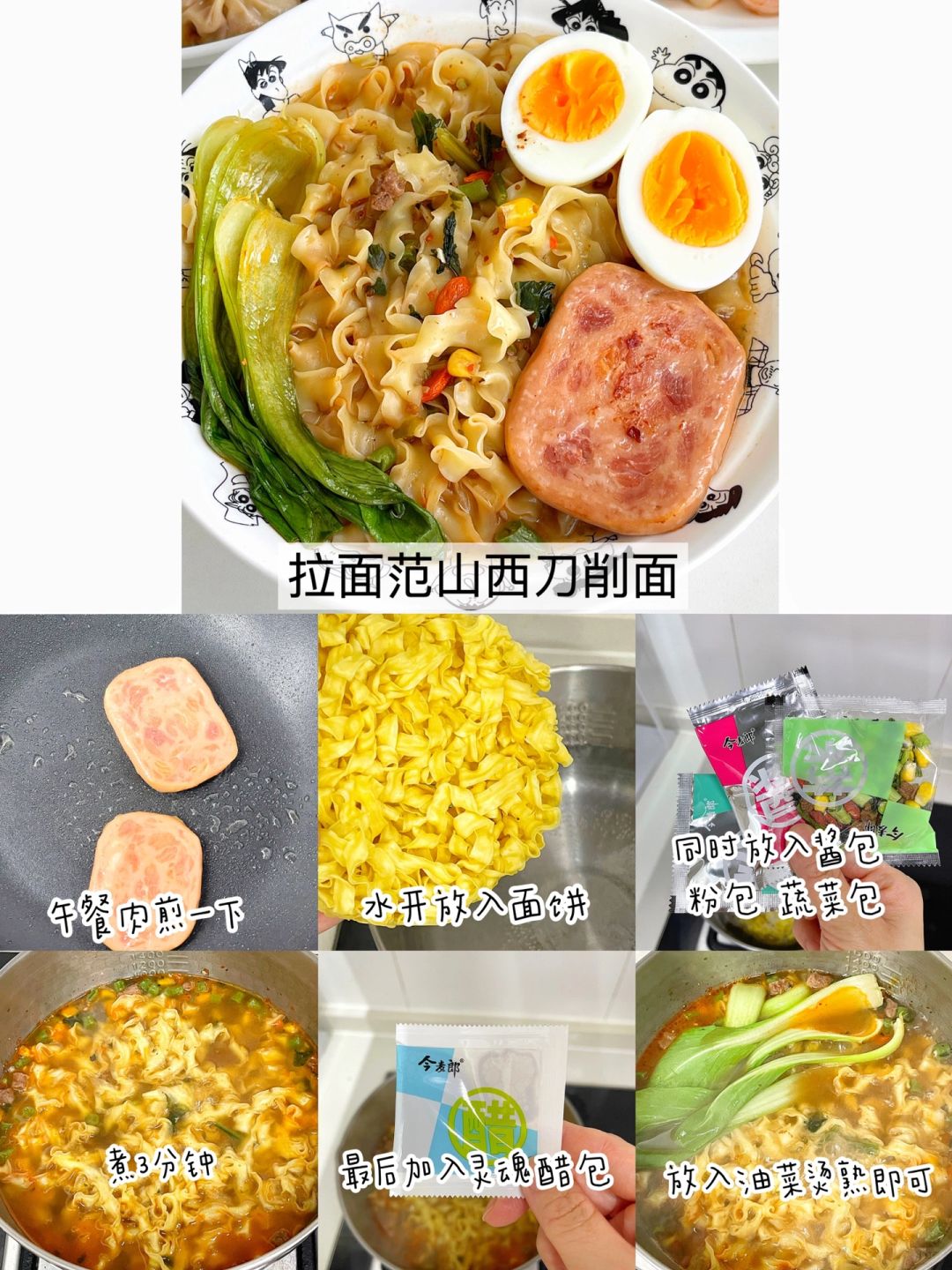 🔹面饼是非油炸的,中厚边薄,配上丰富的酱包,煮出来那叫一个香,每次吃都会多搭配一些食材,像今天的午餐肉和油菜就很好吃,还可以搭配番茄、肥牛,吃法很多,可自行DIY哦。