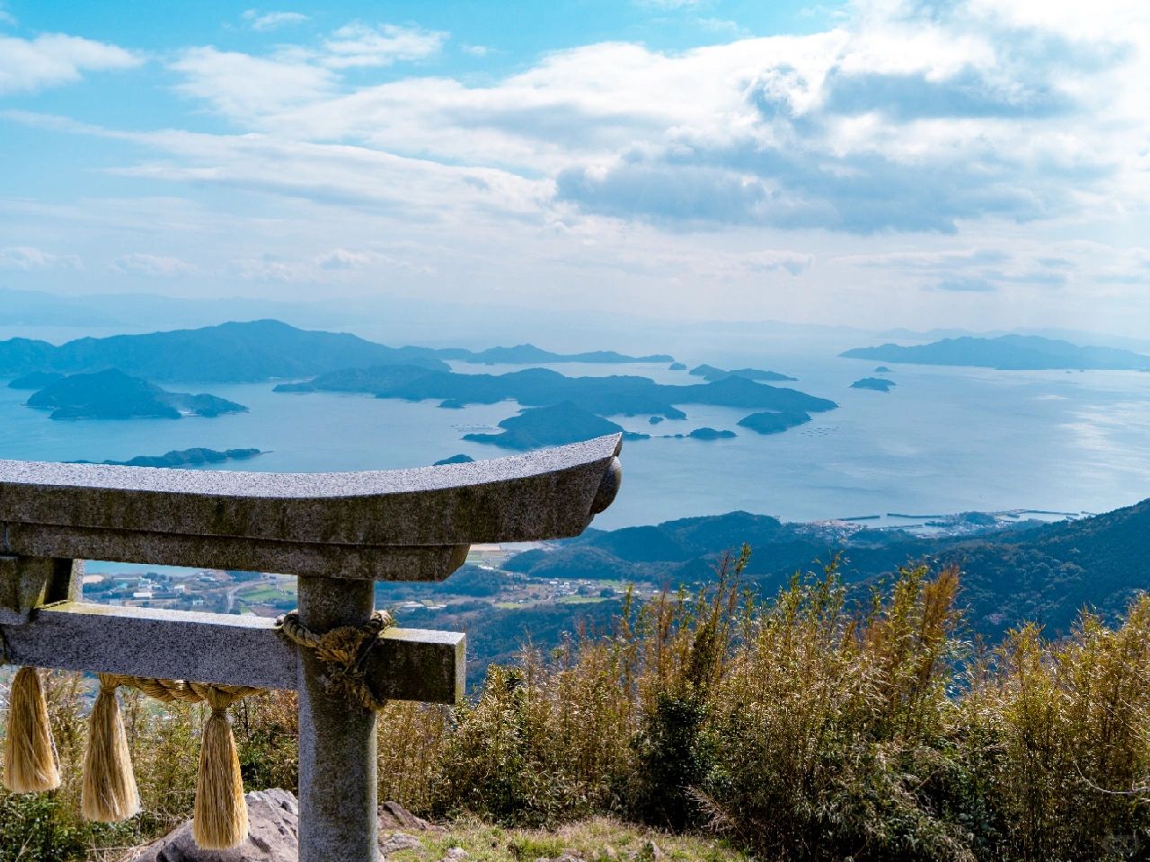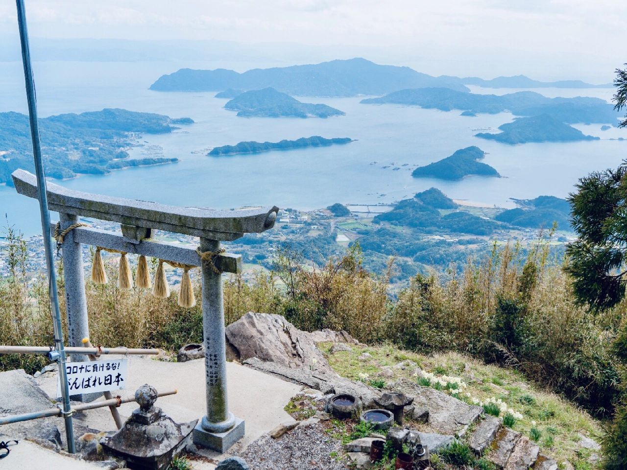🌈从倉岳神社能眺望天草一带的八代海、有明海及御所浦岛周边岛屿,360度的无死角海景一览无遗。山边屹立的鸟居,从某个角度观看,好像漂浮在天空中,神秘梦幻,大气开阔,很受欢迎~