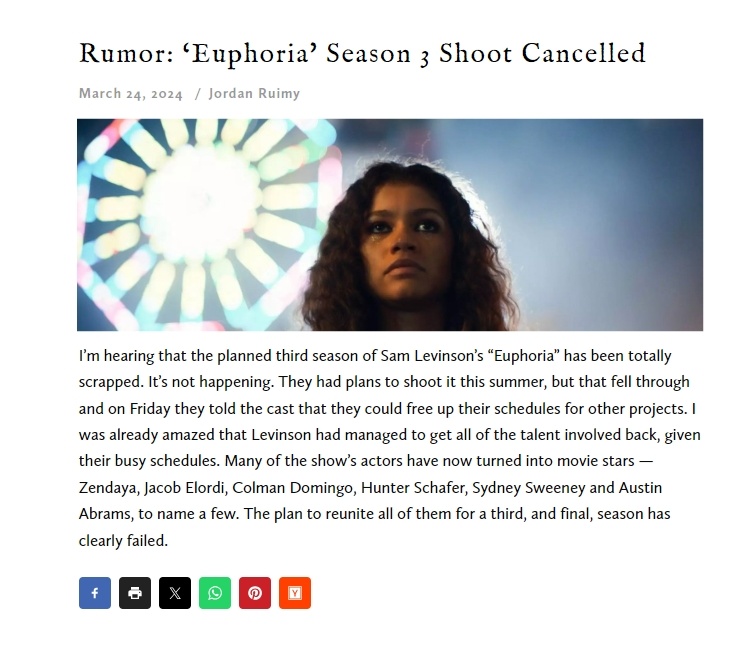 剧中的许多演员现在都已经成为大明星:Zendaya, Jacob Elordi, Colman Domingo, Hunter Schafer, Sydney Sweeney 和 Austin Abrams。让他们所有人在第三季也就是最后一季里一起重聚的计划显然已经落空了。