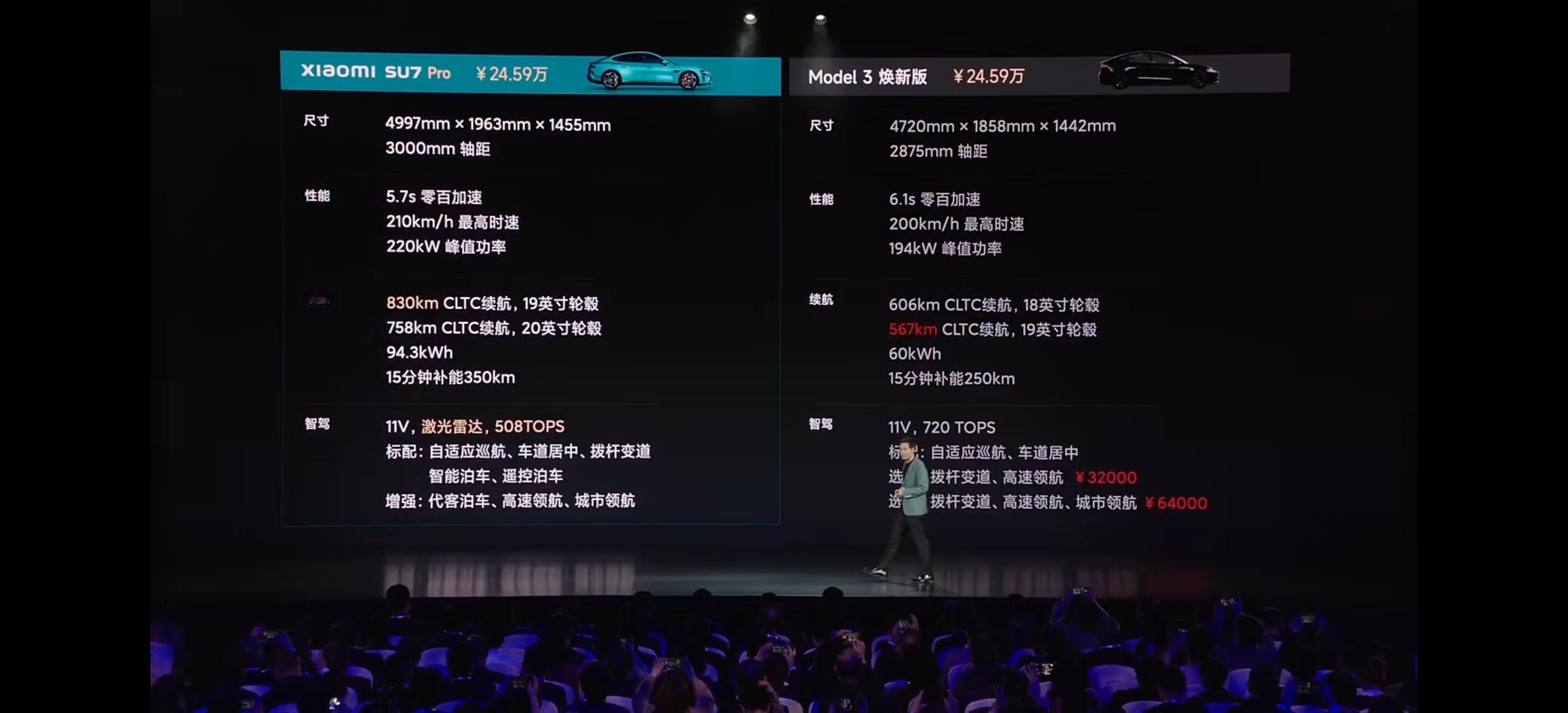 小米SU7 Pro 定价锚定特斯拉Model 3焕新版,24.59万,赠送音响、冰箱、真皮座椅和电动尾翼。