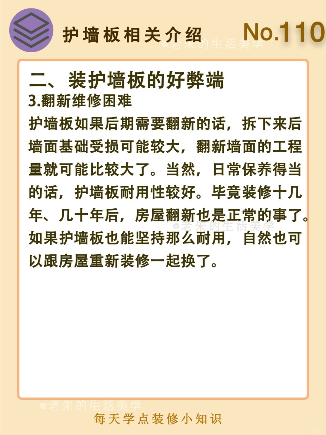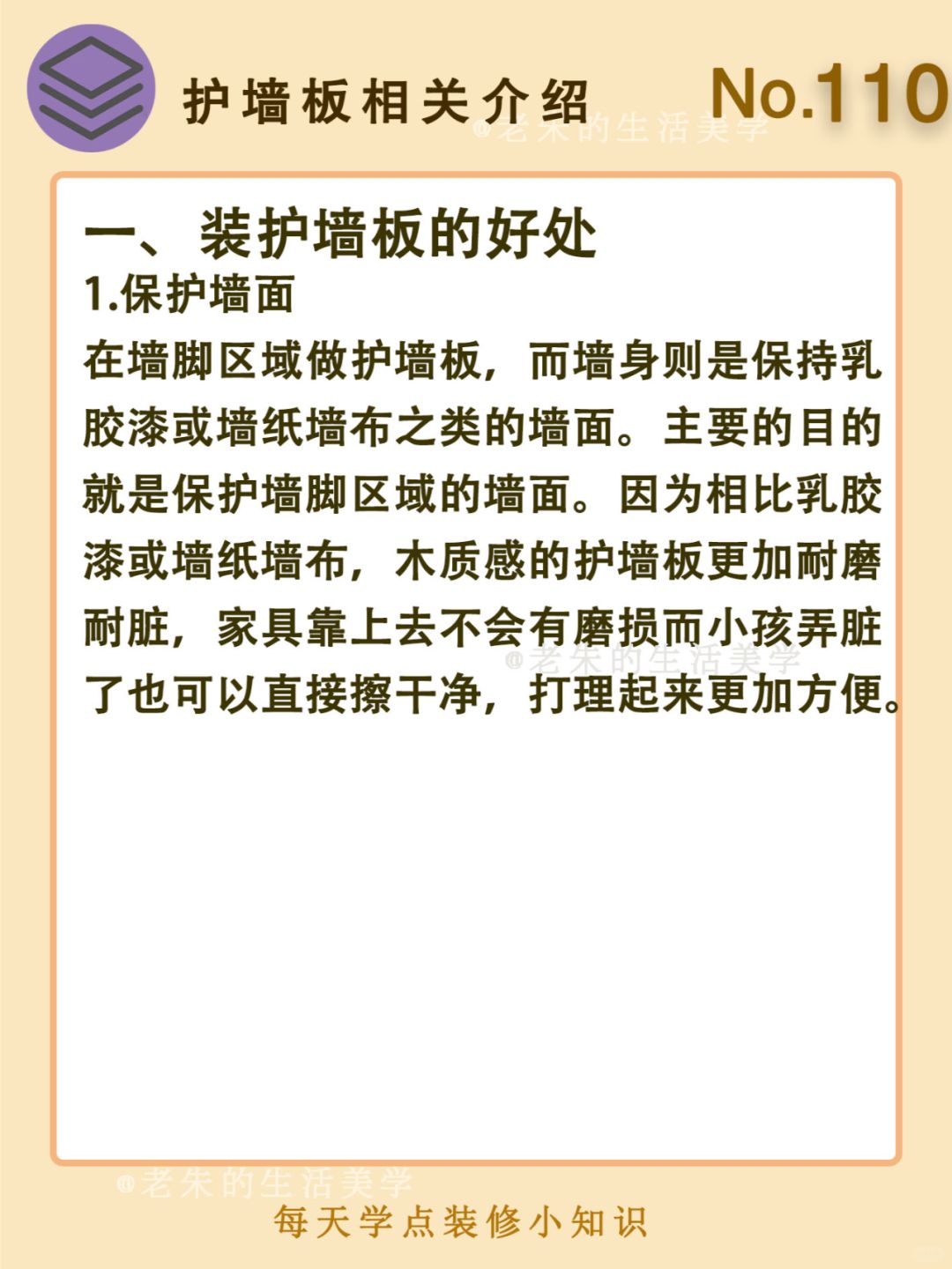 🔆 一、装护墙板的好处 二、装护墙板的弊端 🔆 我是老朱 📍坐标天津 前上市公司金牌工长🏅 30年施工经验🛠 承接天津新房装修/老房改造 精心整理关于设计&施工&装修的攻略📝 关注我每日更新🗓 也可以在评论区留下您宝贵的想法与建议💓 让您装修不走弯路✅
